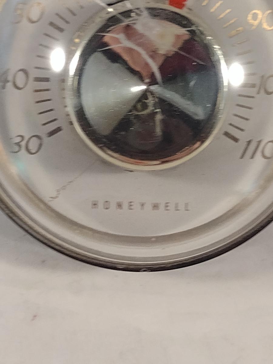 Vintage Honeywell Table Top Thermometer. Cover is cracked- please see all pictures for condition.
