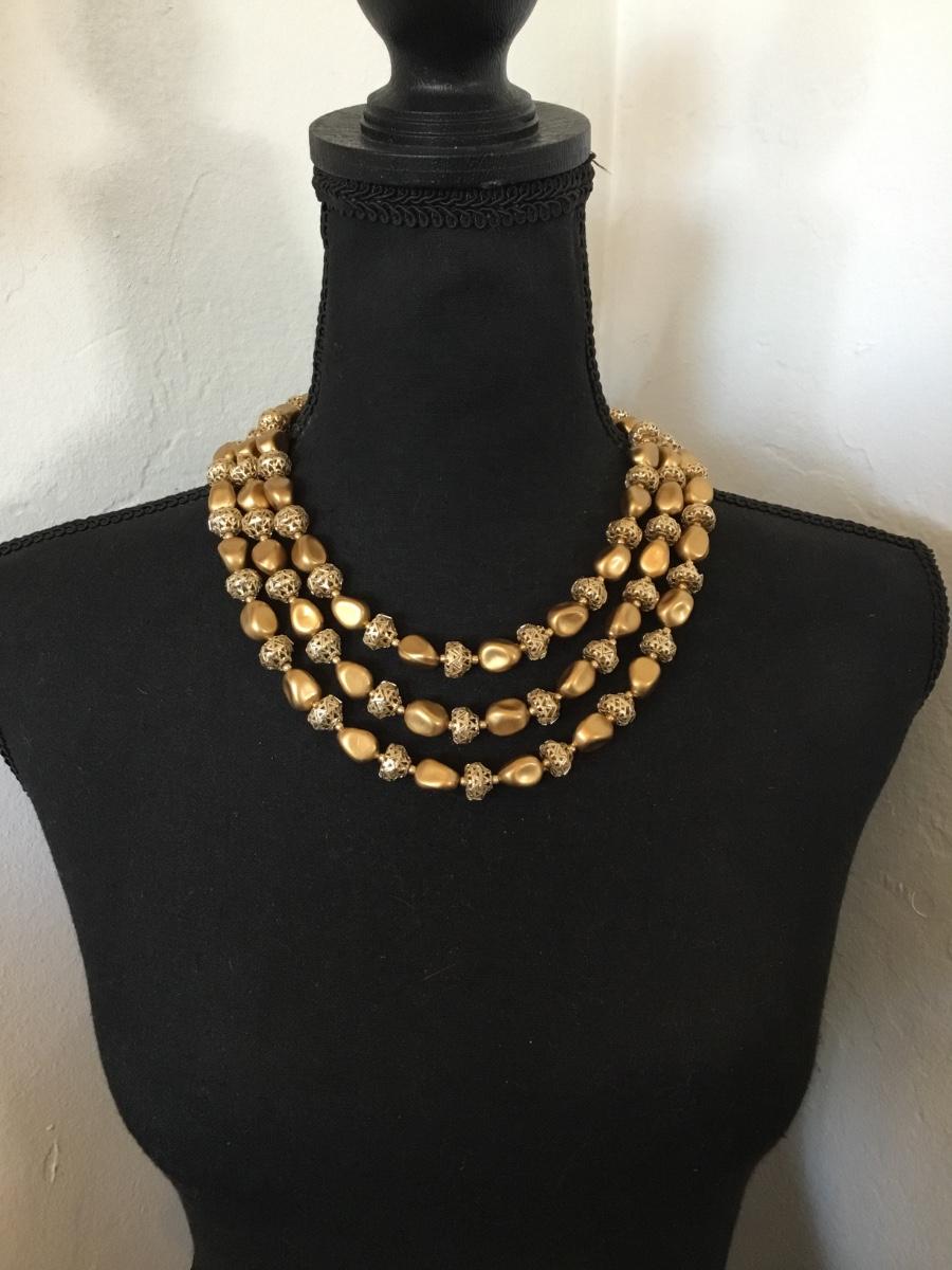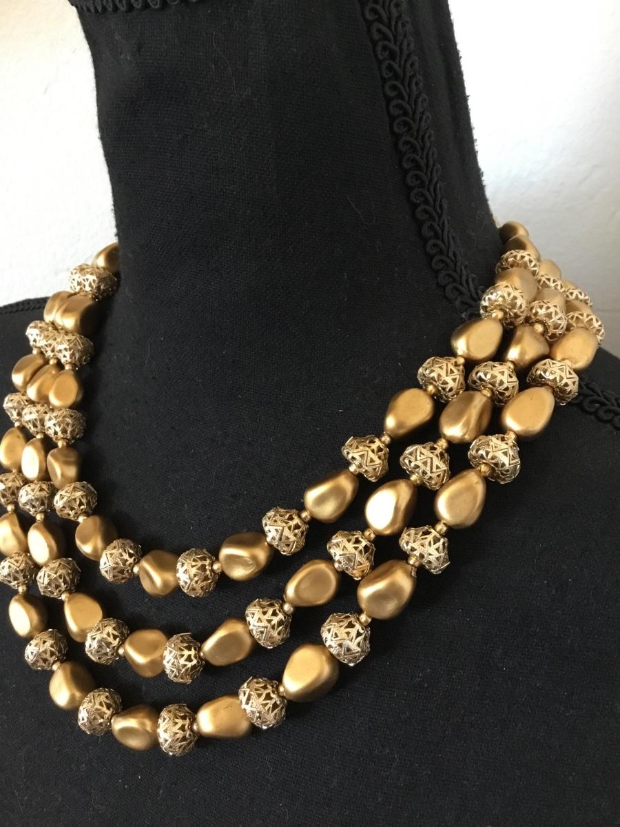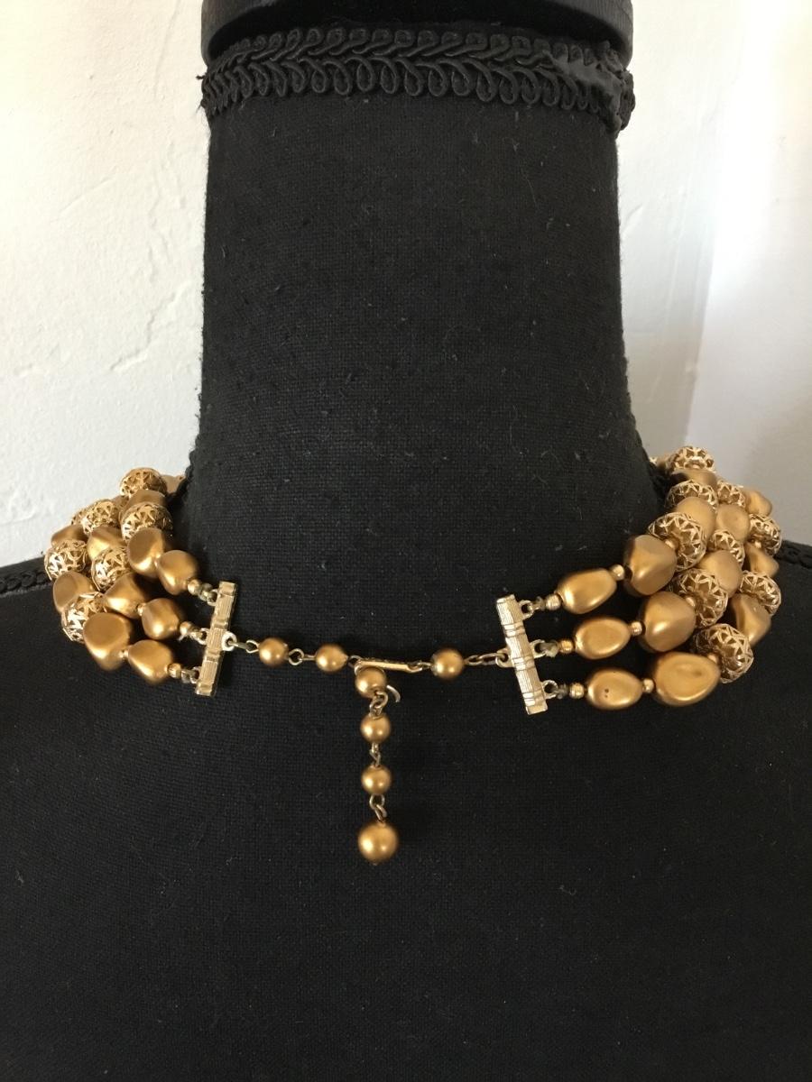 Vintage Hong Kong multi layered gold, toned statement, necklace good condition