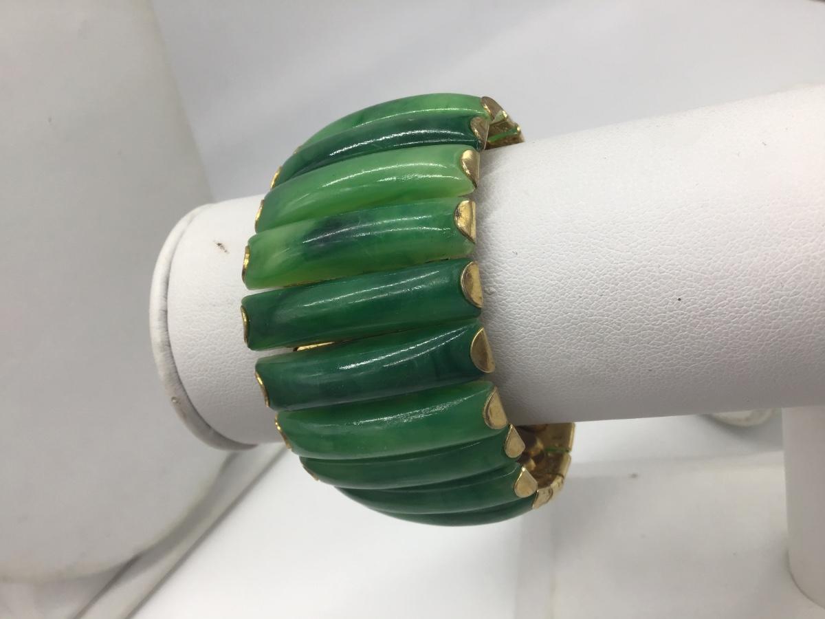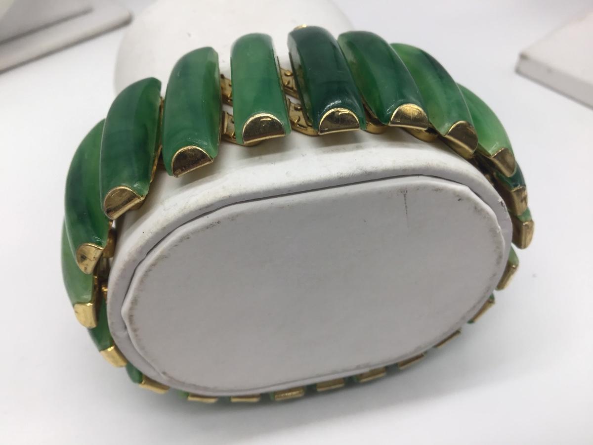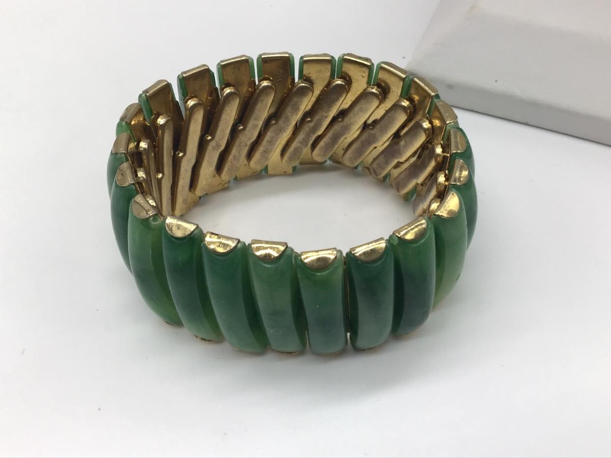 Vintage Hong Kong Faux Jade Signed Expansion Bracelet Vintage 60's