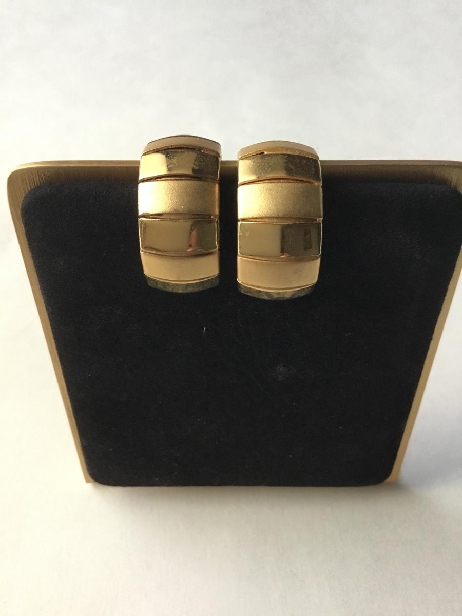 Vintage hoop ribbed earrings gold tone