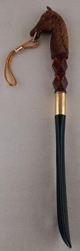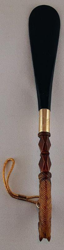 Good looking shoe horn measures 11.5in long and the horn is 1.5in wide