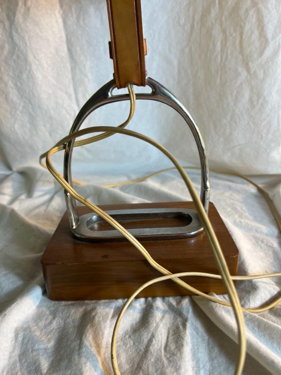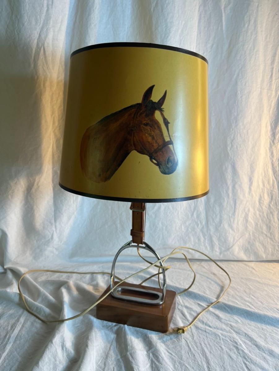 Vintage Horse Lamp w/Stirrup and Wood Base