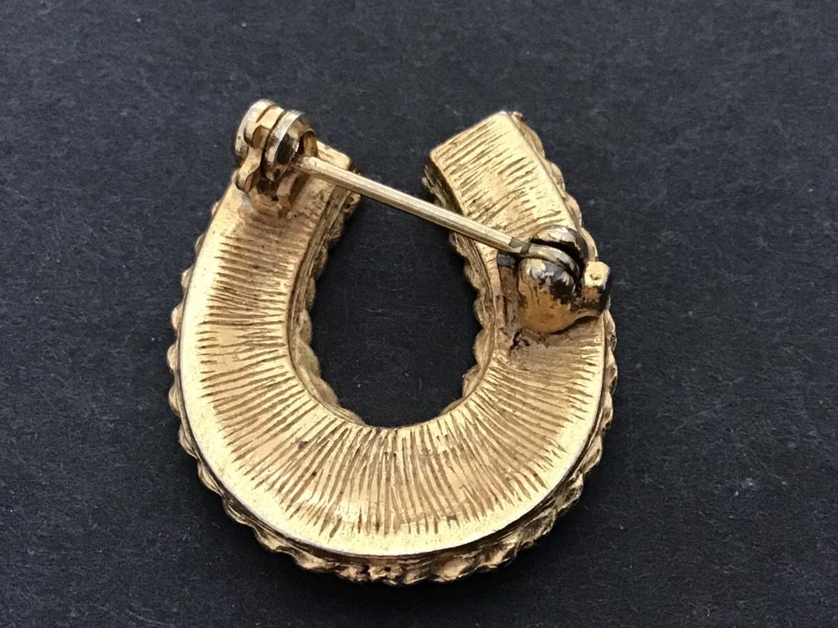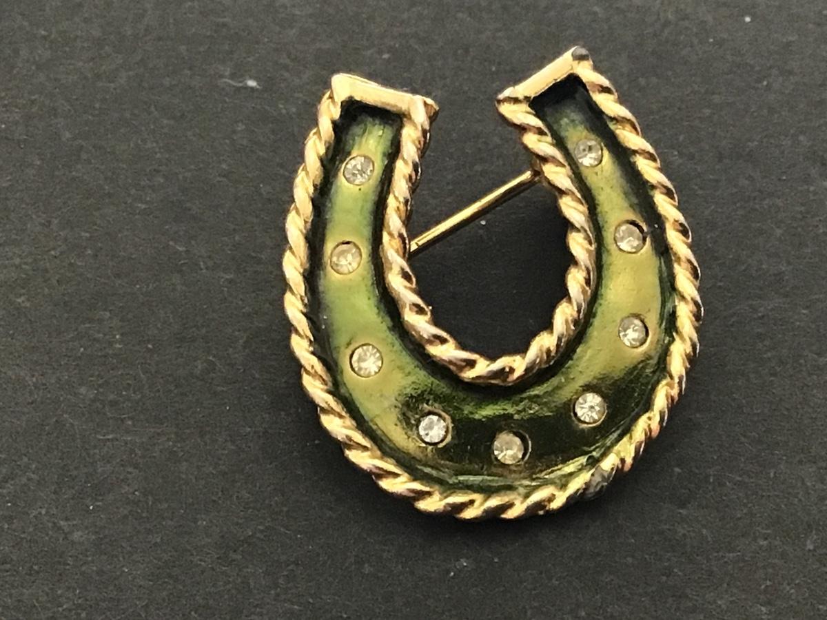 Vintage Horse shoe Rhinestone Enamel Brooch