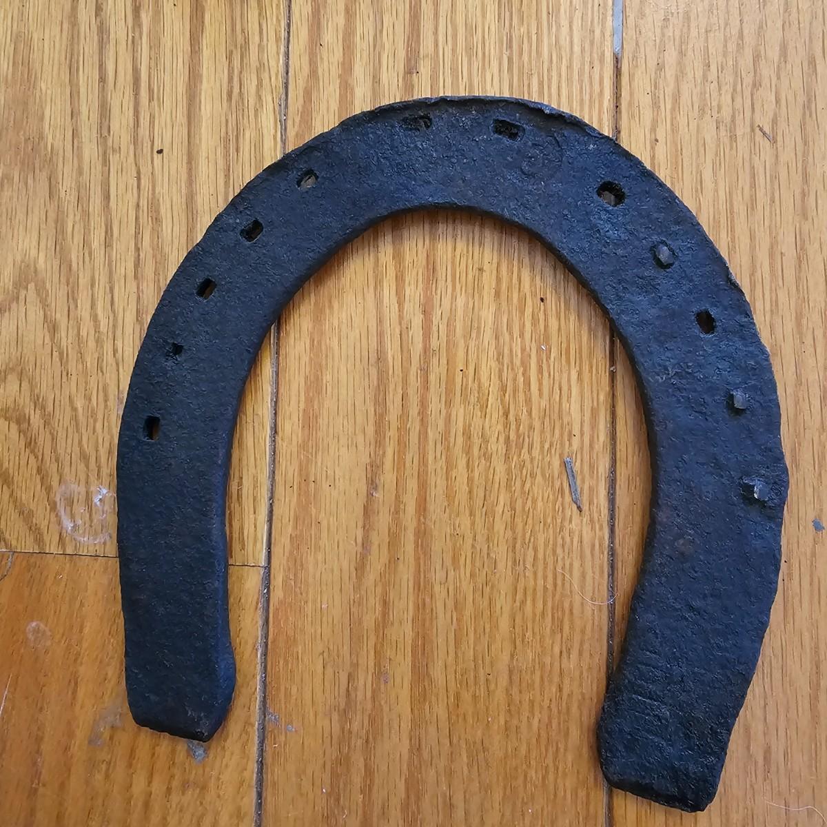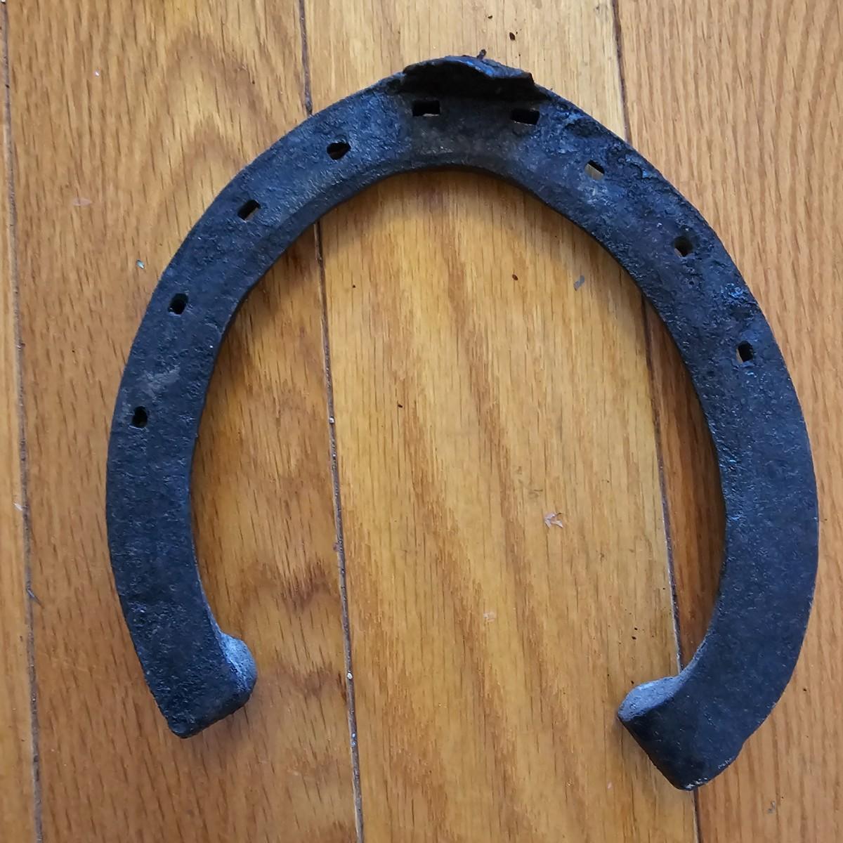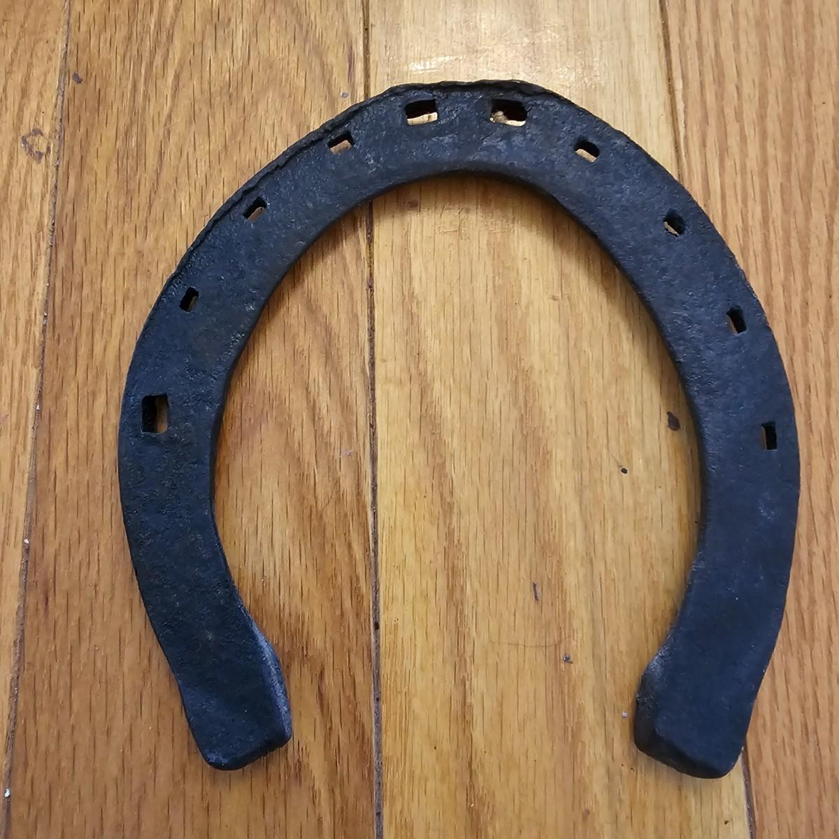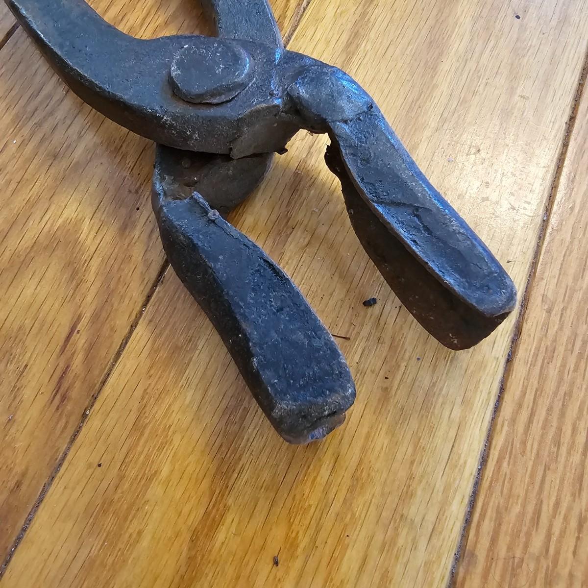 Four vintage iron horseshoes and a pair of blacksmith's tongs. Shoes are all handmade, range in size from 5" x 5" to 6" x 7". Tongs are 2" x 20.5" long. All items appear hand forged. See photos for details. Shipping available.