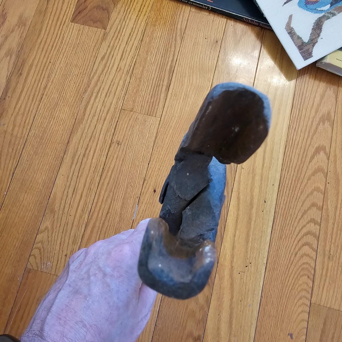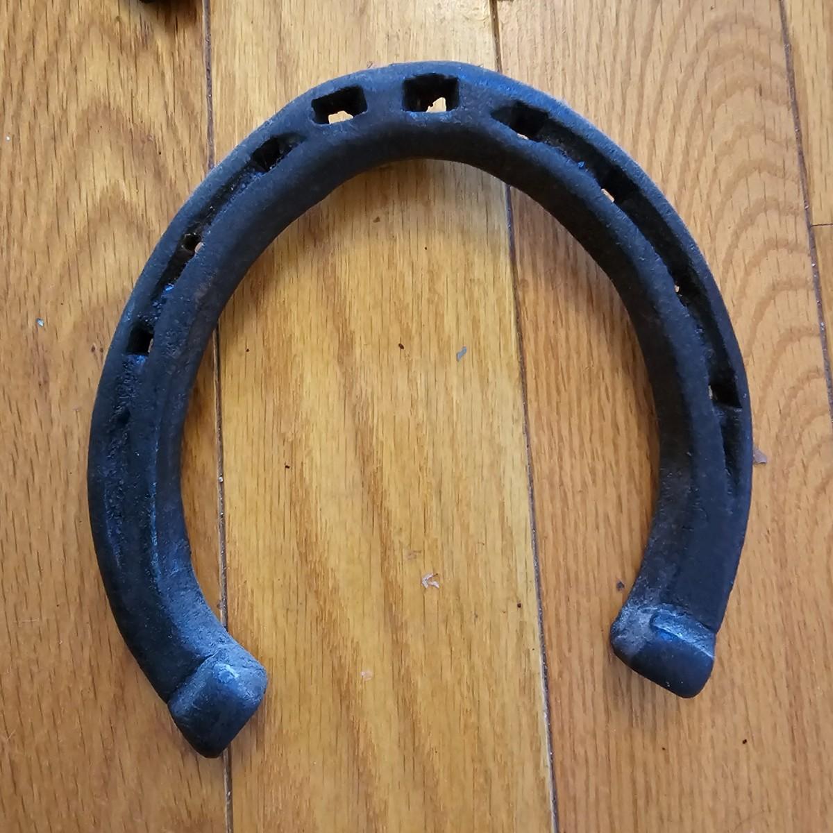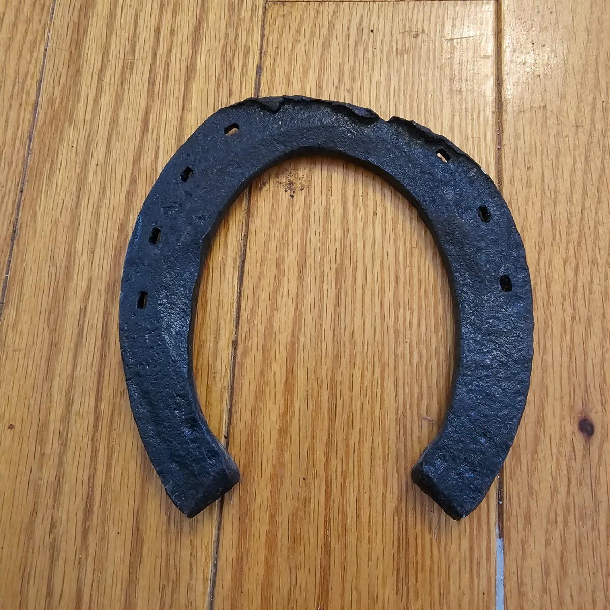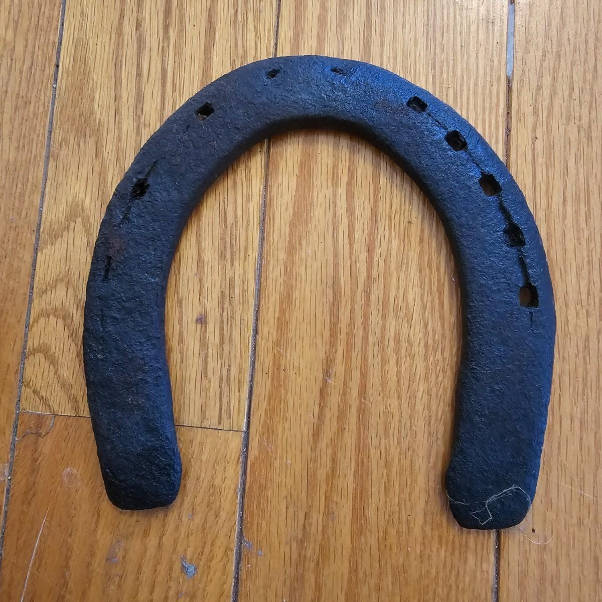 Four vintage iron horseshoes and a pair of blacksmith's tongs. Shoes are all handmade, range in size from 5" x 5" to 6" x 7". Tongs are 2" x 20.5" long. All items appear hand forged. See photos for details. Shipping available.
