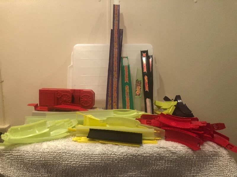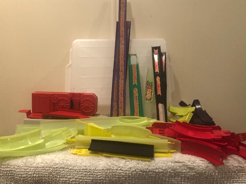 A lot of vintage hot wheels race car track