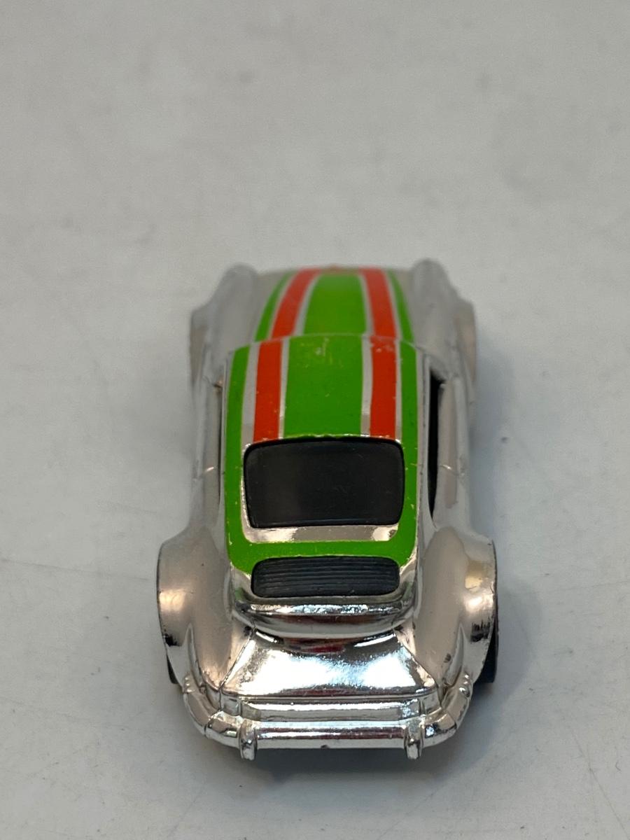 Vintage Hot Wheels 1974 Porsche P-911, Chrome with Green & Orange Racing Stripes. Made in Hong Kong. In very good condition, very light signs of wear.