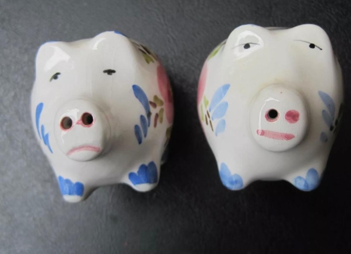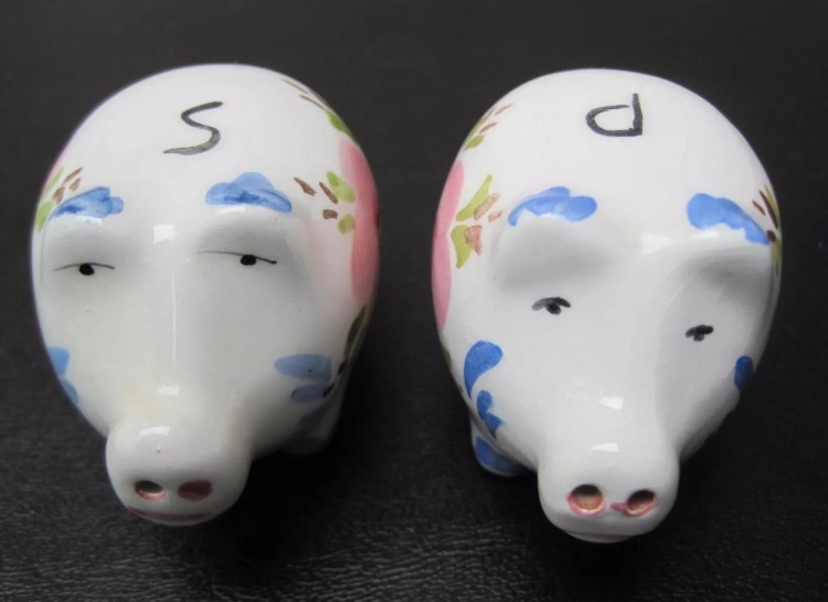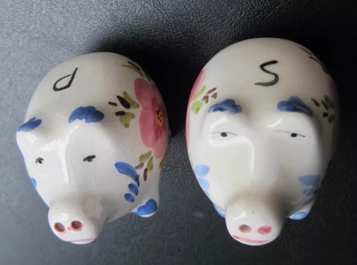 Vintage HP porcelain China, piglet salt and pepper shaker set