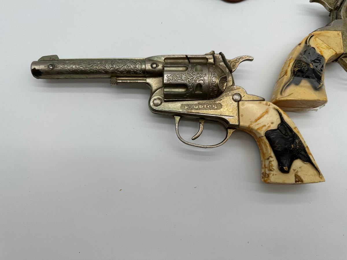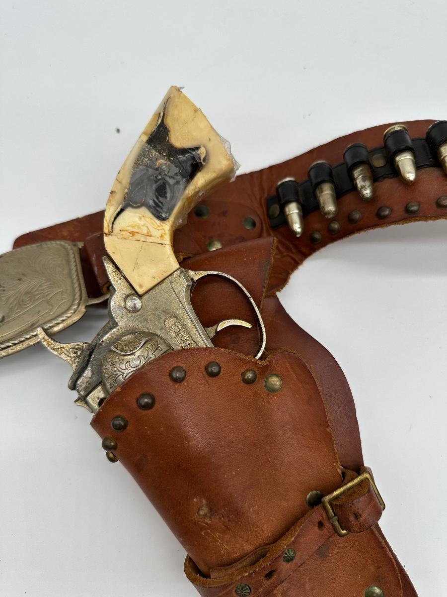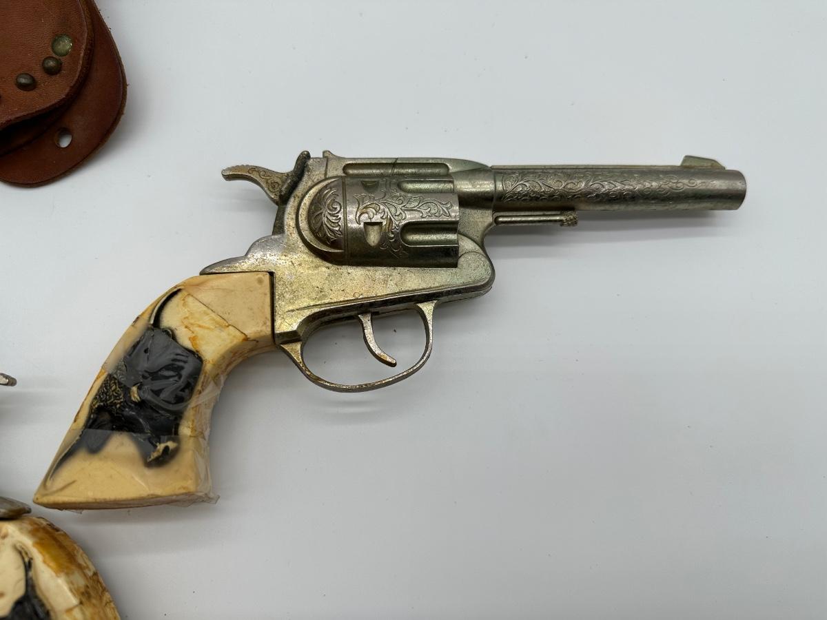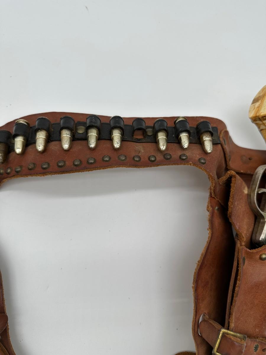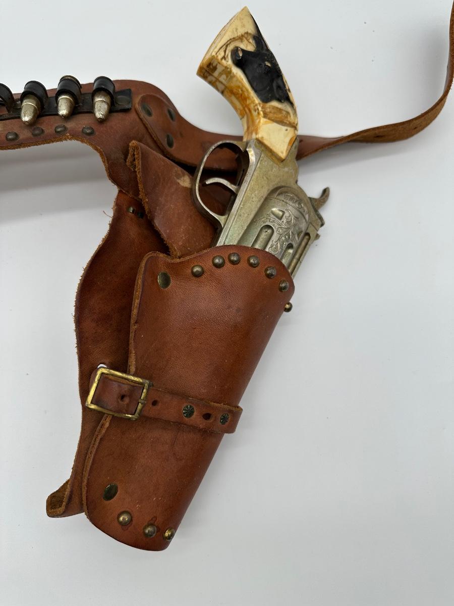 Vintage Hubley Double Cap Gun Set w/ Leather Dual Holster & Ammo Belt – Toy Revolvers