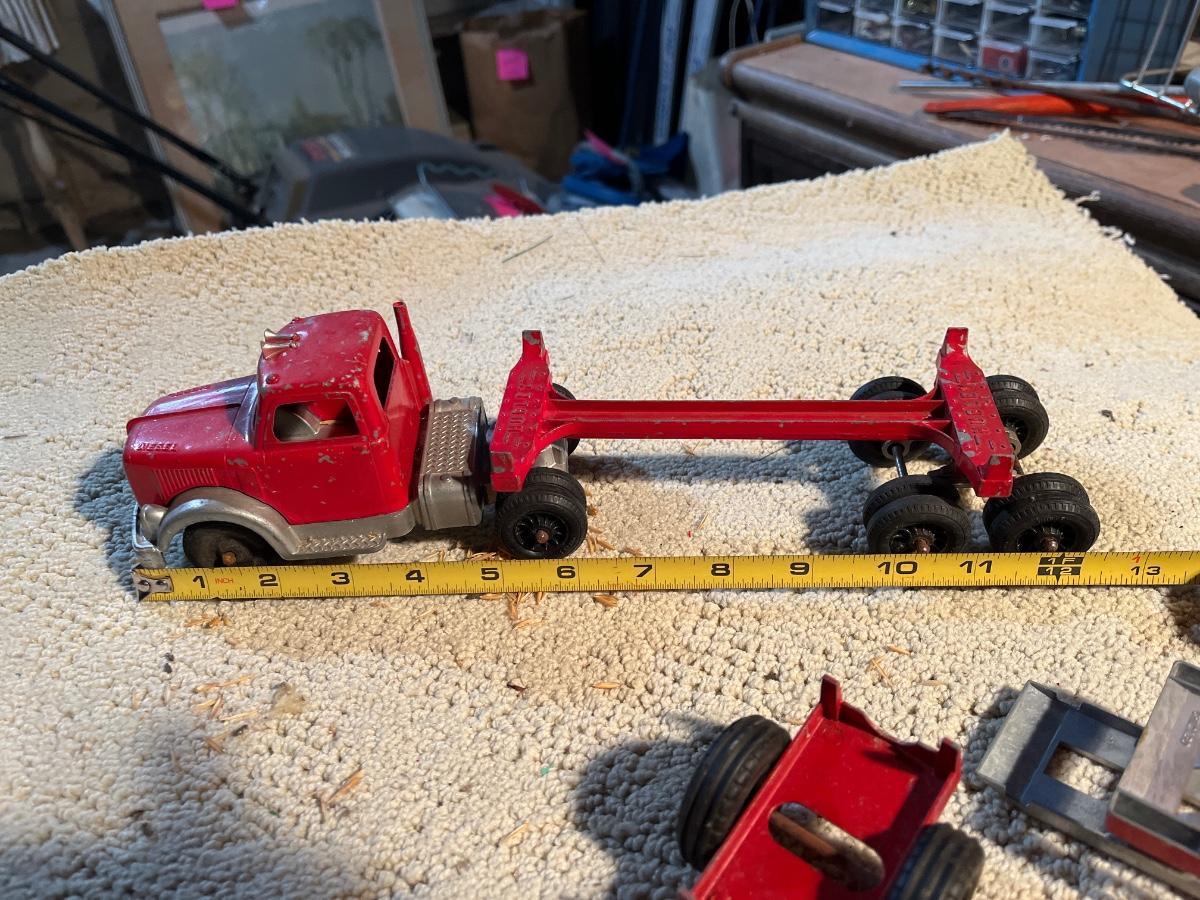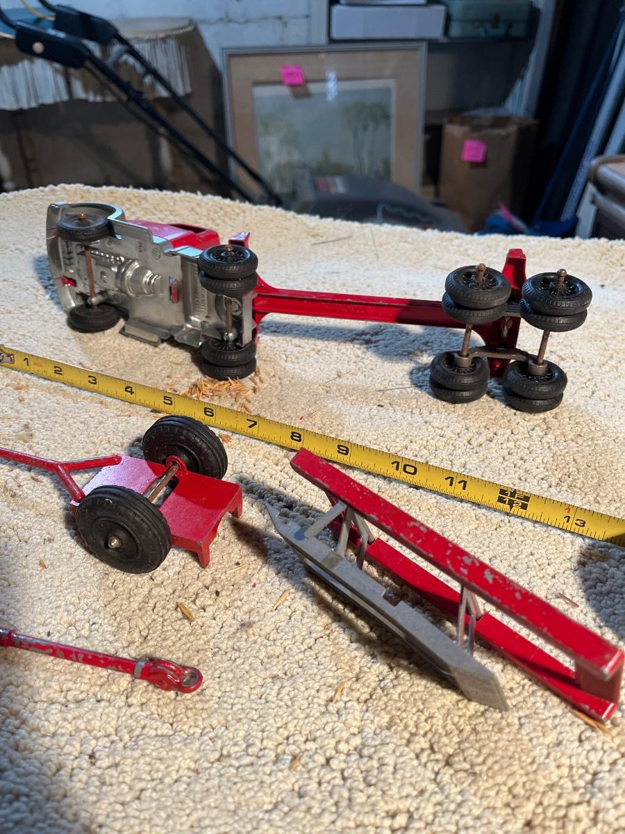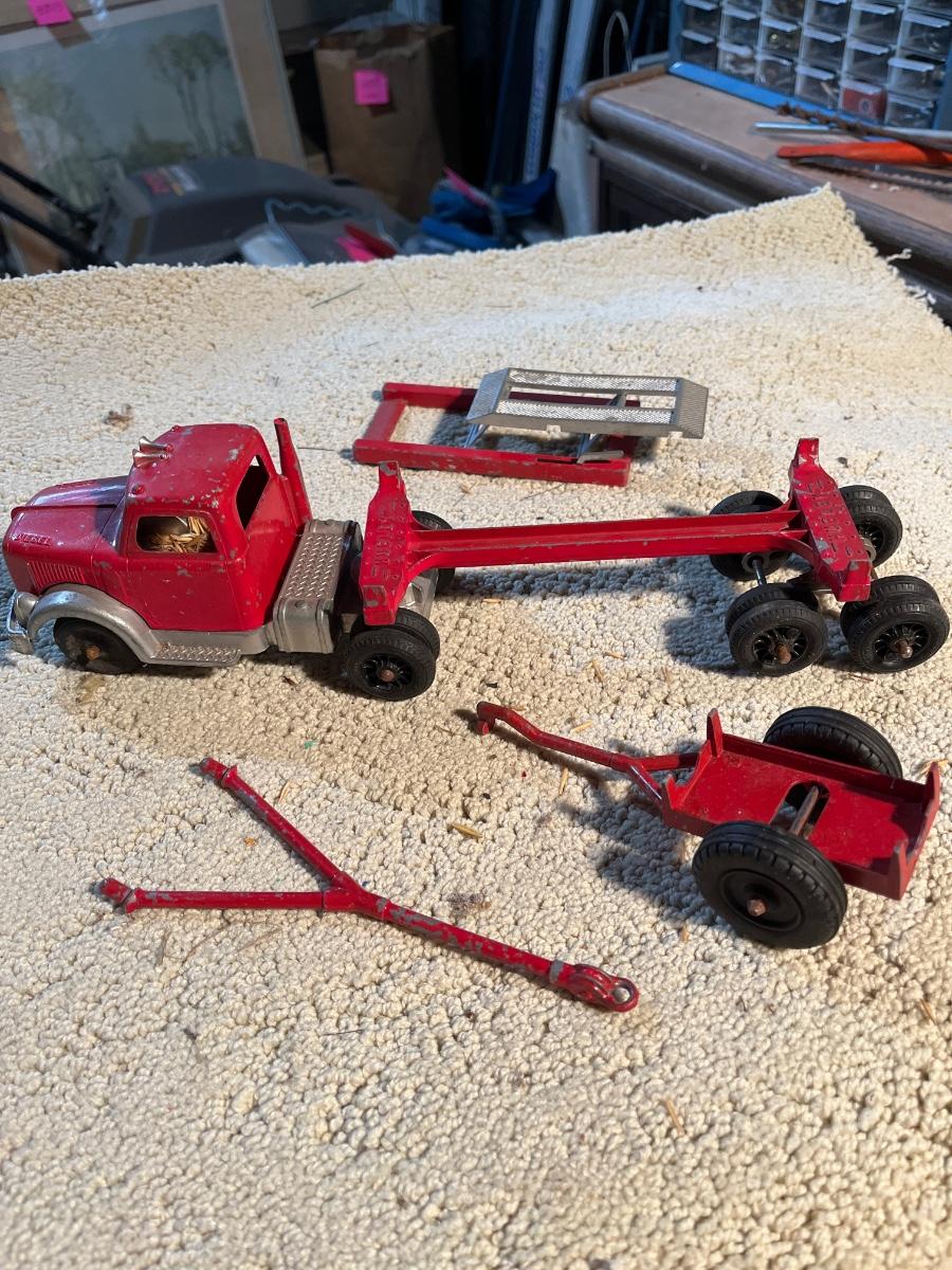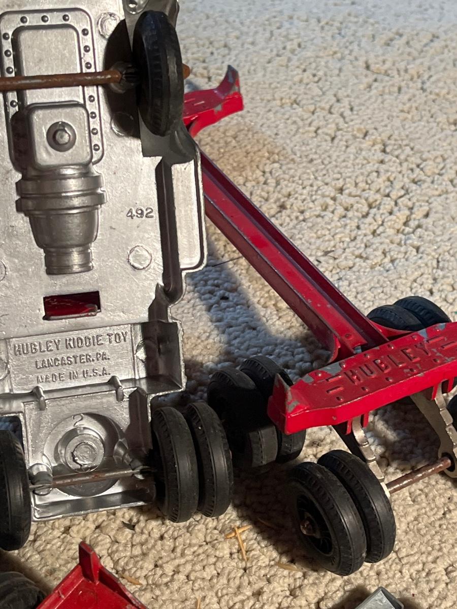 Truck and tractor Hubley. One piece is Tootsie Toy. See pictures