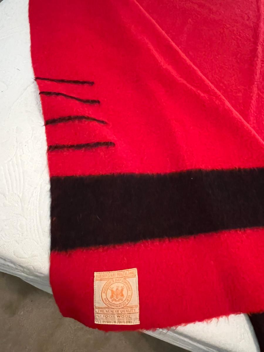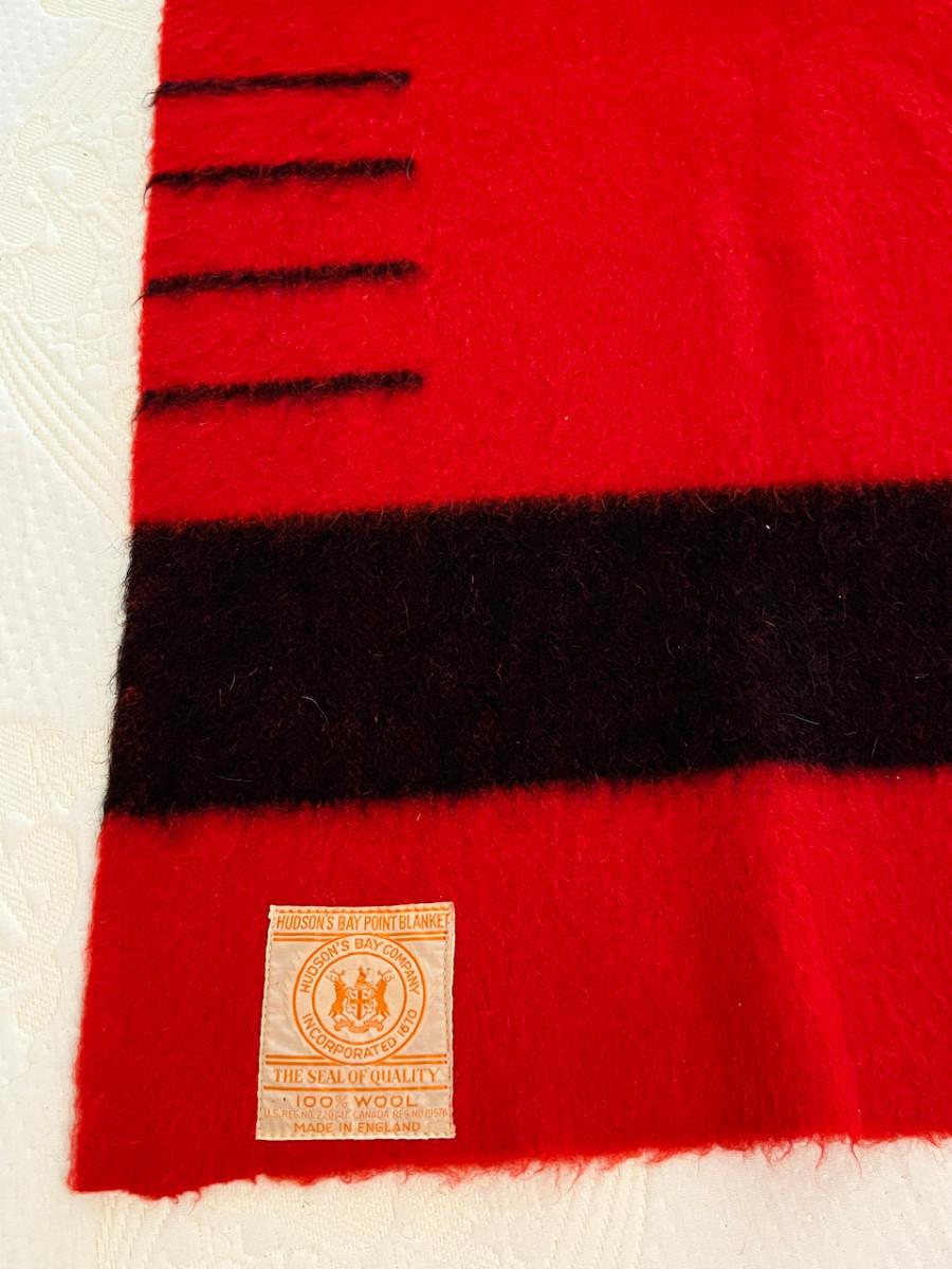 Vintage Hudson's Bay 4 Point Blanket in Red Back Excellent Condition made in England