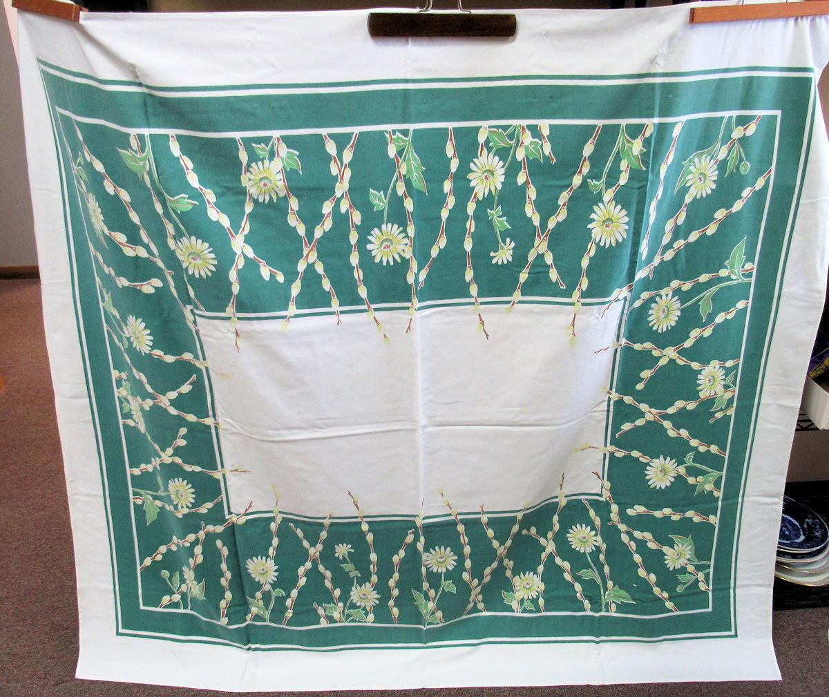 Vintage Huge Rectangular Tablecloth Pussywillow Pattern