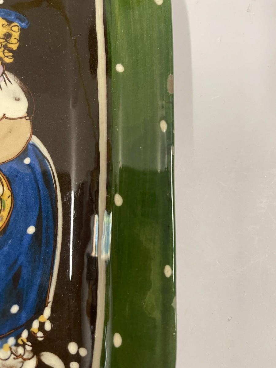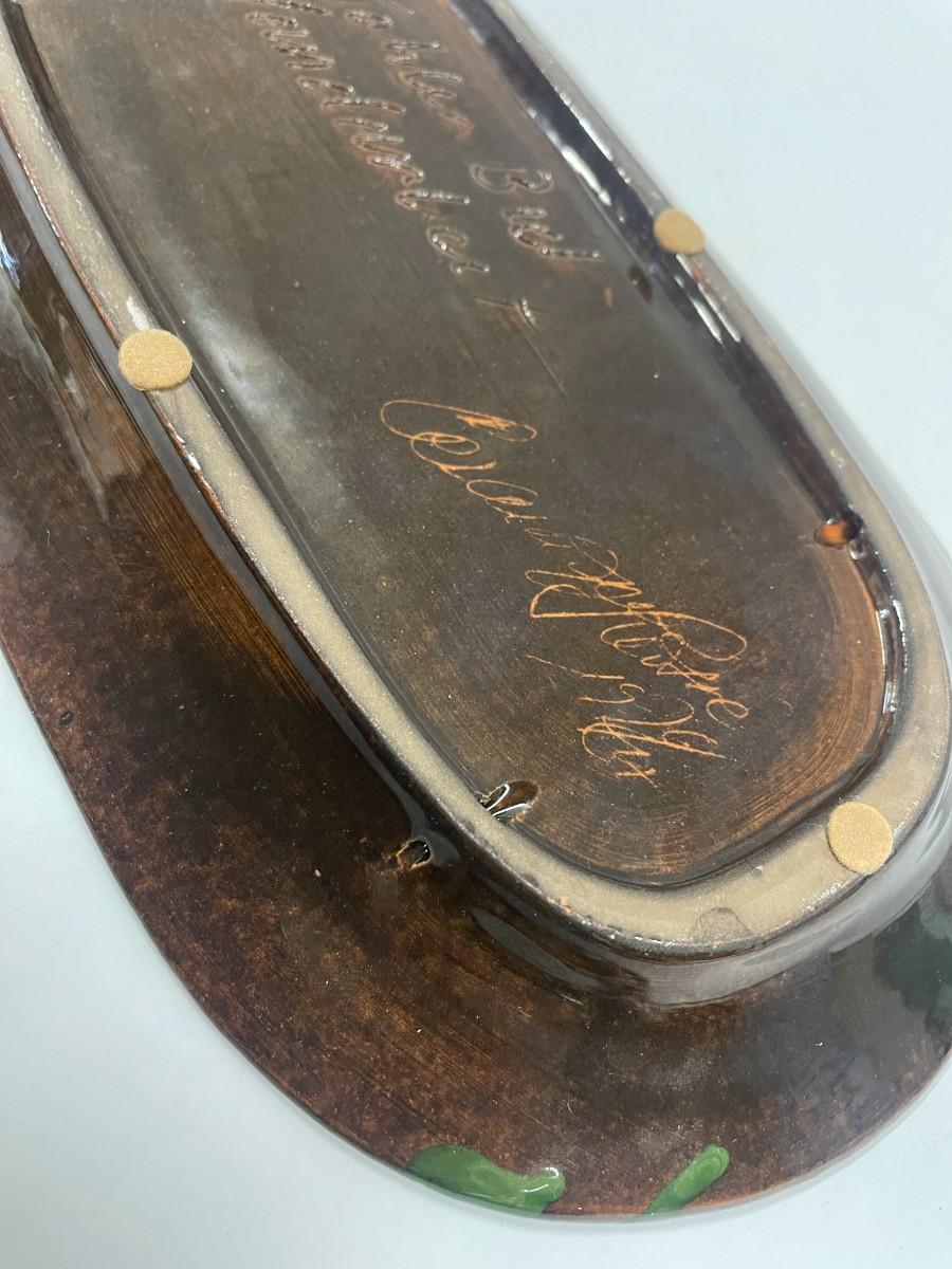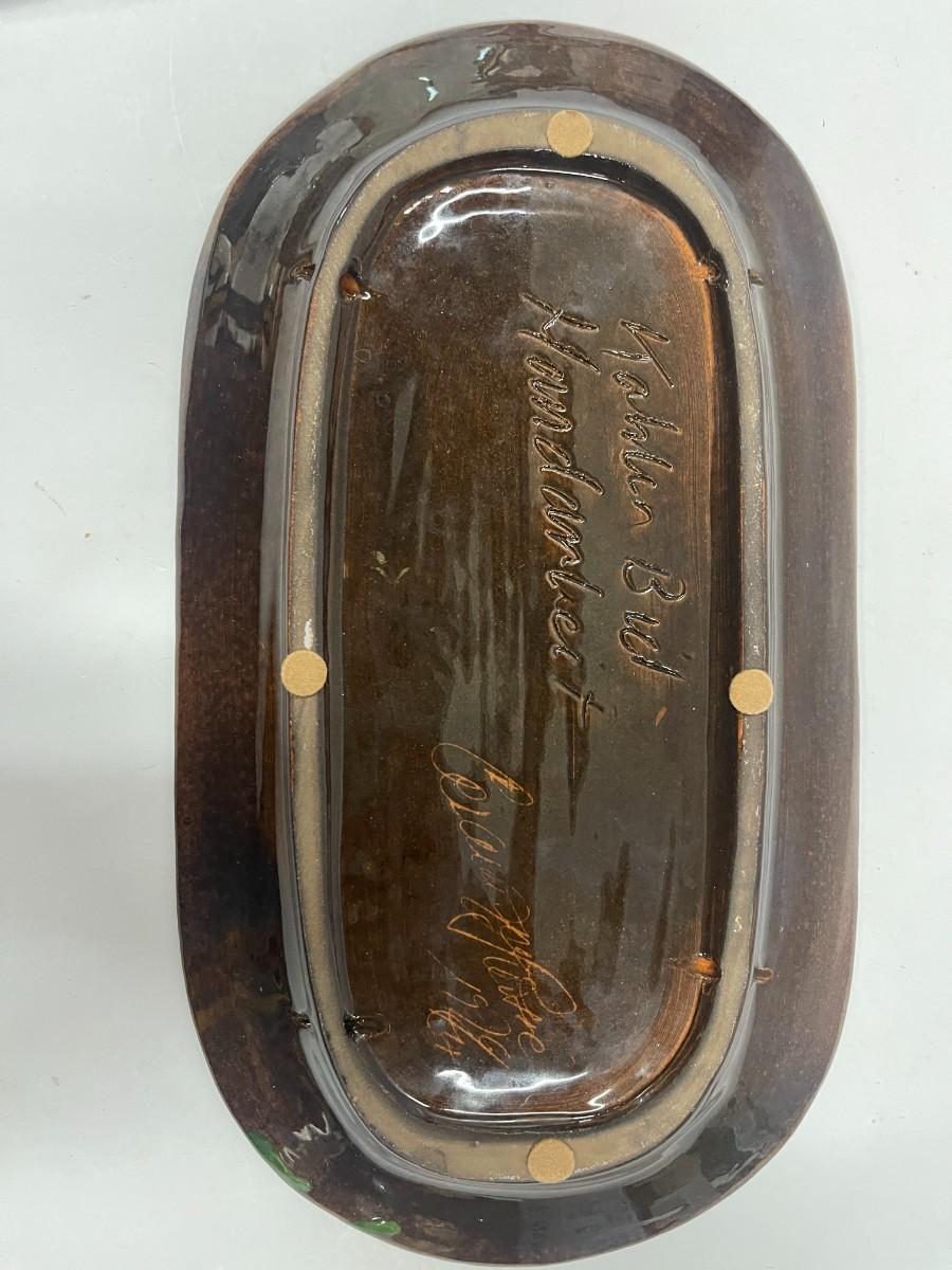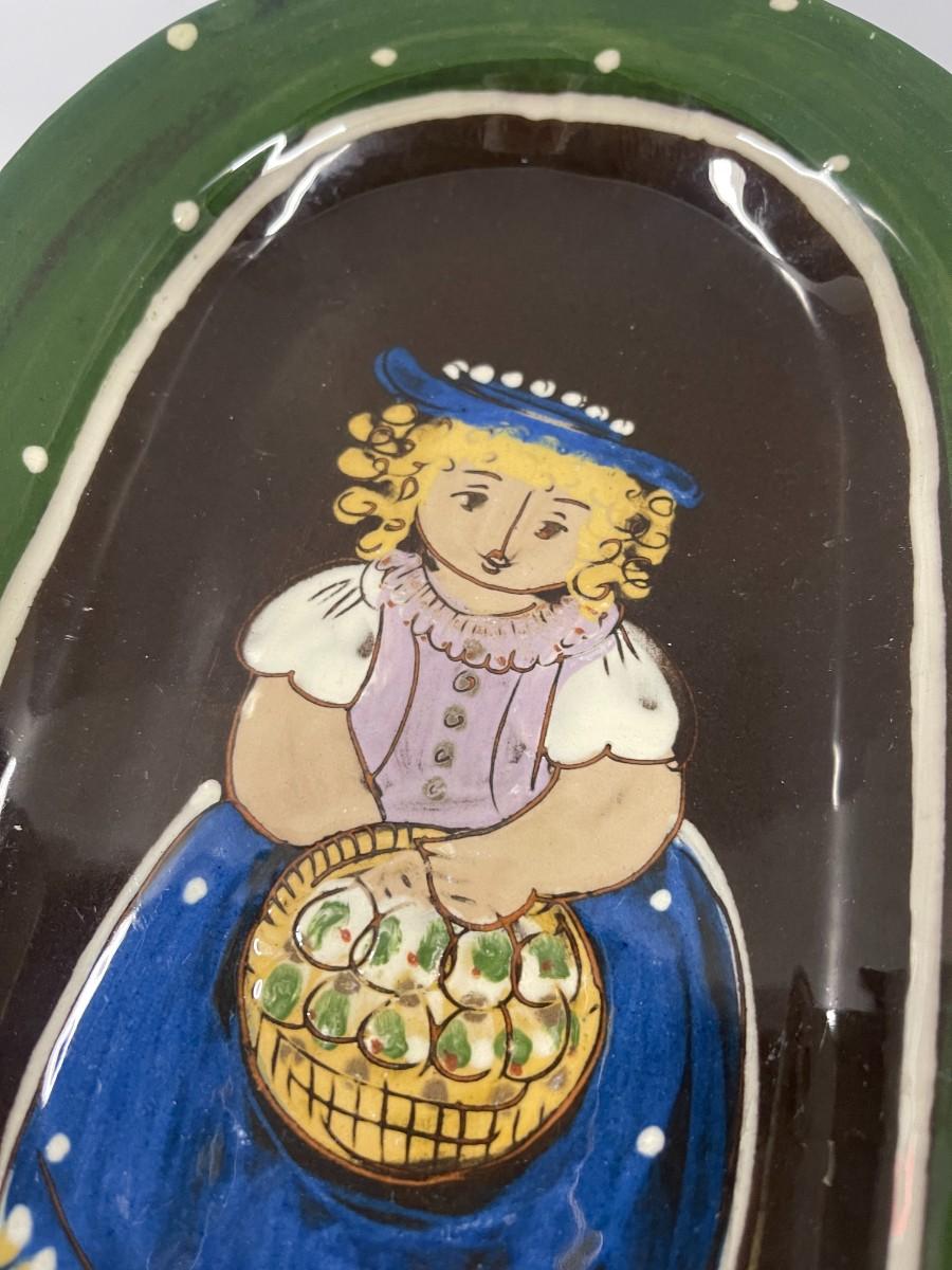 Vintage Hugo Kohler Biel Handarbeit Swiss Folk Art Oval Dish. One minor chip on the right side. Signed on the back. 11 1/2" x 6 1/2".