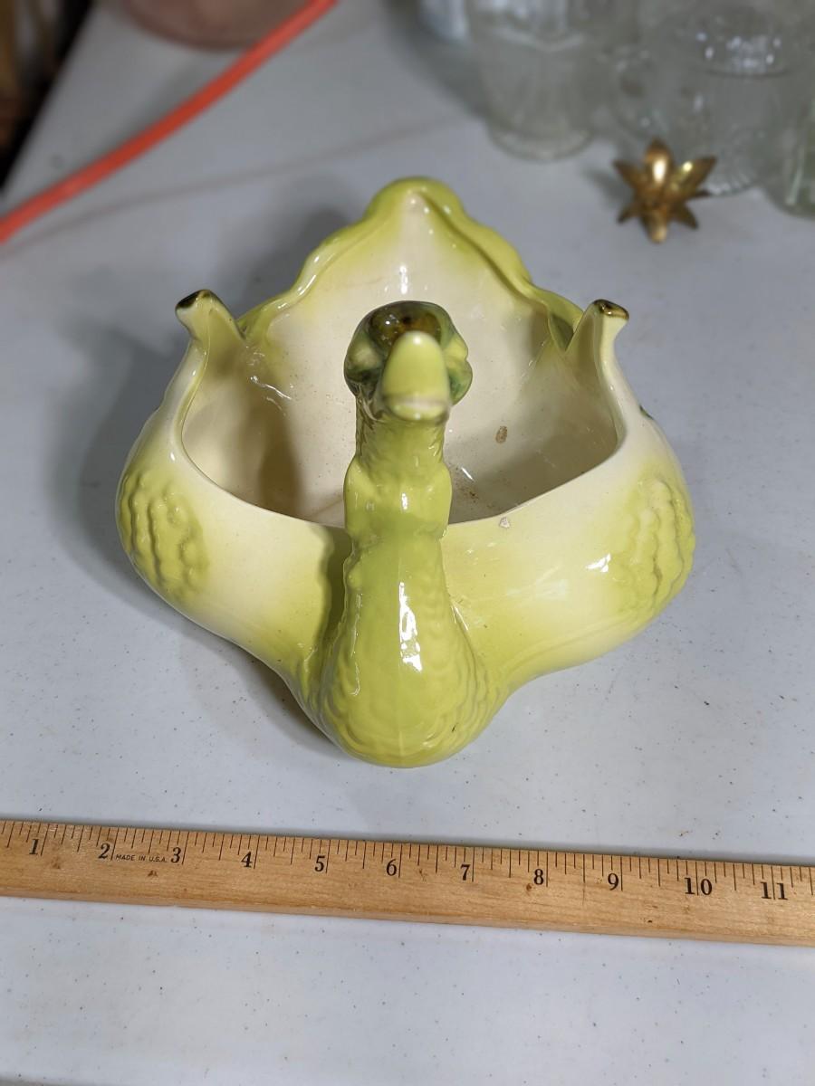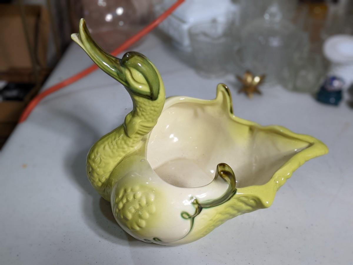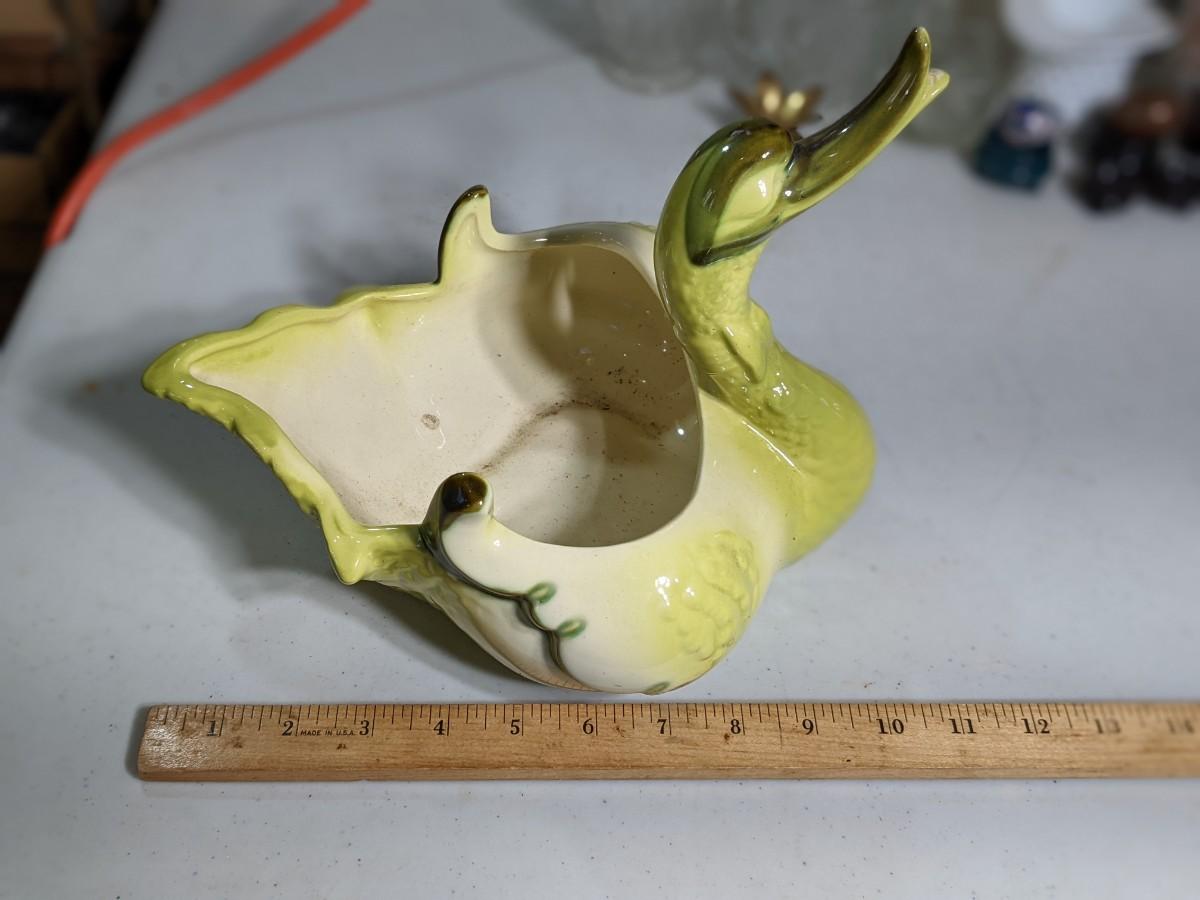 Vintage Hull Green Swan Duck Planter
