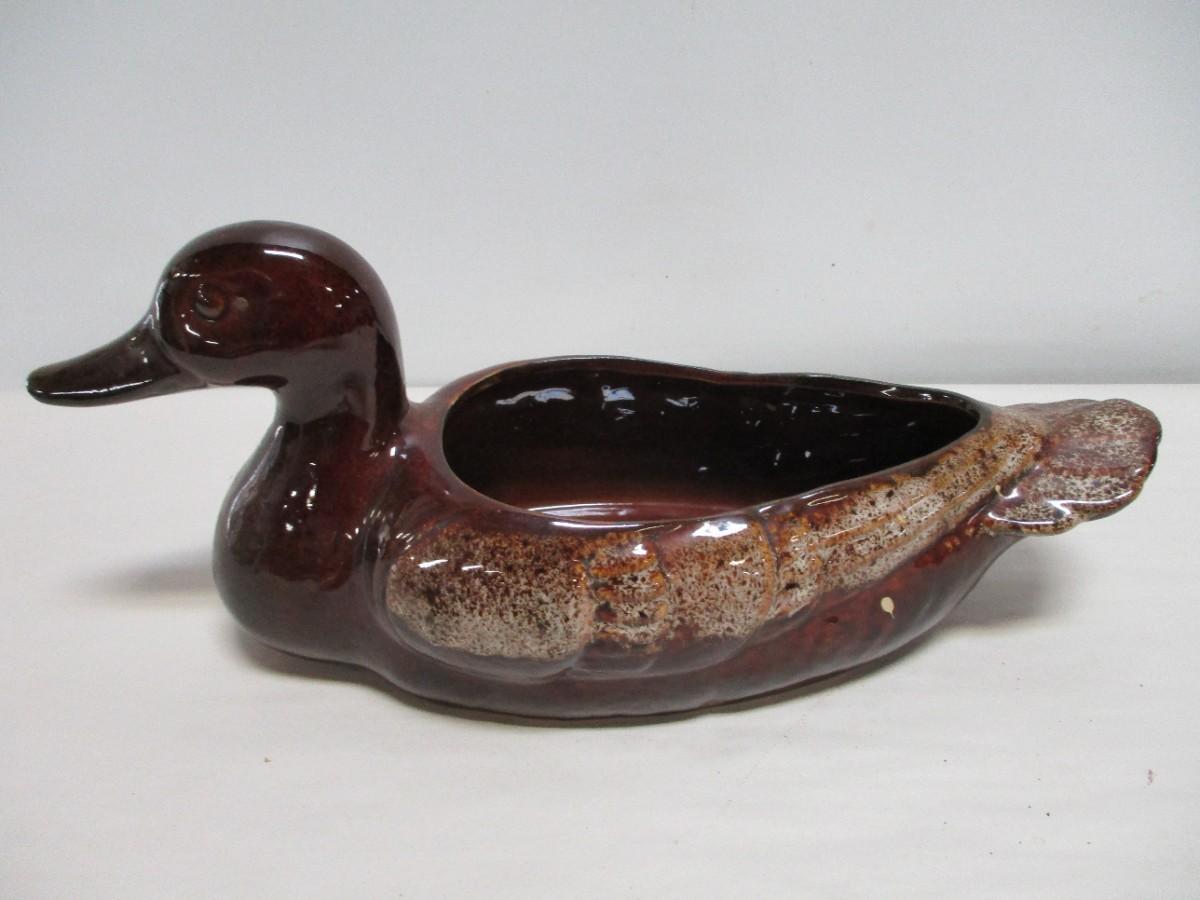 Vintage Hull? Pottery Ceramic Brown Drip Glazed Duck Planter