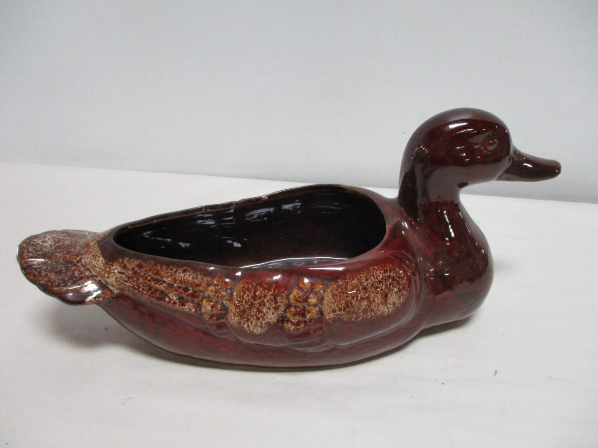 Vintage Hull?  Pottery Ceramic Brown Drip Glazed Duck Planter