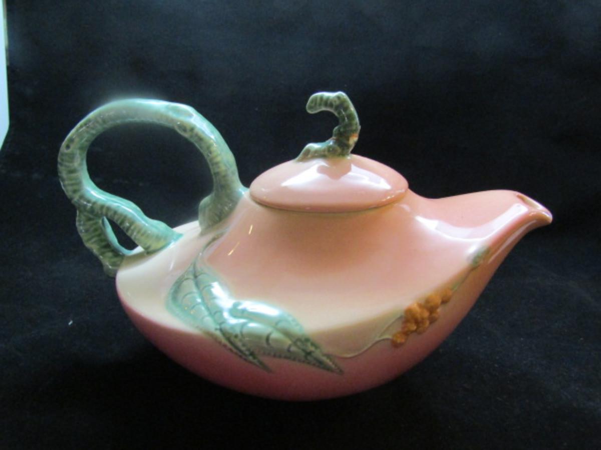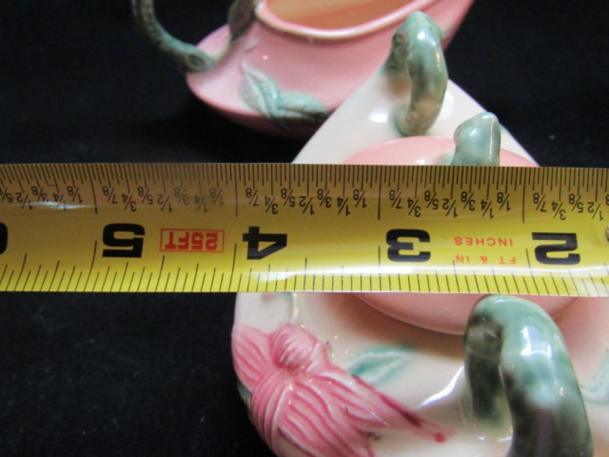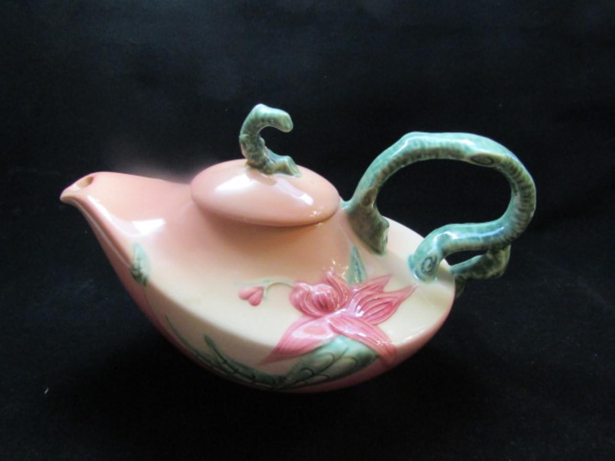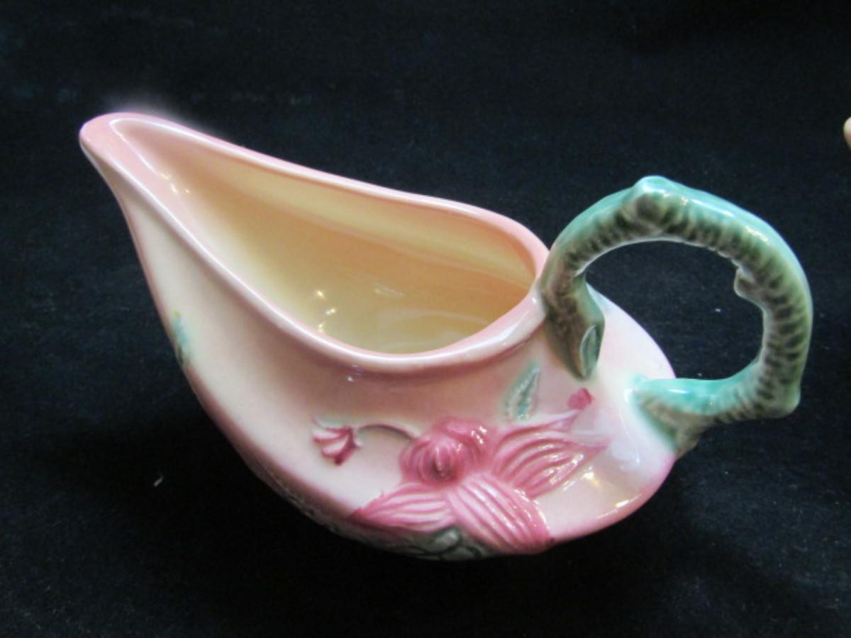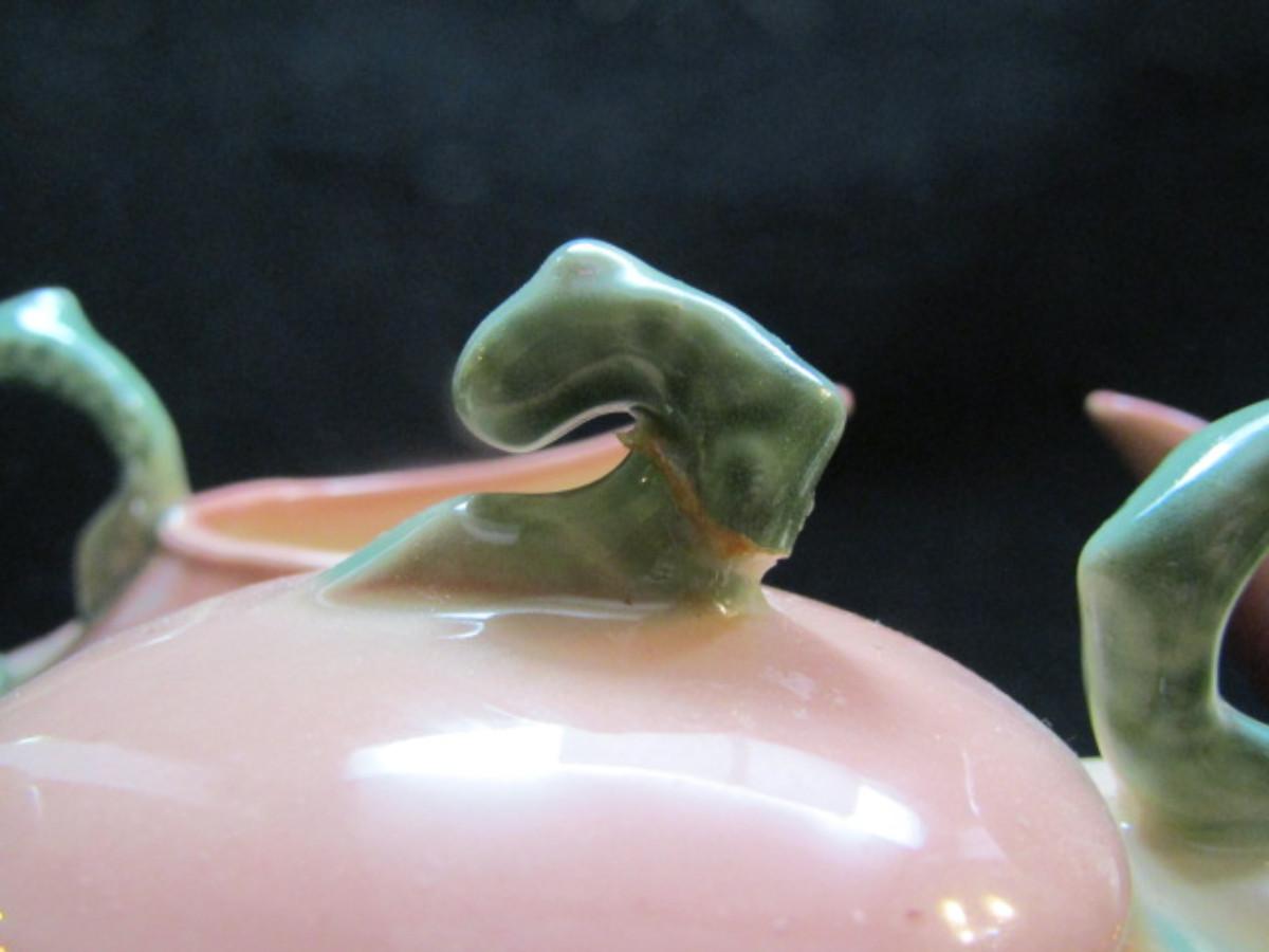 Vintage Hull Tea/Coffee Set (#1). Includes pot, two creamers and two sugar bowls (one has no lid). Please see all pictures- the handle on the lid of the pot has been repaired.