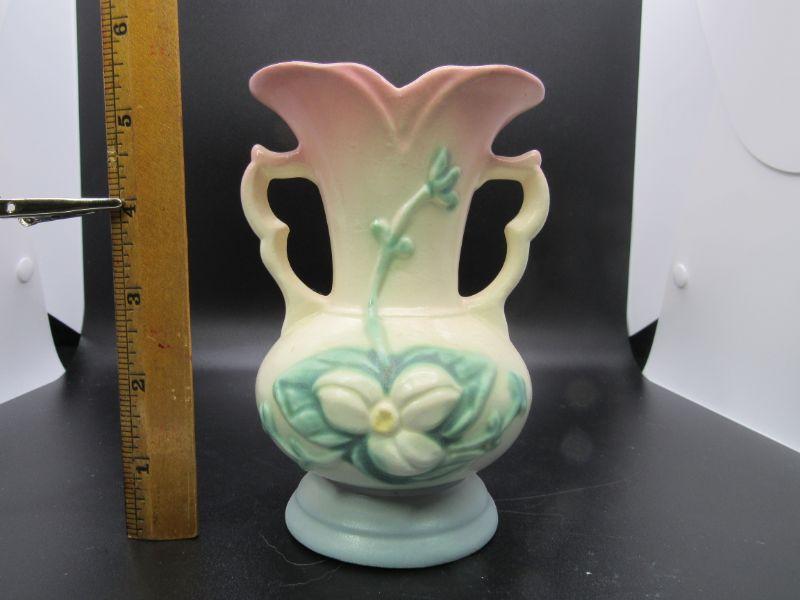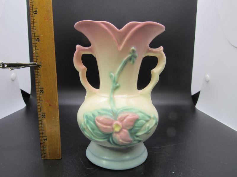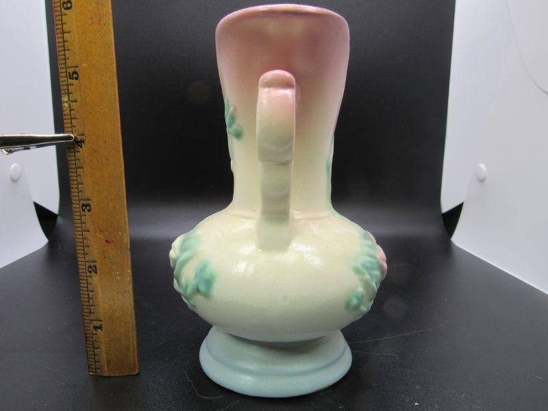 Vintage Hull USA Ceramic Pink White Blue Handled Vase