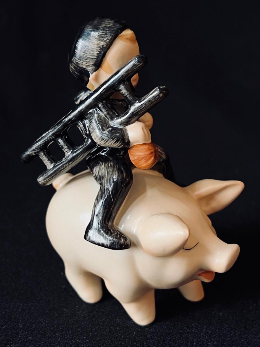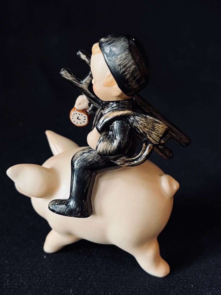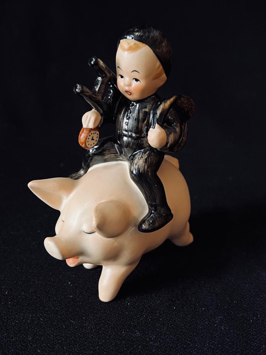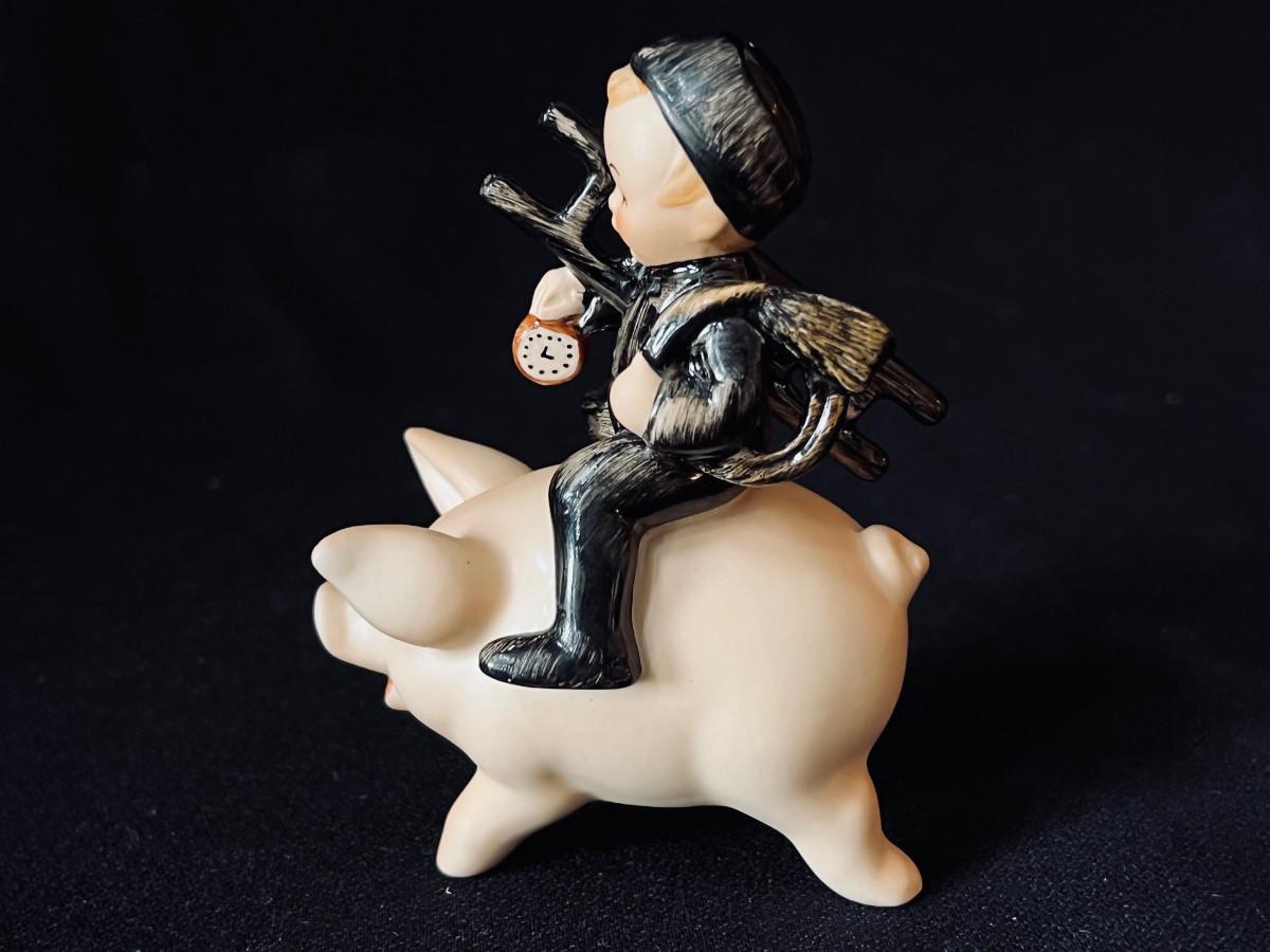 Vintage Hummel Chimney Sweep on the most adorable Pig ever. #Spo61 TMK-5 1970s original box! 4" high. Pristine condition.