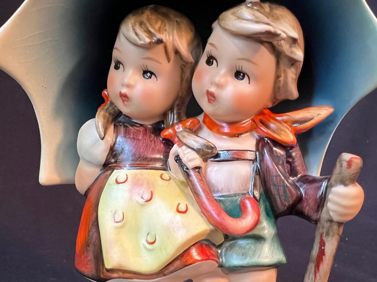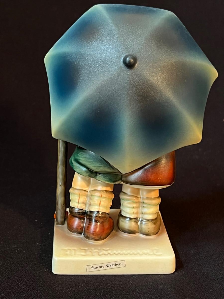 Vintage Hummel Stormy Weather 71 1970s TMK-5 6 1/2" tall w Original Box! Price guide lists this at $300. A modest reserve has been placed at the request of the estate.