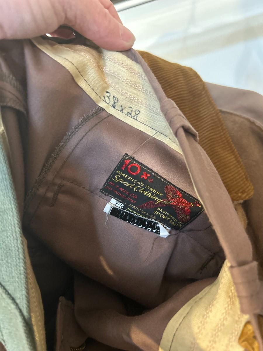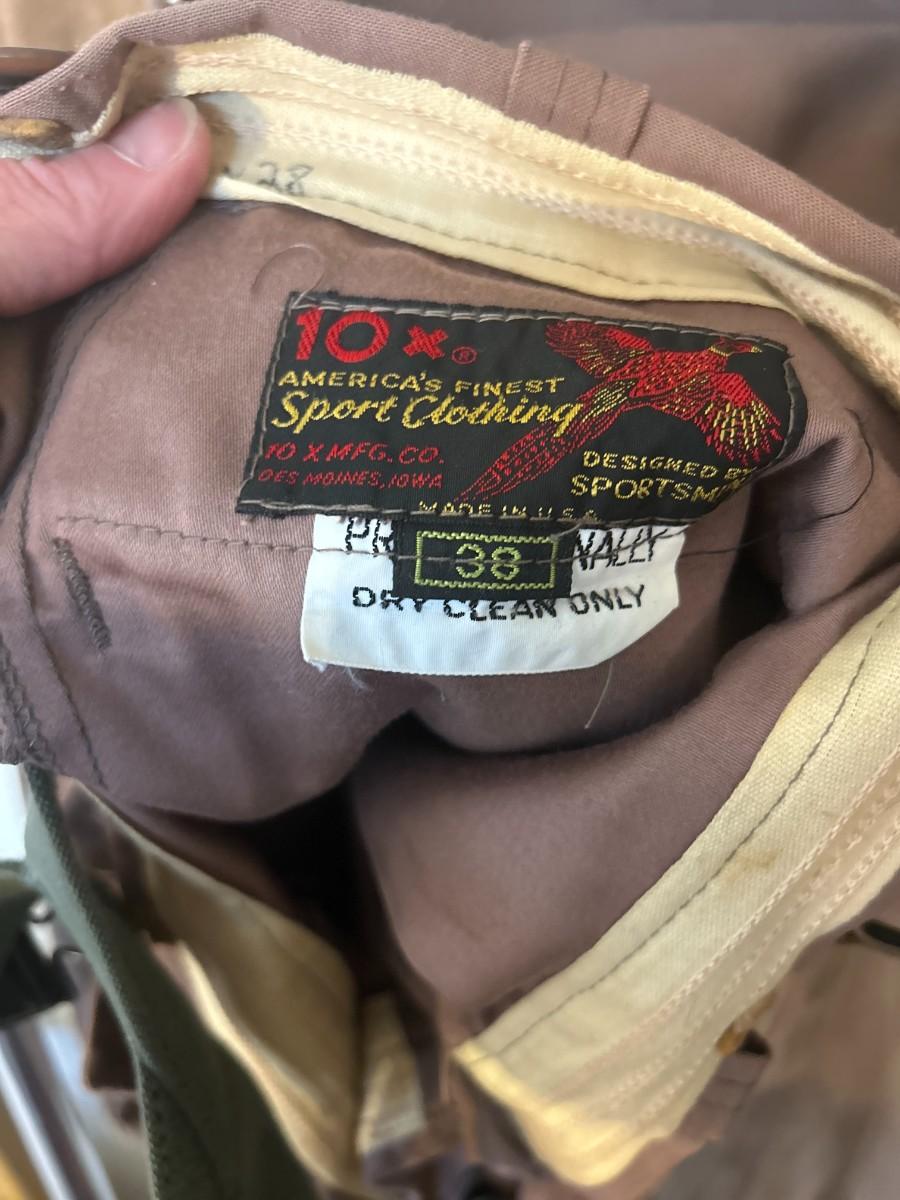 Vintage 10-X America's Finest Sport Clothing bird Hunting jacket and pants. Jacket is L and pants are 38x28.