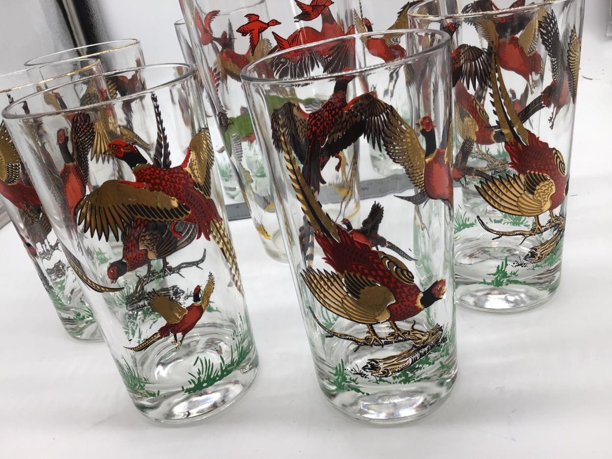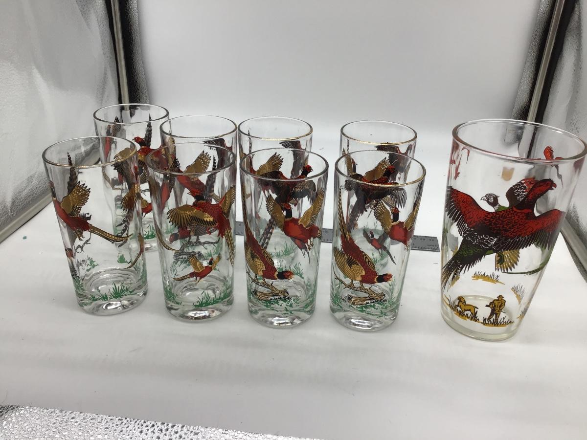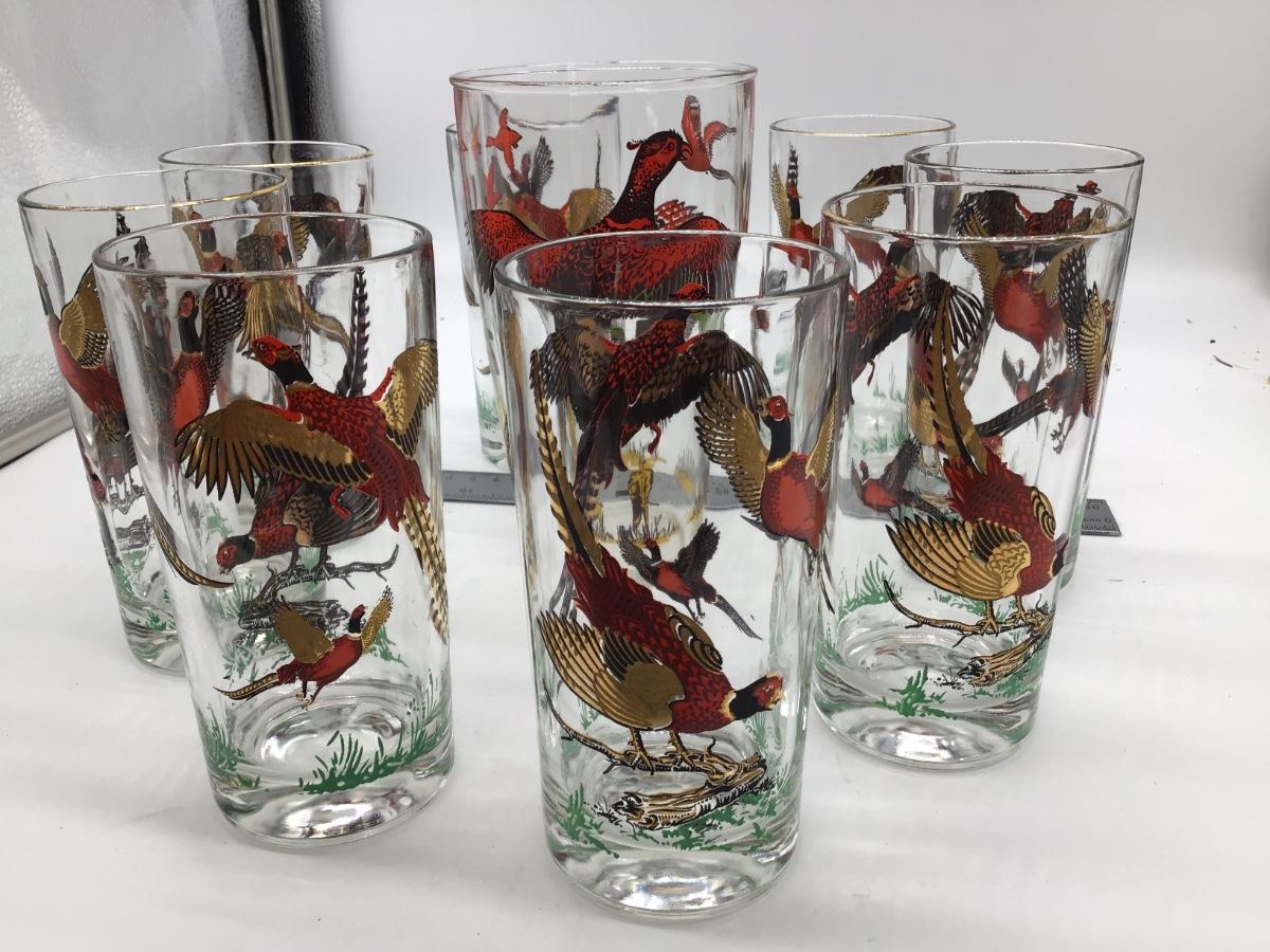 Set of 8 and Large And 1 Large Hunter Atlas Pheasant Glass. 9 Total. No chips or cracks