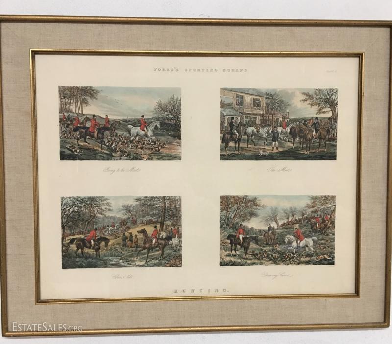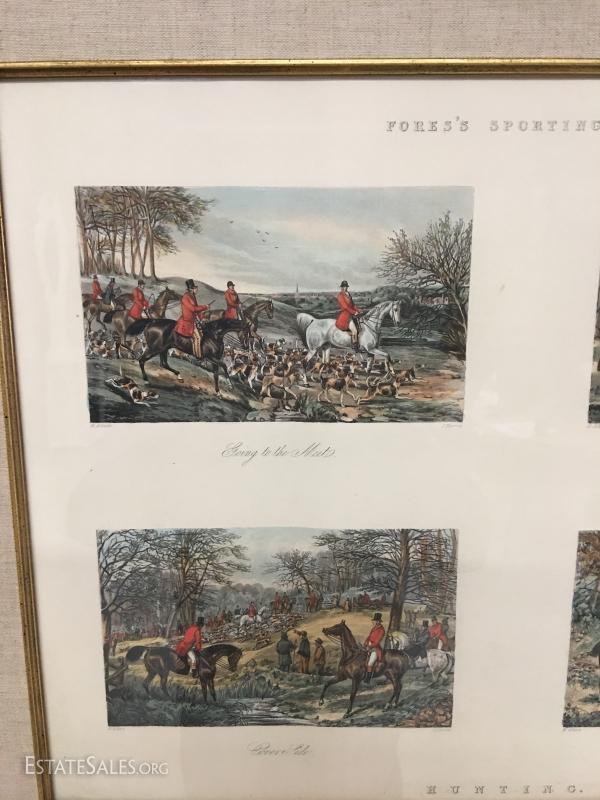 Nice vintage print, 1950's, English hunting scenes. good overall condition. 25" by 20".