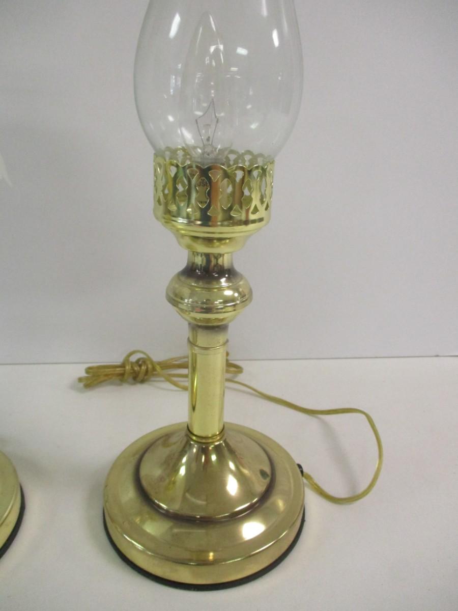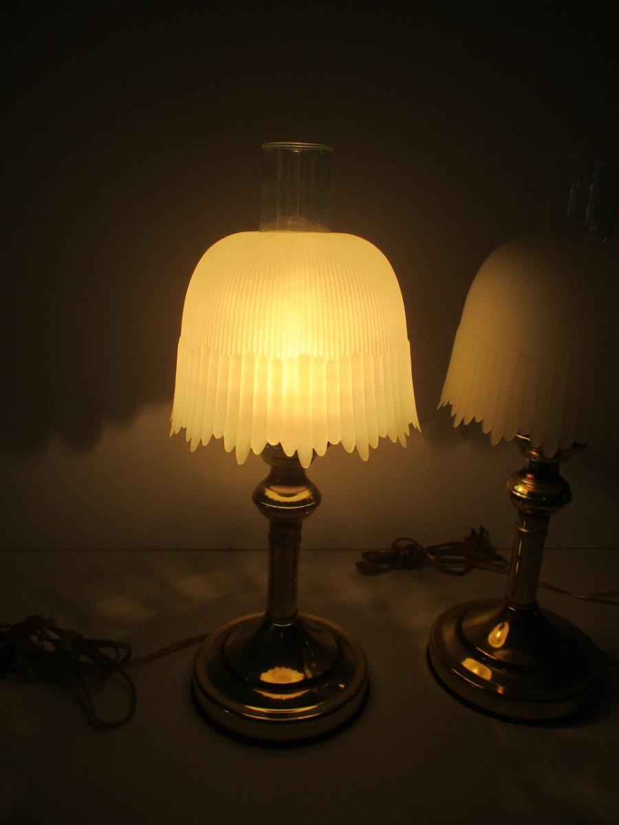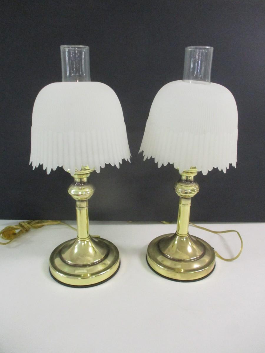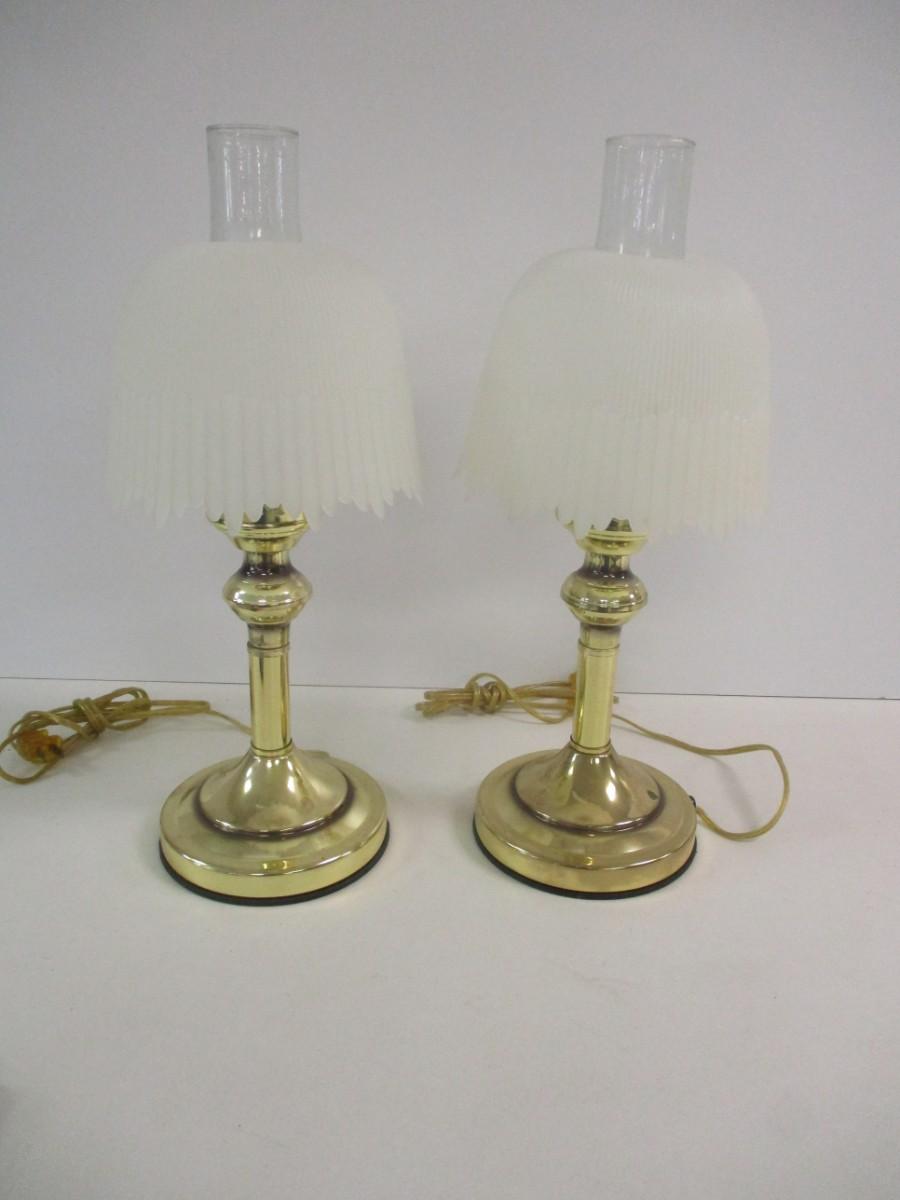 Vintage Hurricane Style Table Top Accent Touch Brass Lamps With Plastic Shades Retro