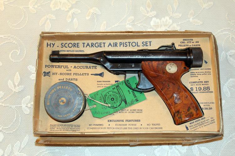 Vintage HY-Score air pistol, in box, not tested, excellent cosmetic condition, in original box (exterior of box is in poor condition)