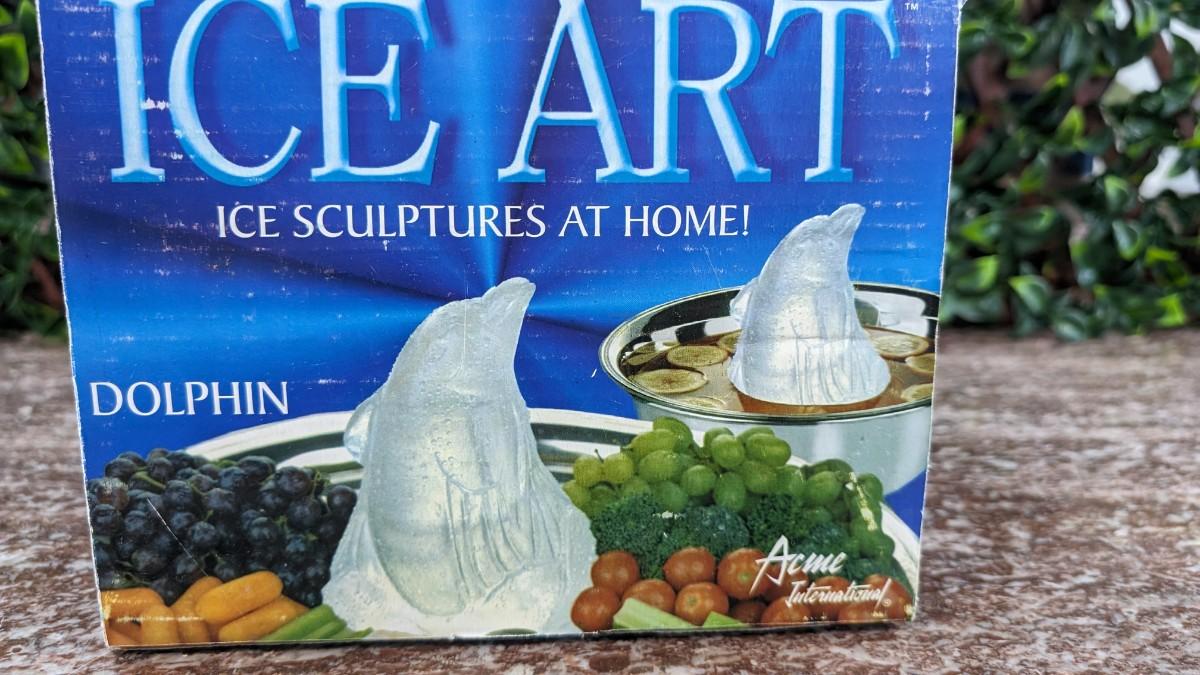 This is a Vintage Ice Art Sculpture Dolphin #93257 Plate Punch Bowl Display