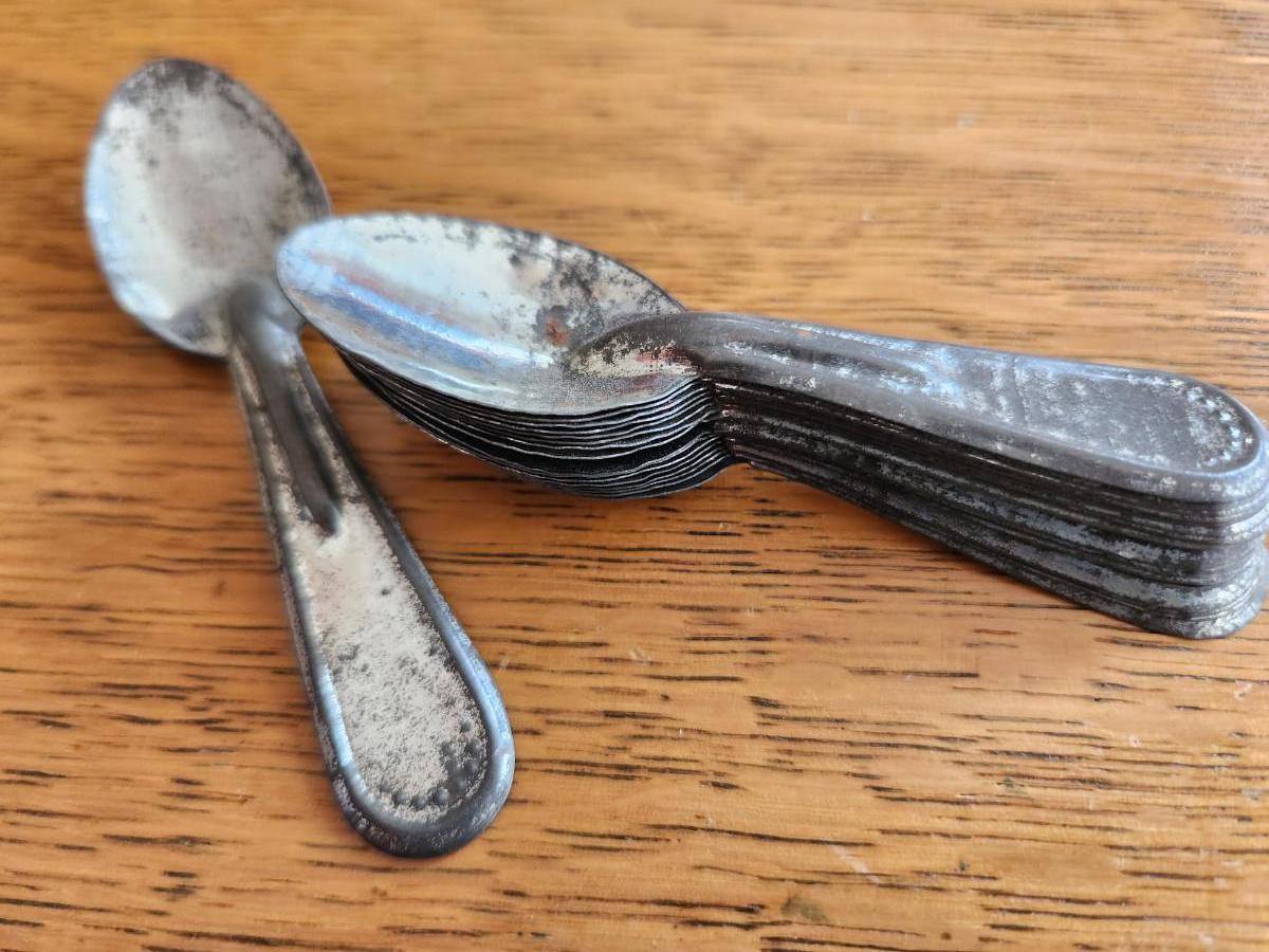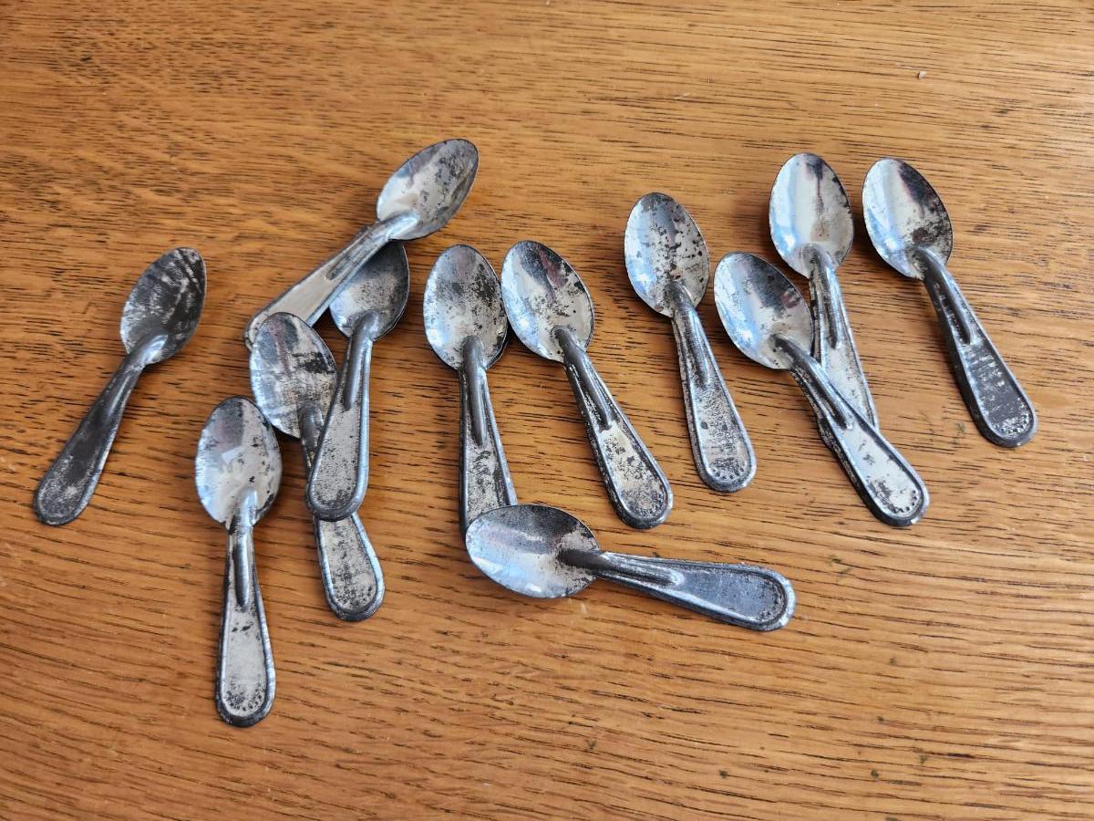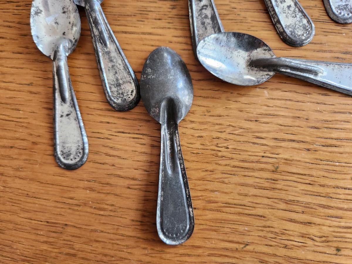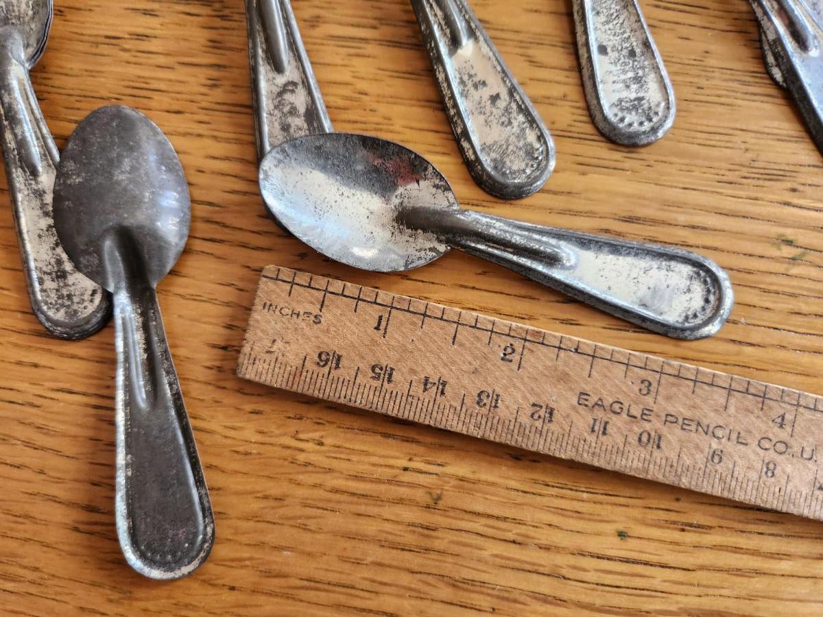 This auction lot is for a collection of Vintage Ice Cream Spoons. There are 12 of these thin metal spoons, none show any markings or maker, but they can be saved, used or displayed in so many ways.