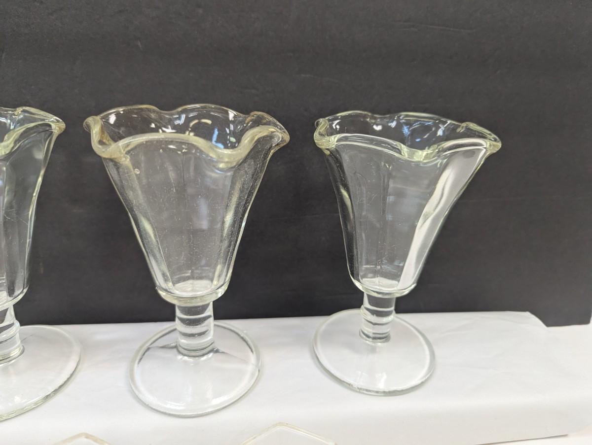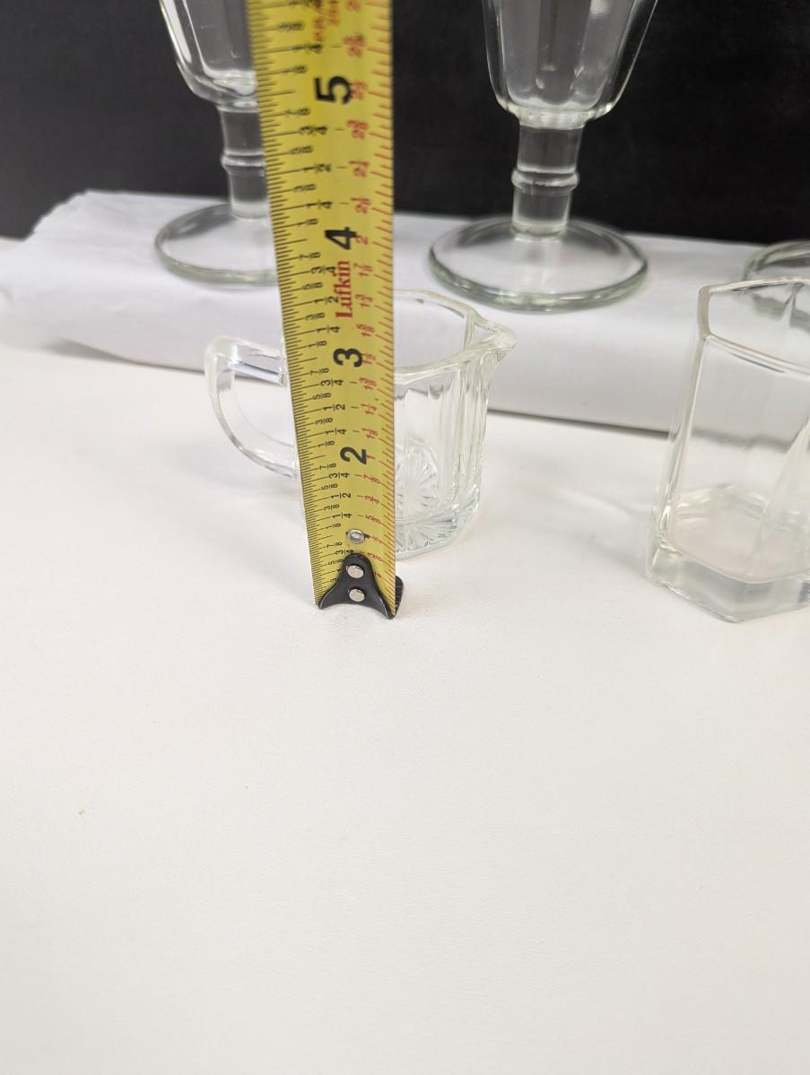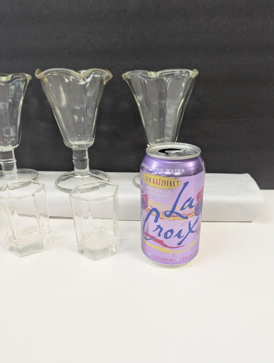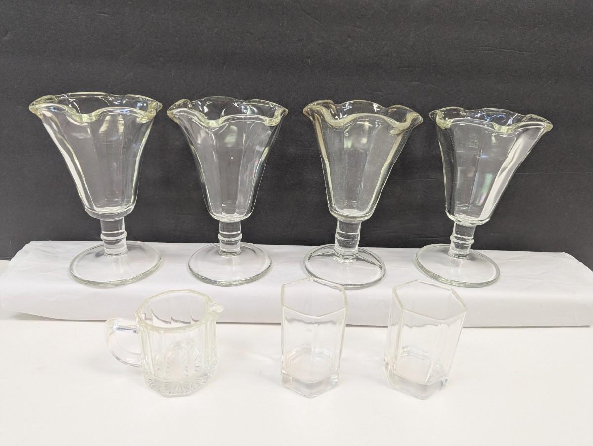 Vintage Ice Cream Sundae Serving Bowls - Green Tint - Clear Glass Shot Glasses & Small Pitcher