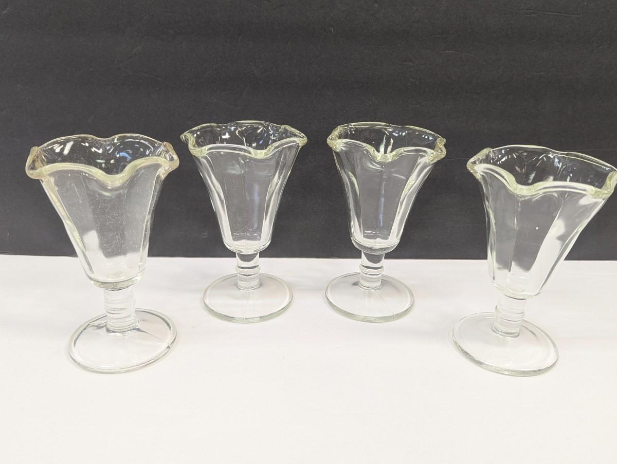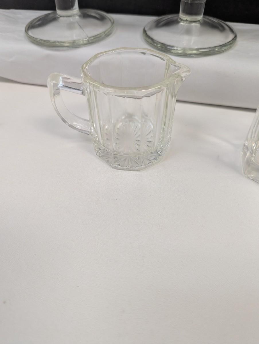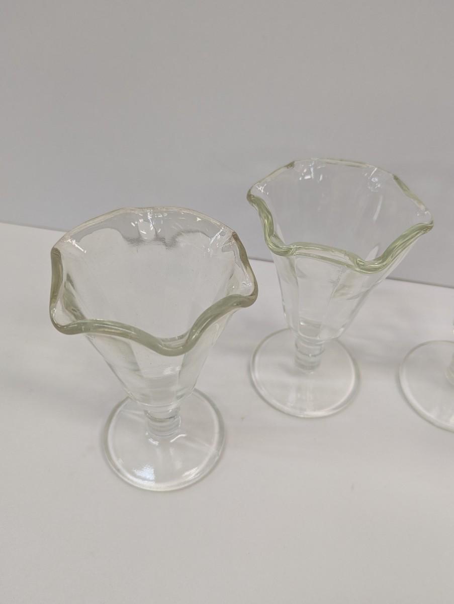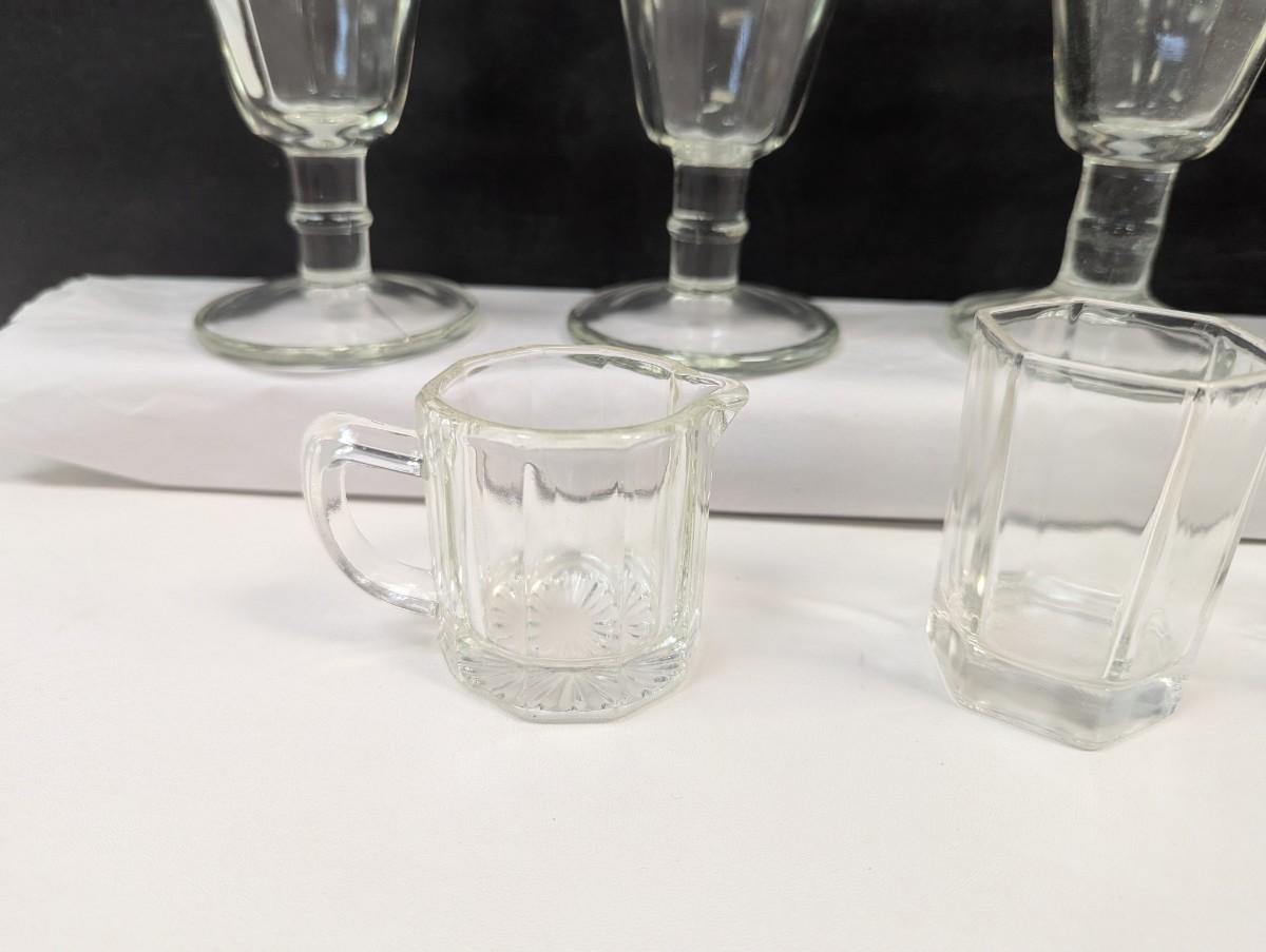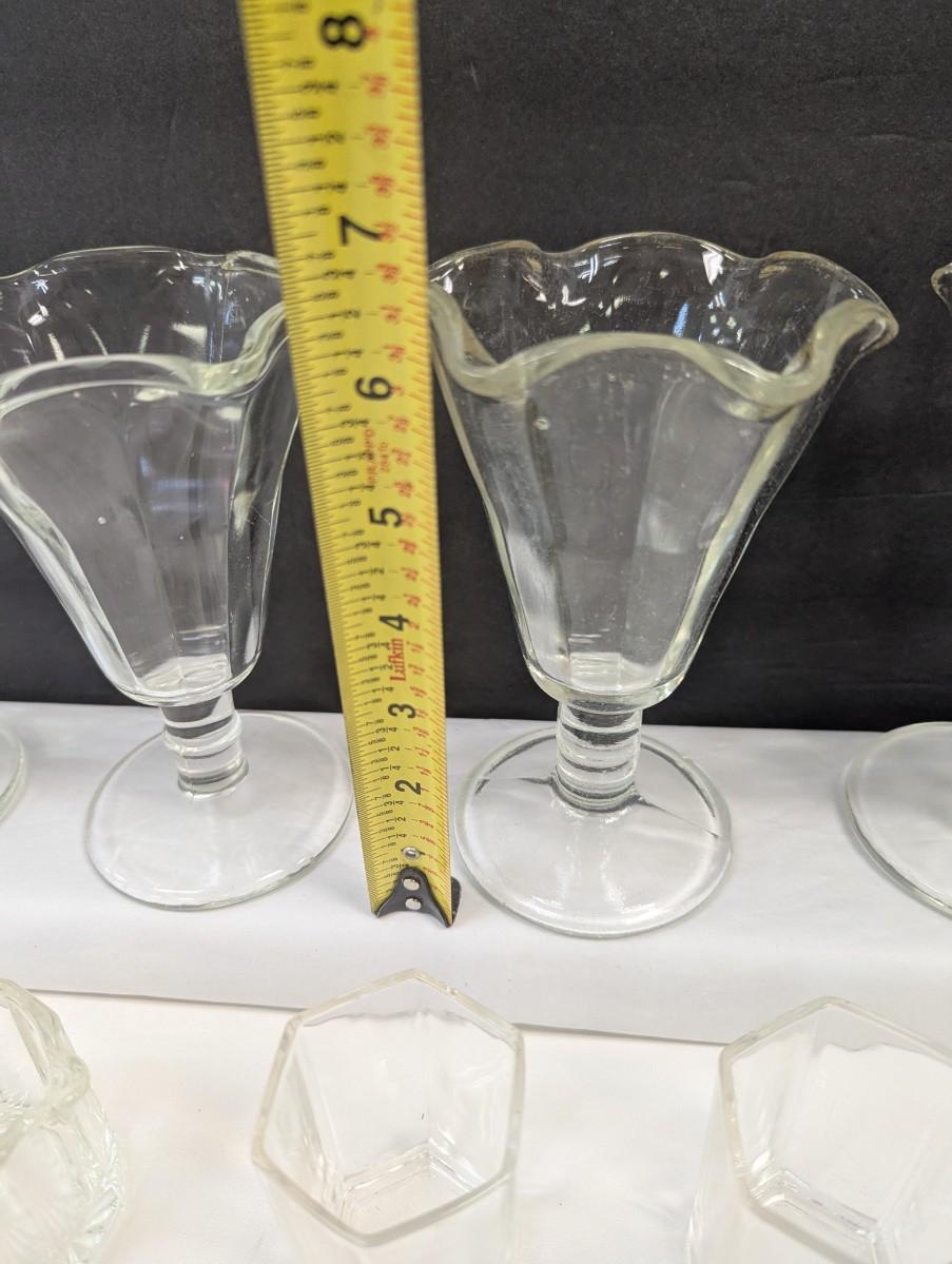 Vintage Ice Cream Sundae Serving Bowls - Green Tint - Clear Glass Shot Glasses & Small Pitcher