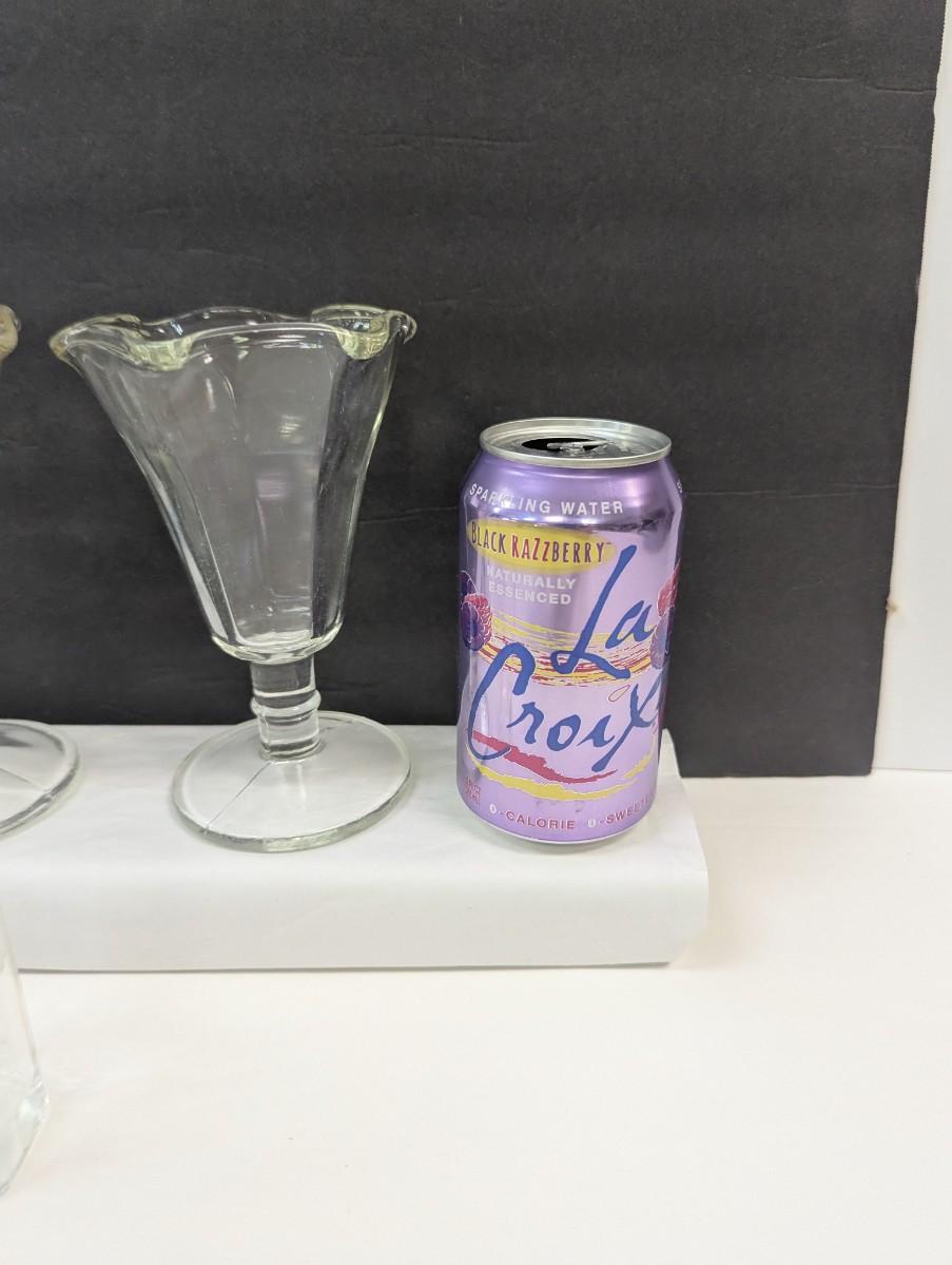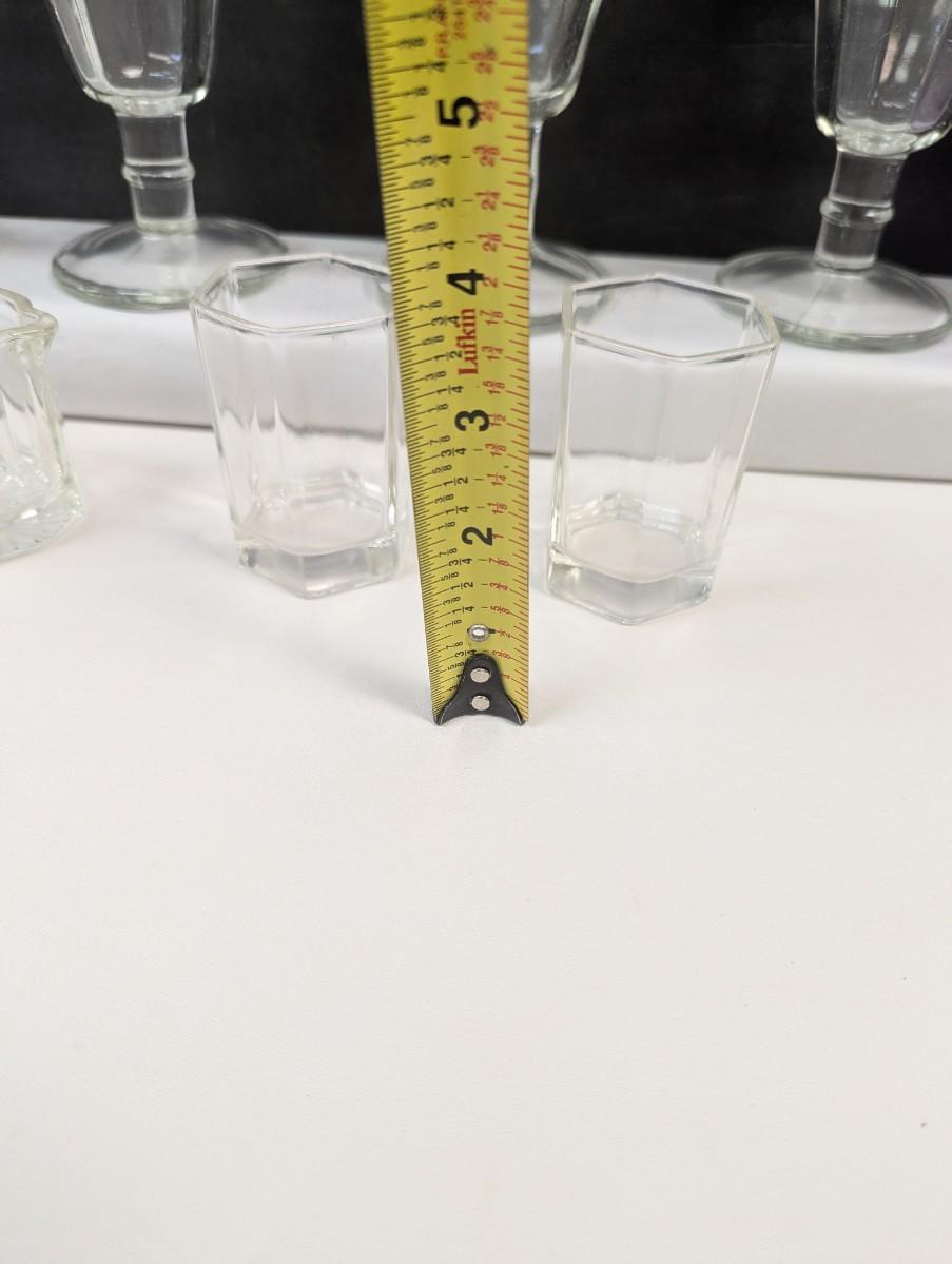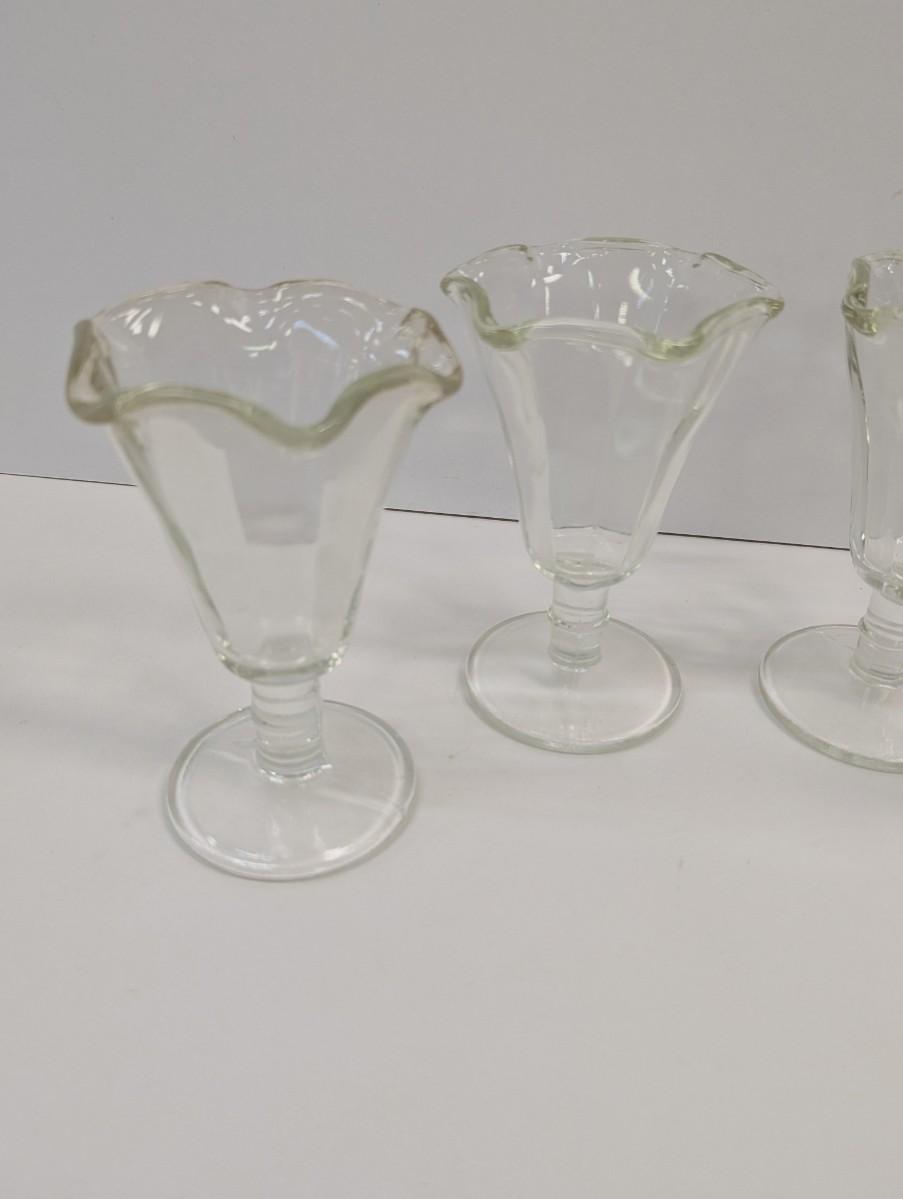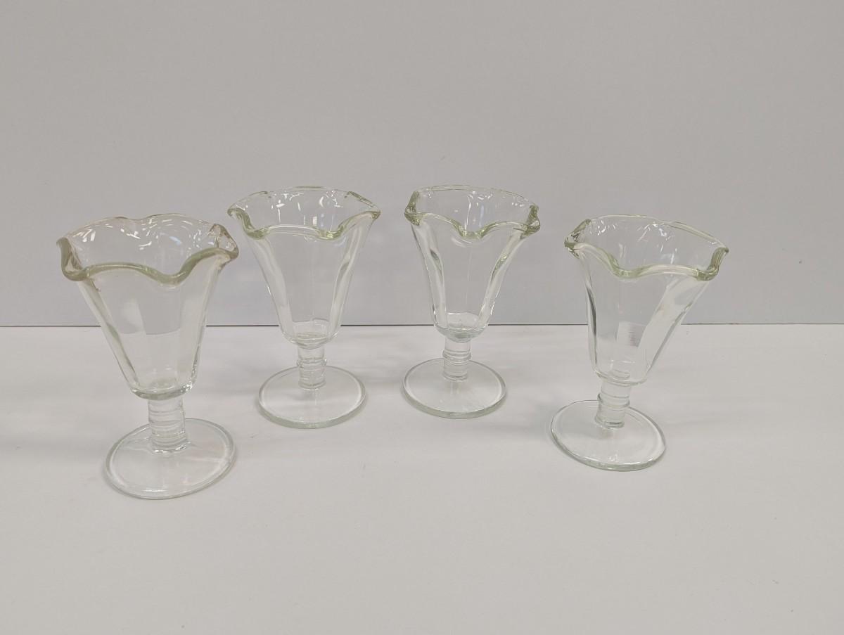 Vintage Ice Cream Sundae Serving Bowls - Green Tint - Clear Glass Shot Glasses & Small Pitcher