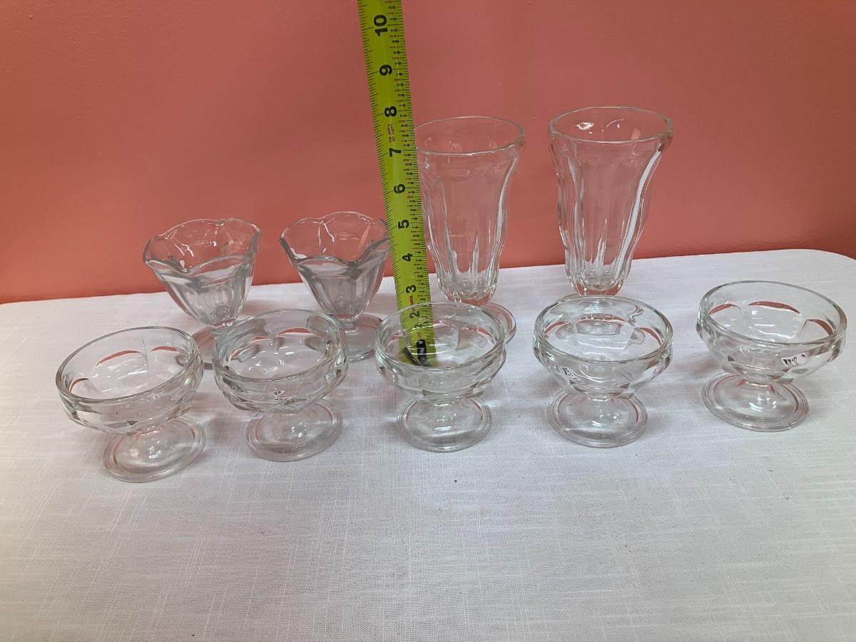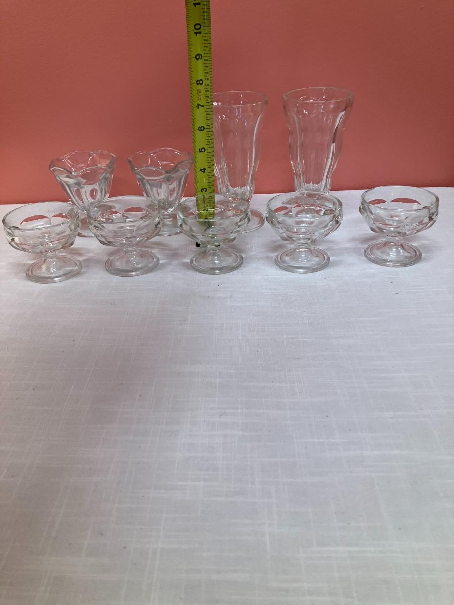 Set of 9 vintage icecream/fruit/icecream float dishes. Excellent condition.