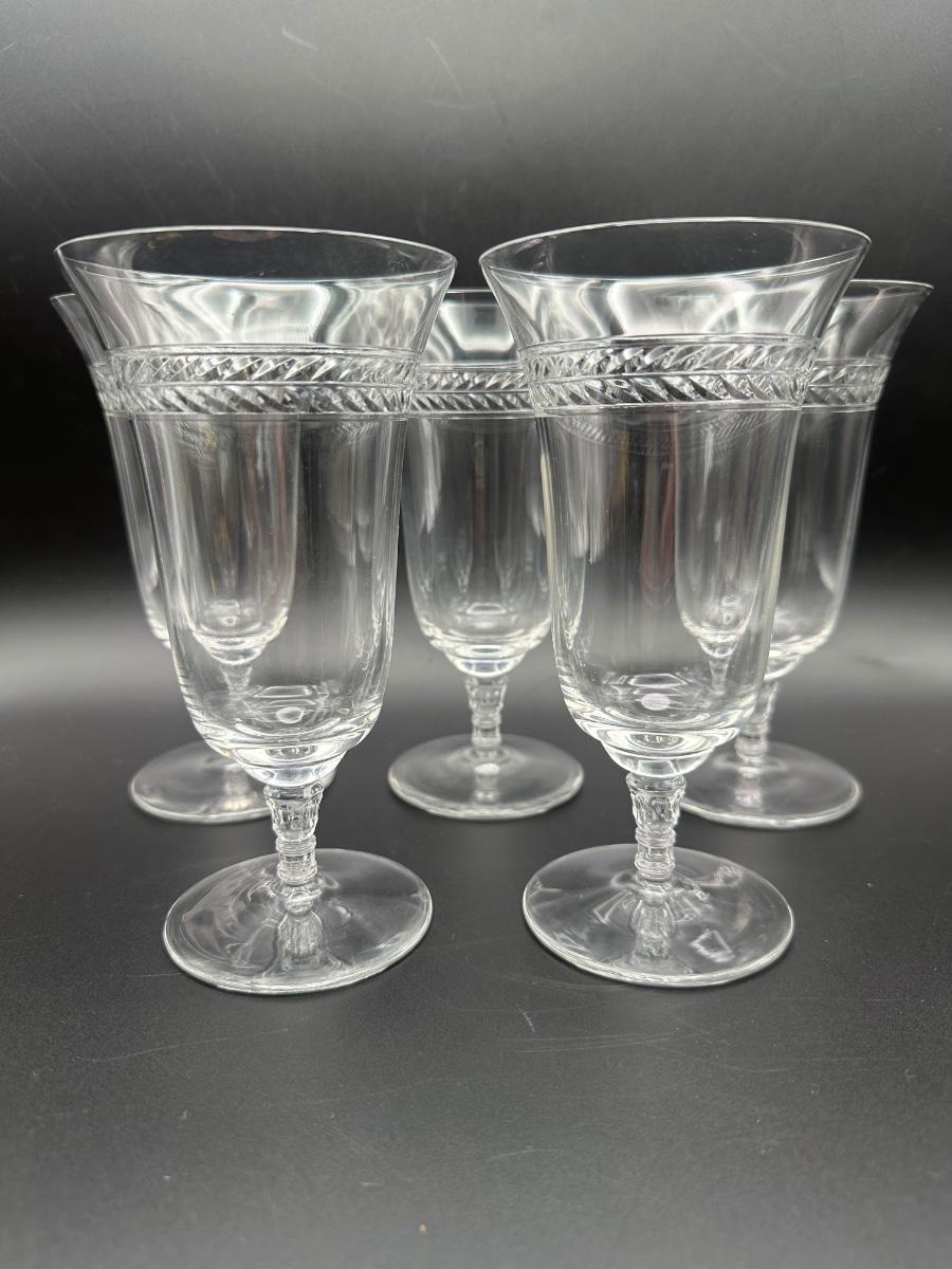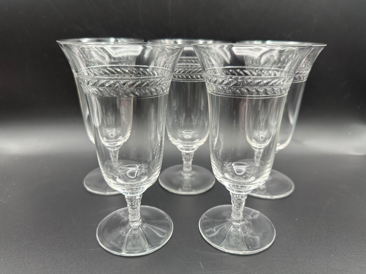 Vintage Iced Tea Glasses with Polished Cut Laurel Pattern (5)