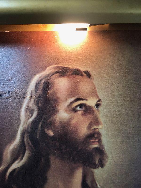 vintage ILLUMINATED PORTRAIT of JESUS CHRIST