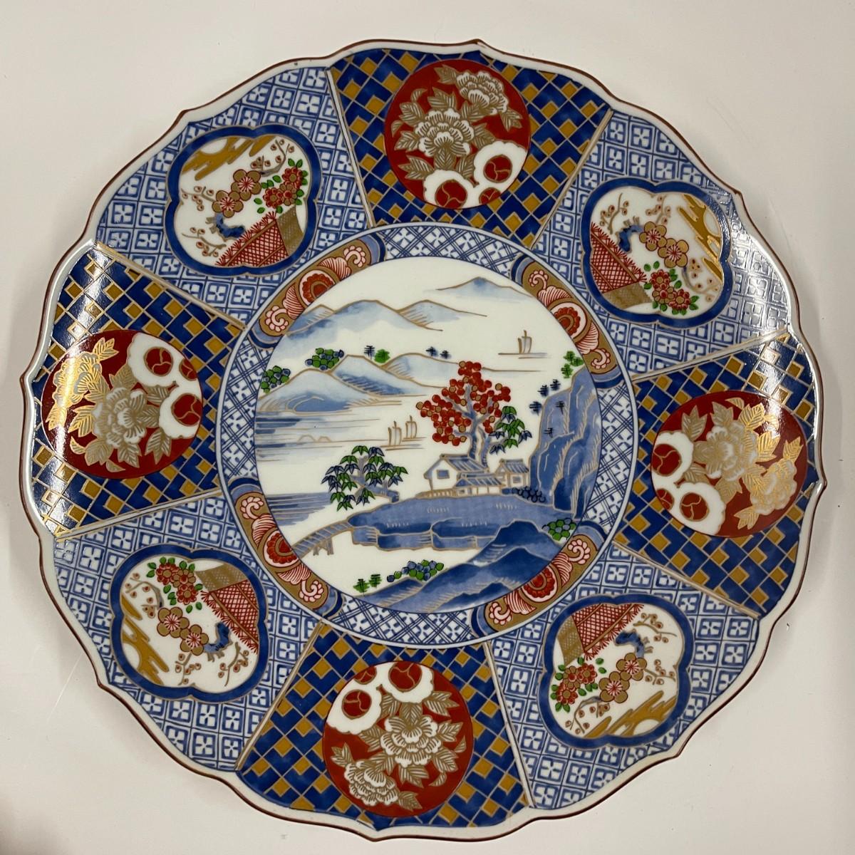 Vintage Imari Porcelain Platter/Charger, Scalloped Edge