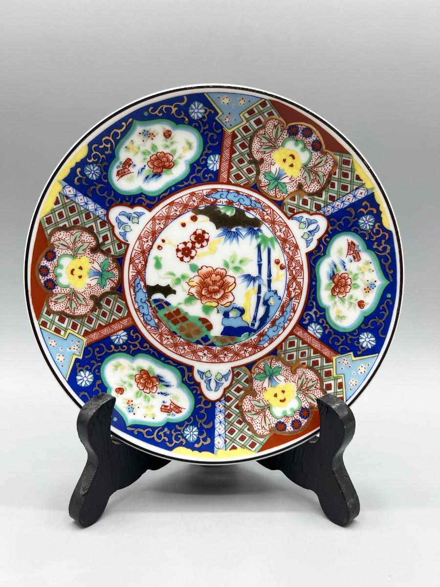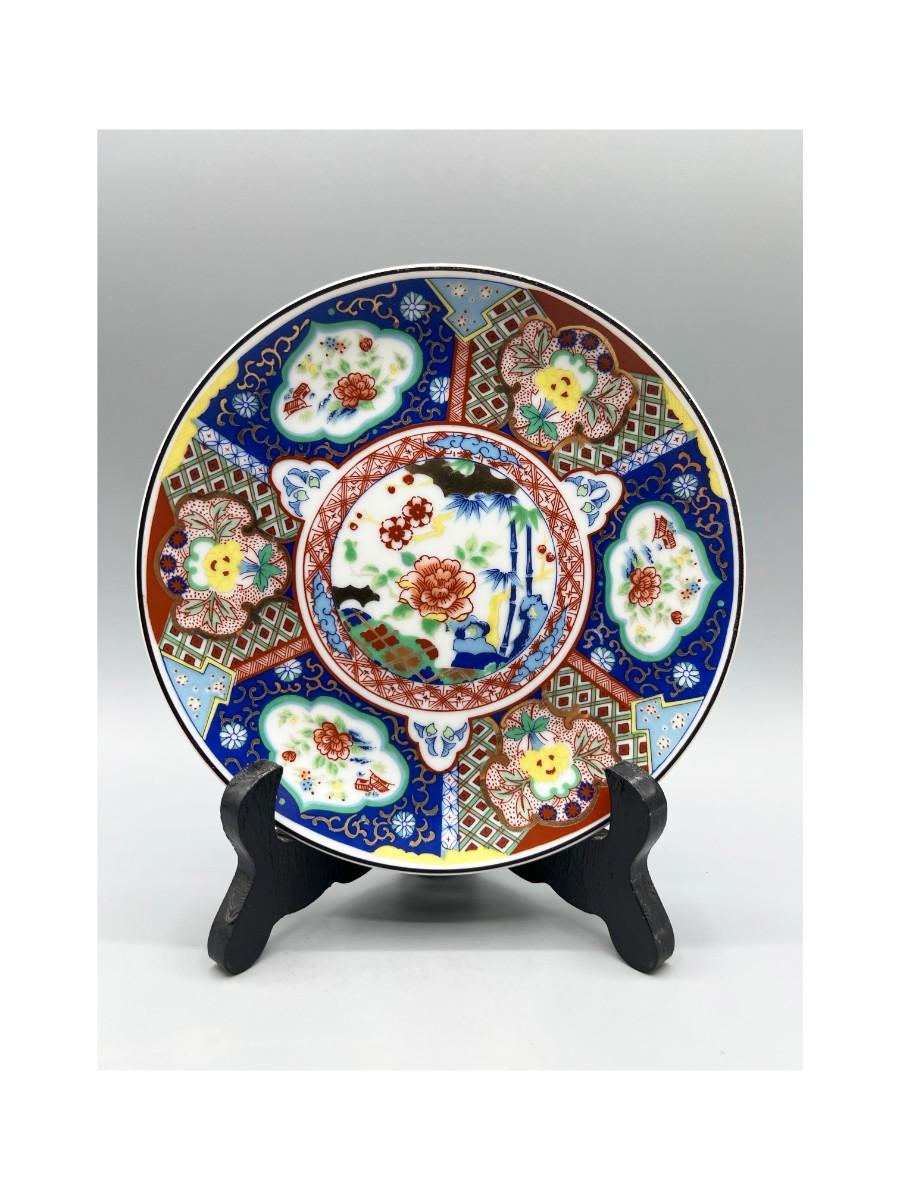 Vintage Imari Ware Japan Fine Porcelain Colorful Geometric Floral Pattern Decorative Plate