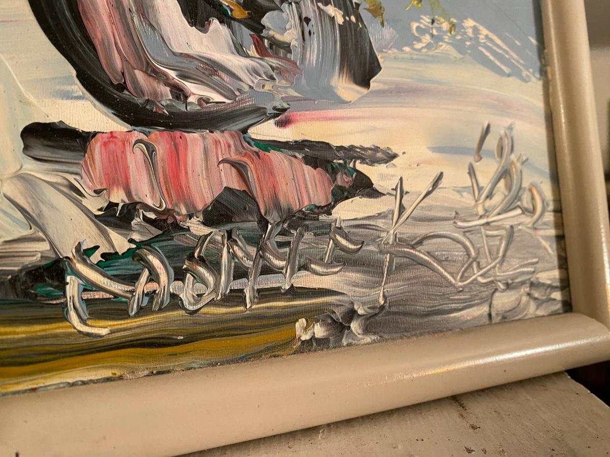 Vintage Impasto style painting flowers, signed, framed , on board. Spring colors. Approx 13x10.