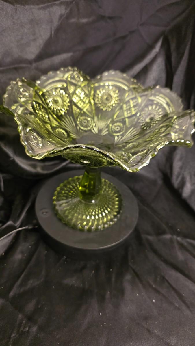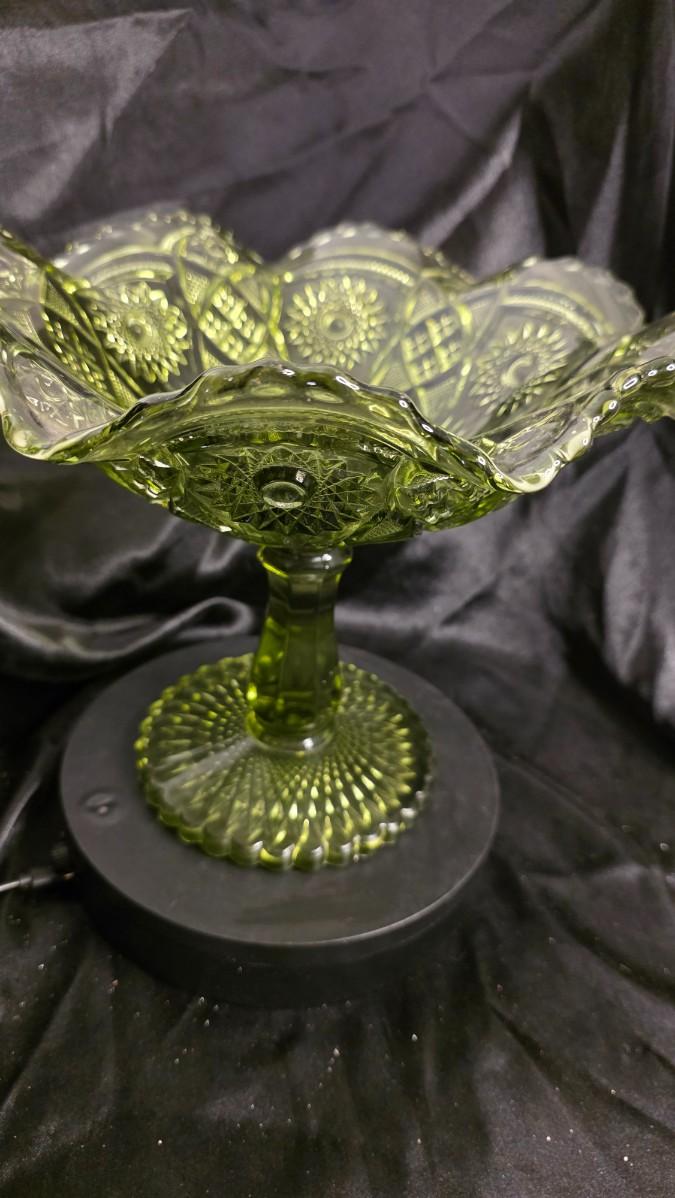 Want to avoid the bidding process? You can stake your claim on this item and swipe it from your fellow Treasure Hunters by completing the purchase on our website at: https://treasuresofbako.com/products/vintage-imperial-glass-avocado-green-hobstar-pedestal-compote-mid-century-statement-bowl?utm_source=copyToPasteBoard&utm_medium=product-links&utm_content=web