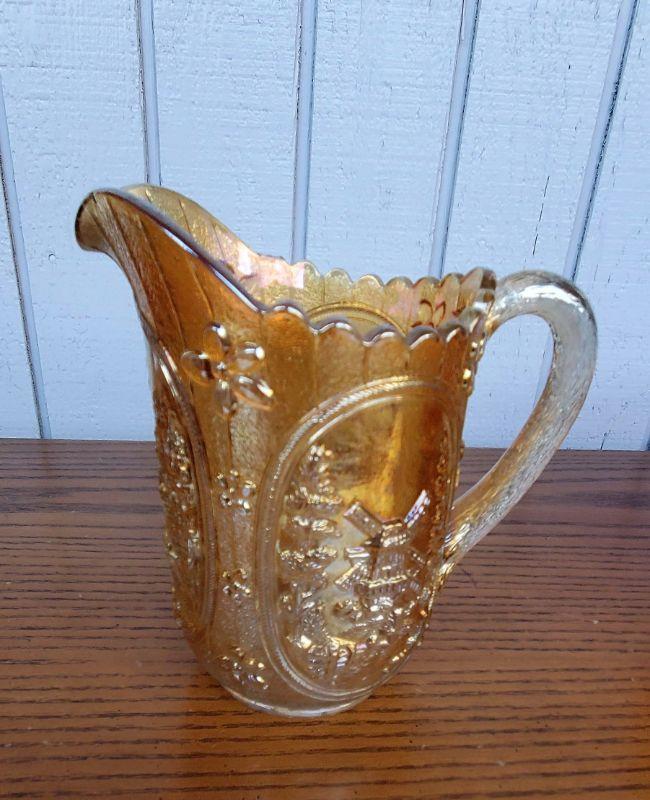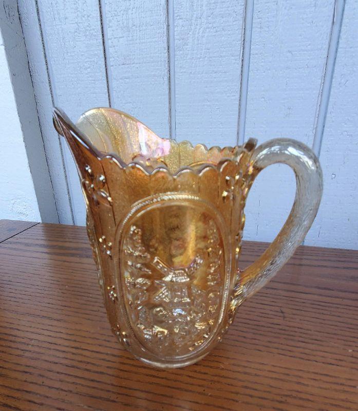 Vintage Imperial Marigold Carnival Windmill Pattern Glass Pitcher