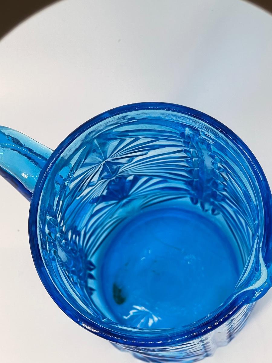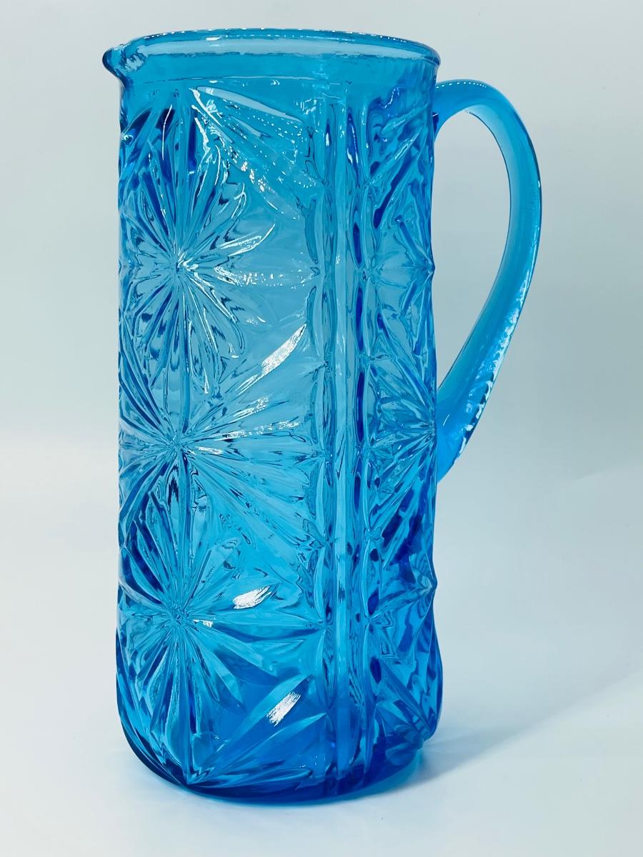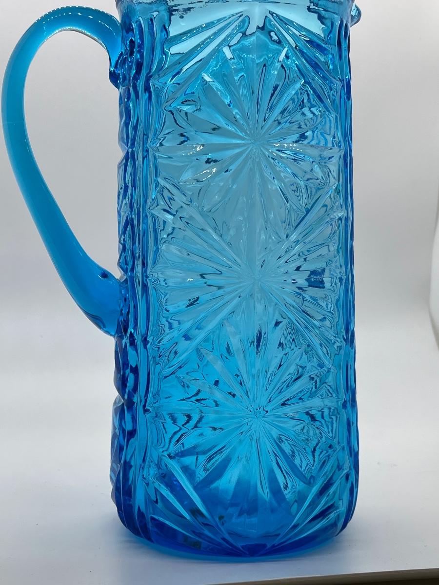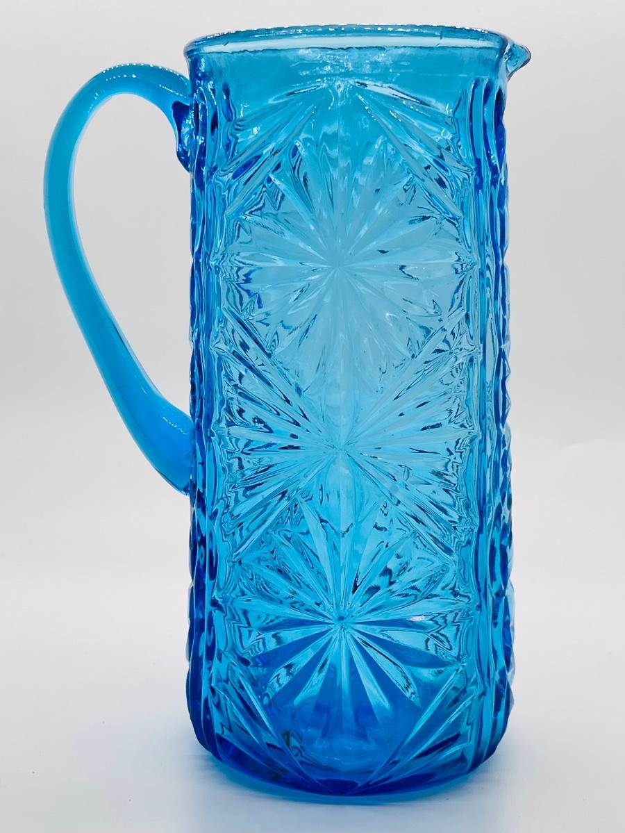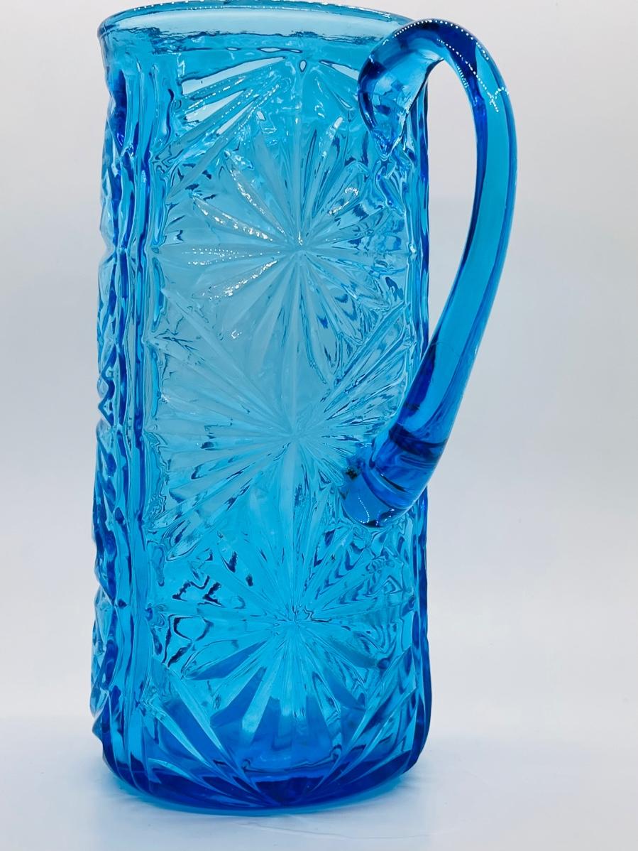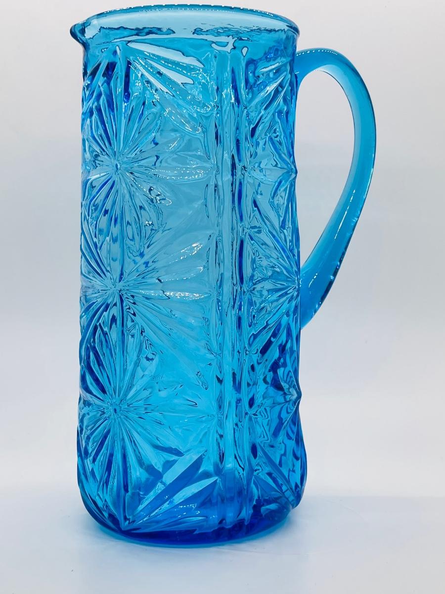 This is a great piece! The sticker is mostly missing but another pictcher has the same sticker which shows Impoli. That pitcher will also be posted. No chips or cracks. Beautiful condition. The beautiful blue does all the talking!! Add a pop of color to your mid century space!