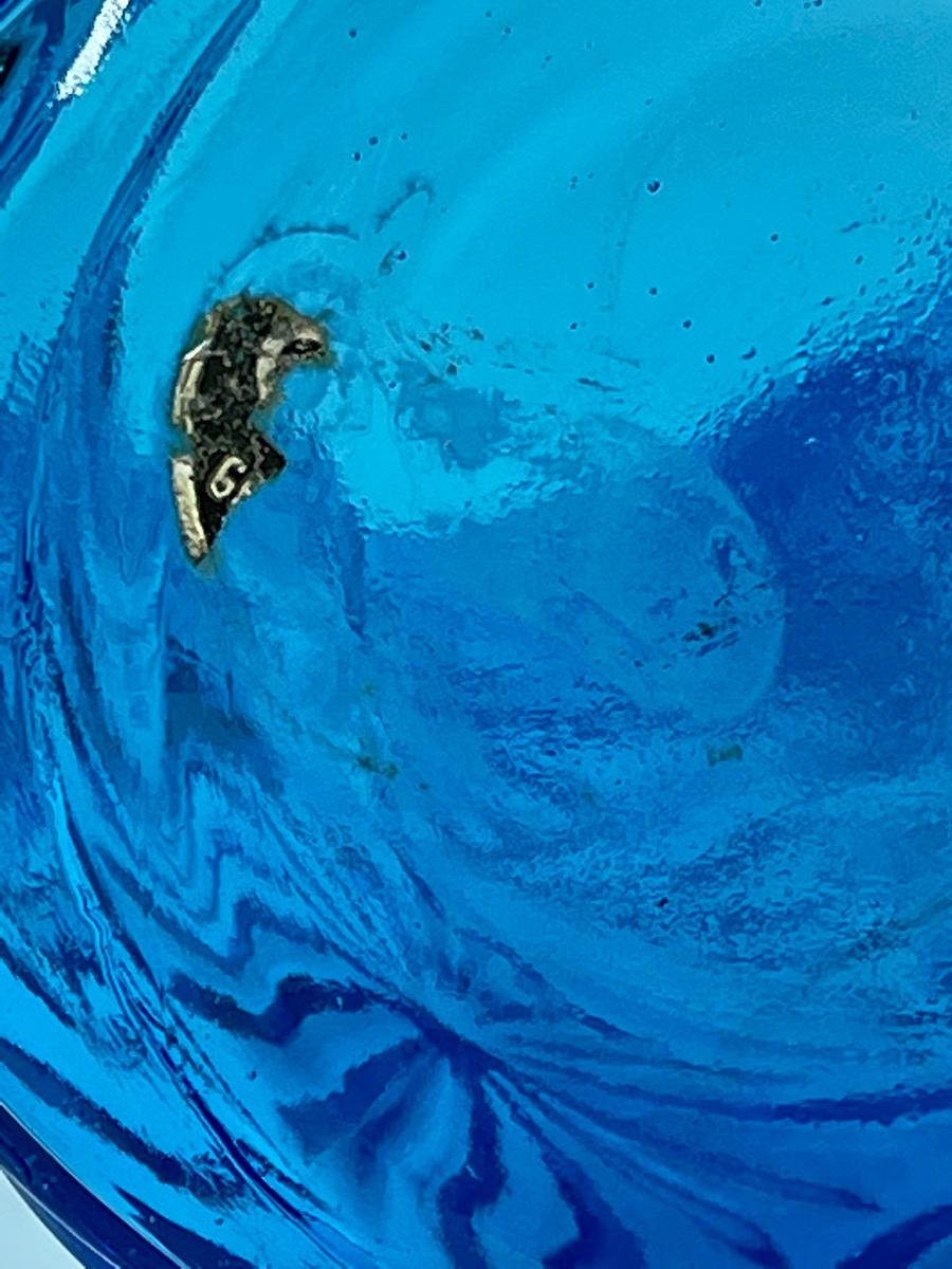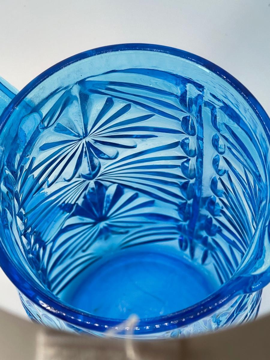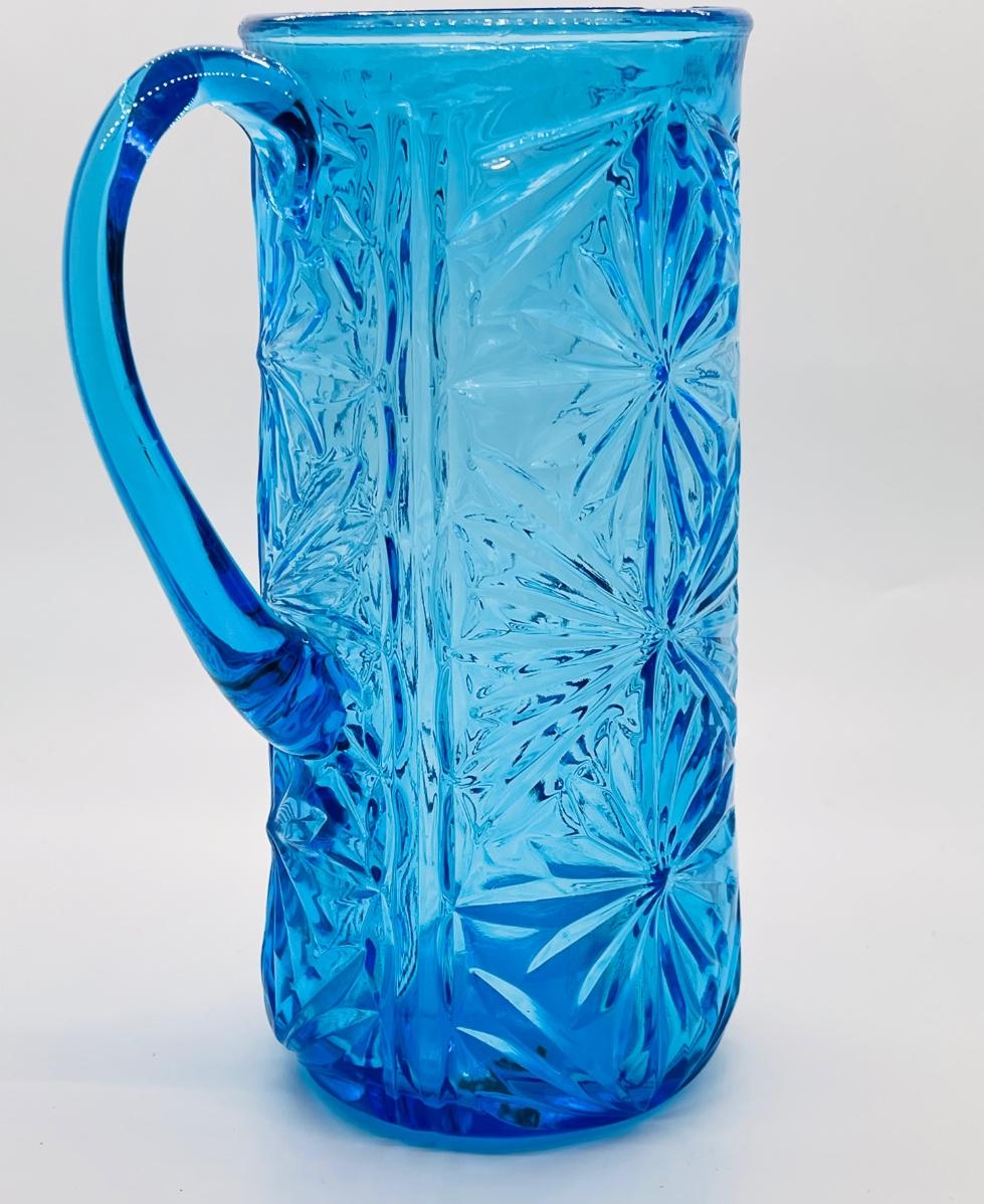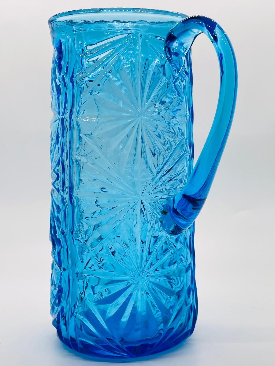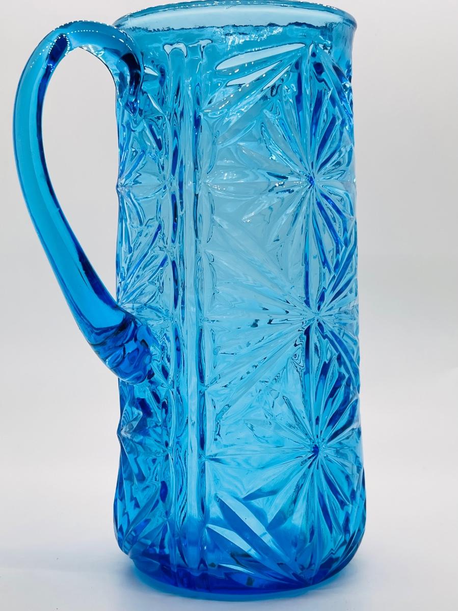This is a great piece! The sticker is mostly missing but another pictcher has the same sticker which shows Impoli. That pitcher will also be posted. No chips or cracks. Beautiful condition. The beautiful blue does all the talking!! Add a pop of color to your mid century space!
