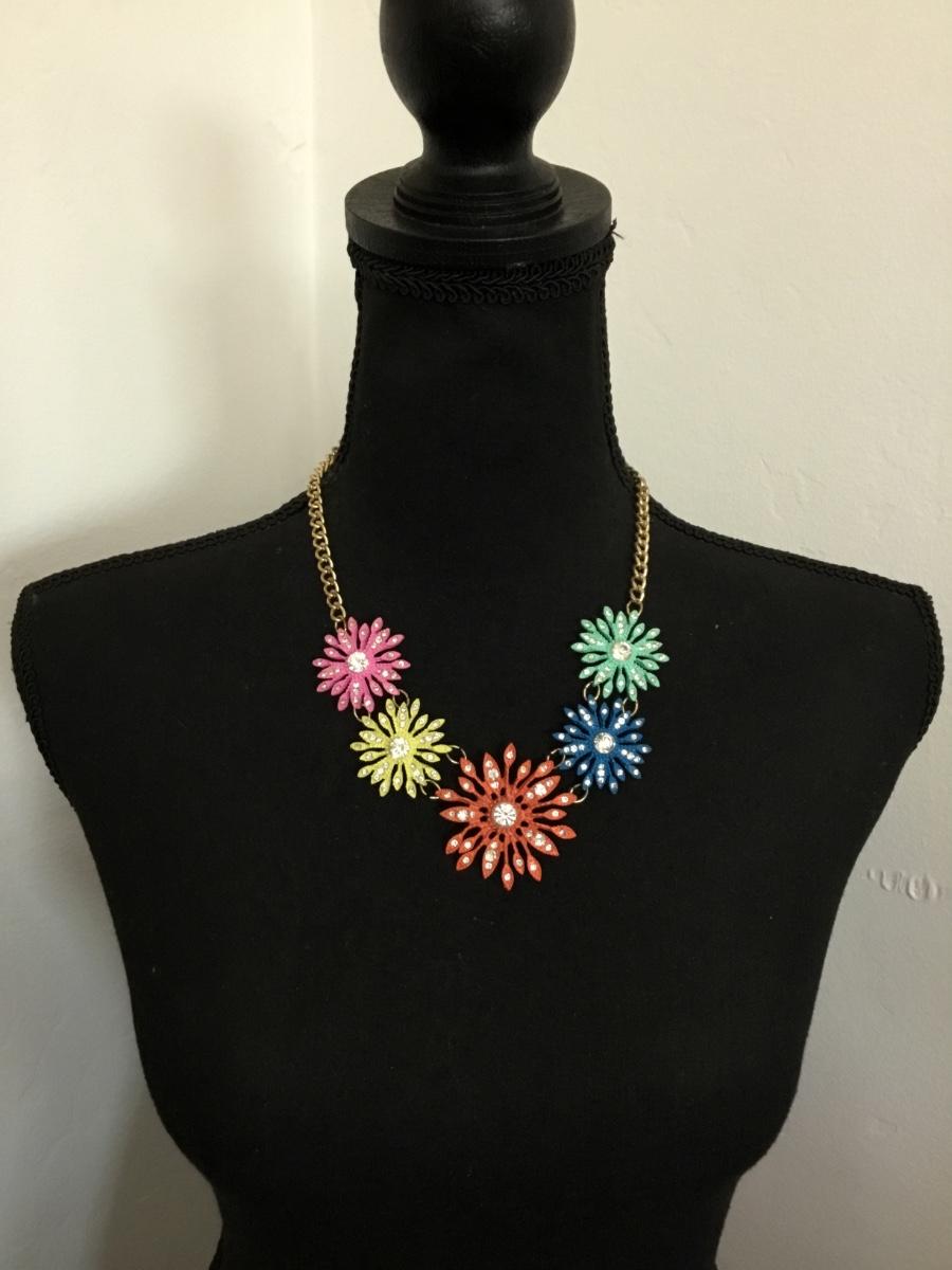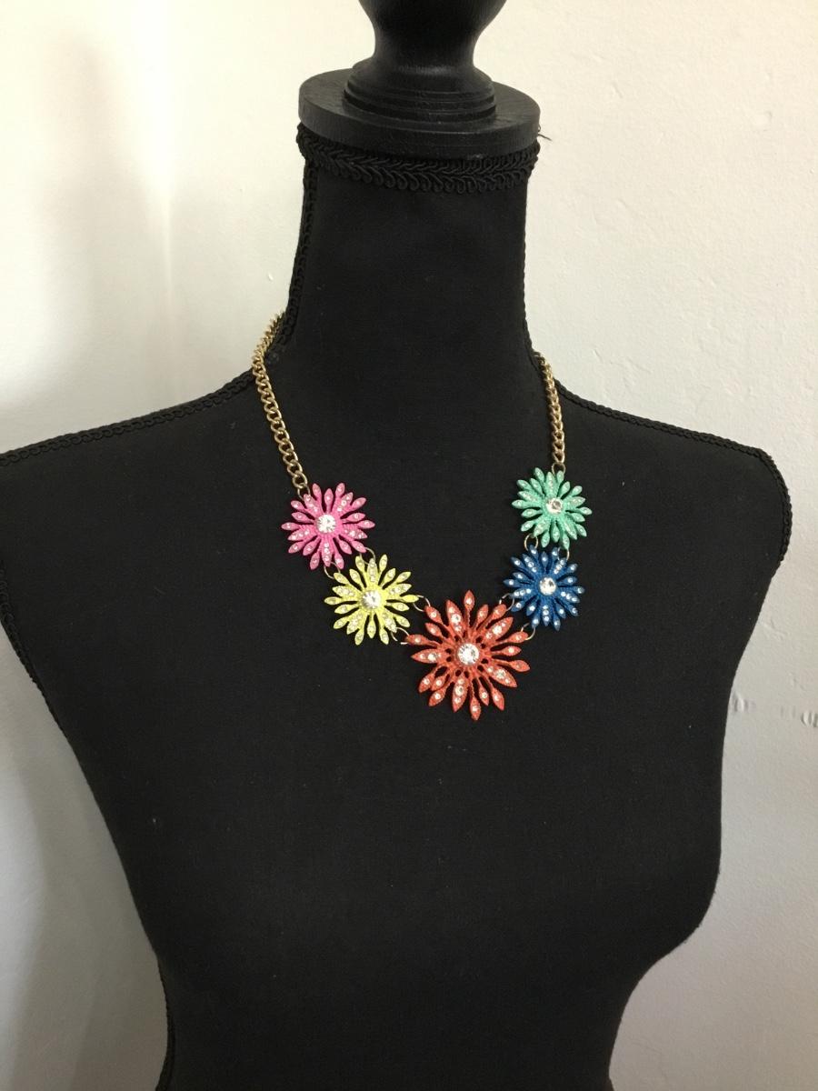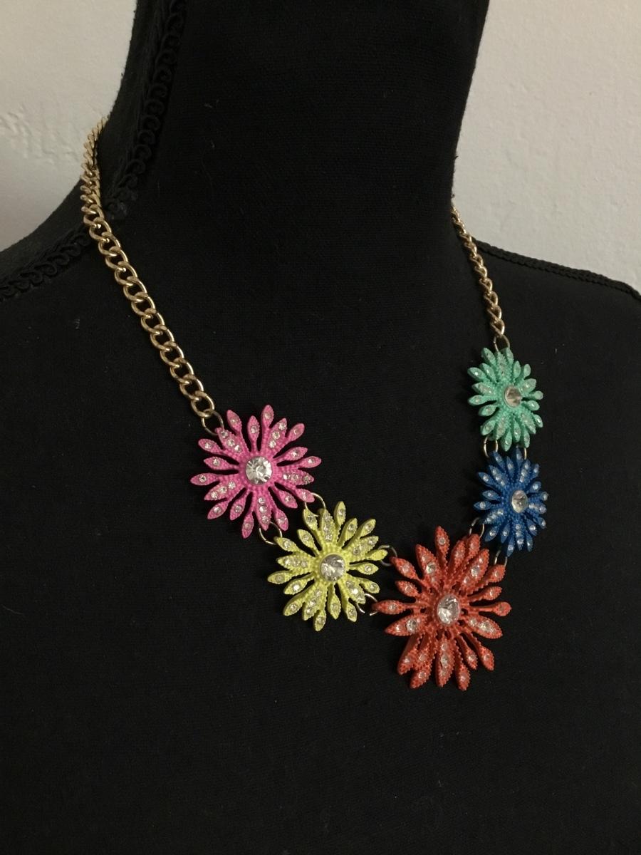 Vintage INC multi colored rhinestone flower, statement, necklace