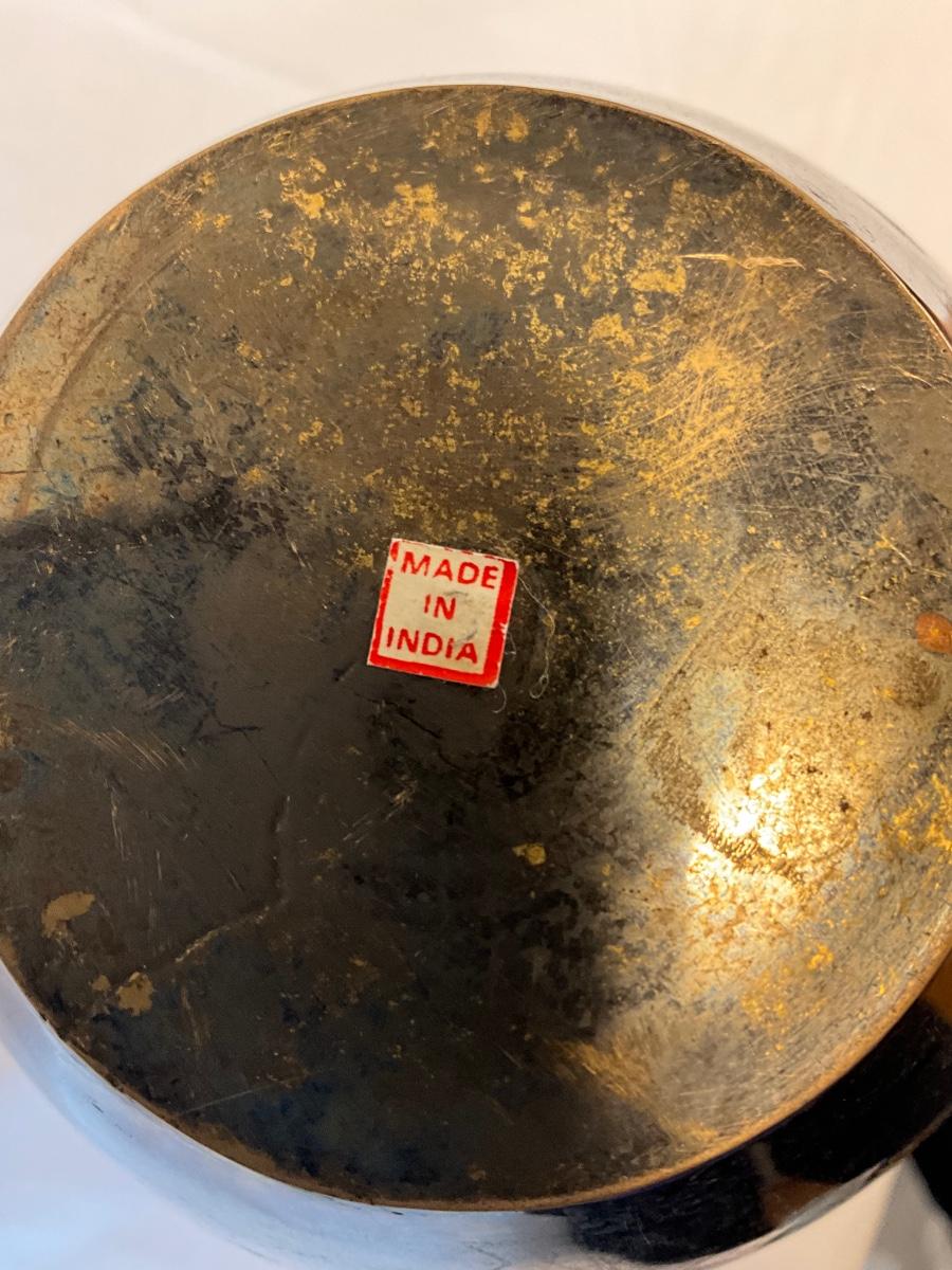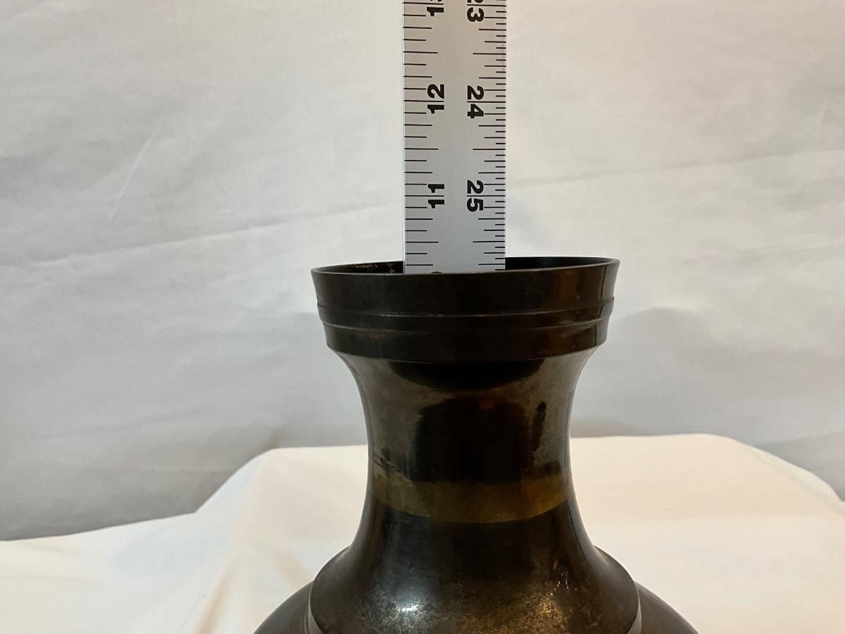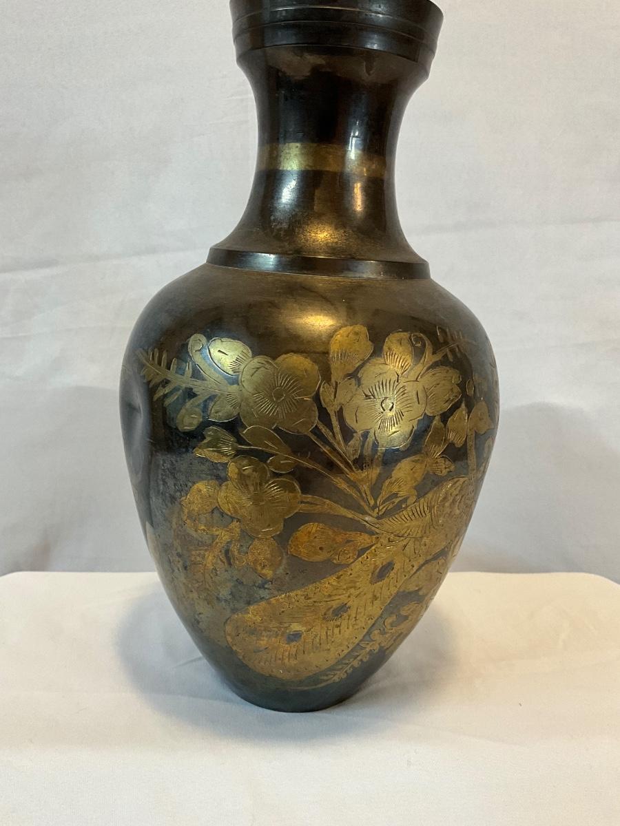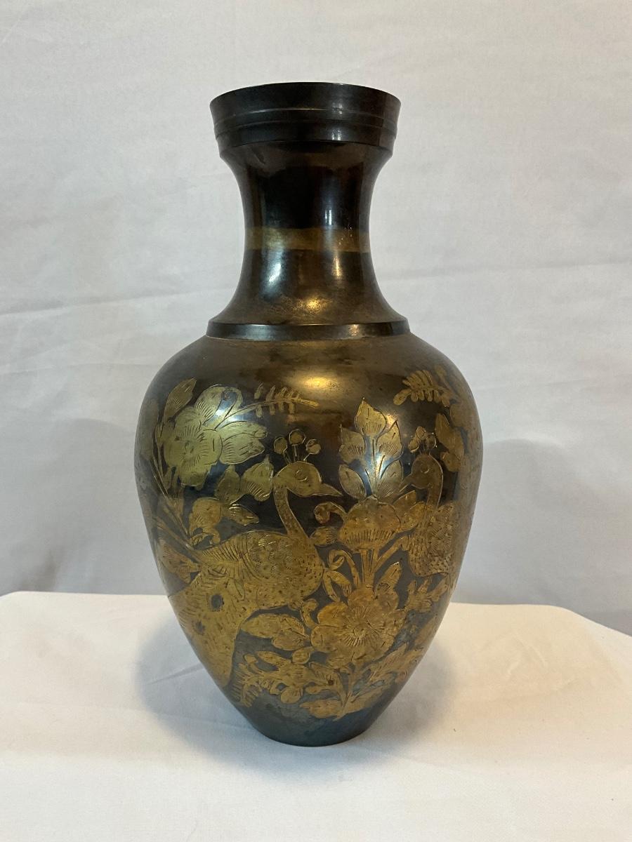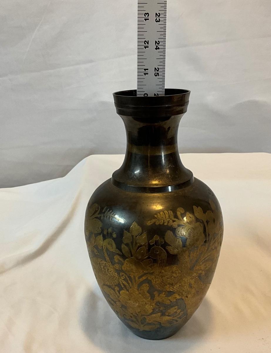 Itched, two tone, brass vase