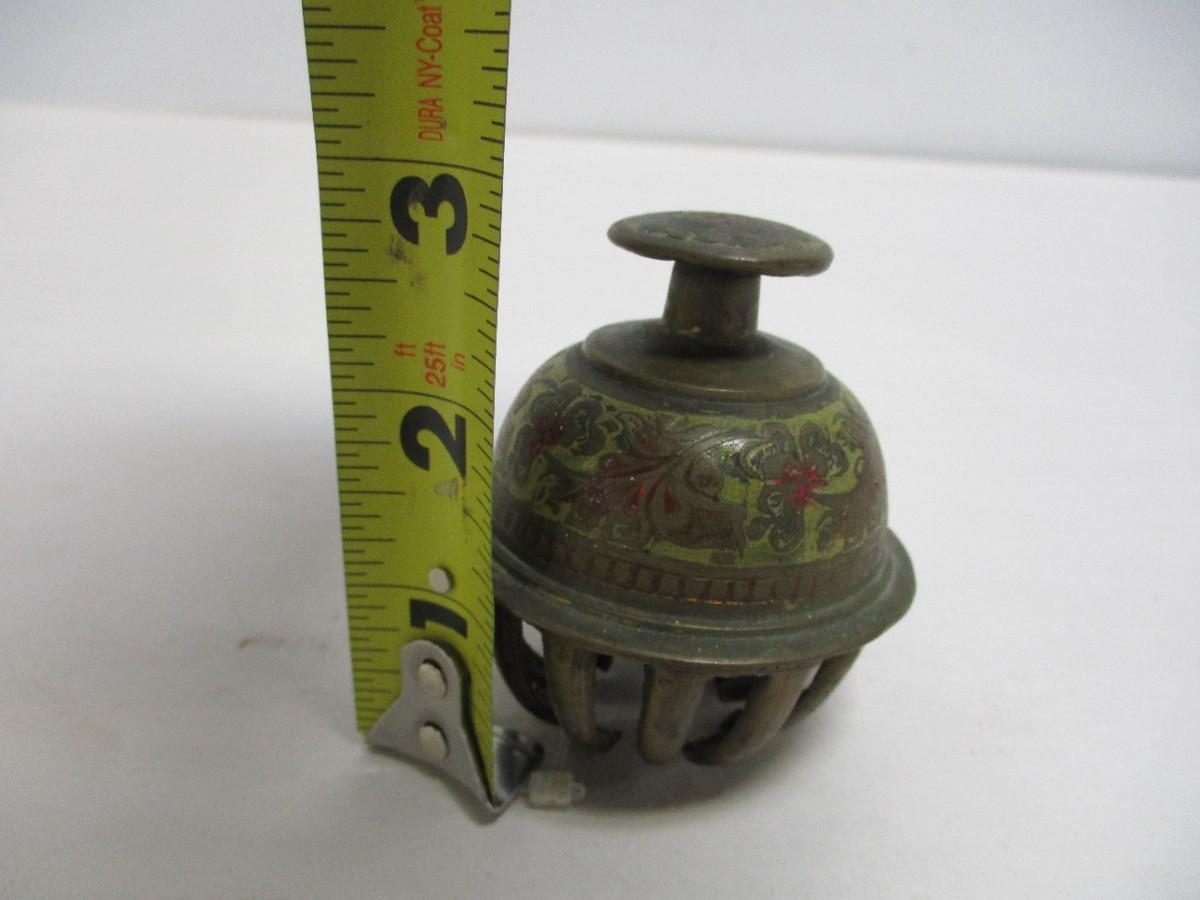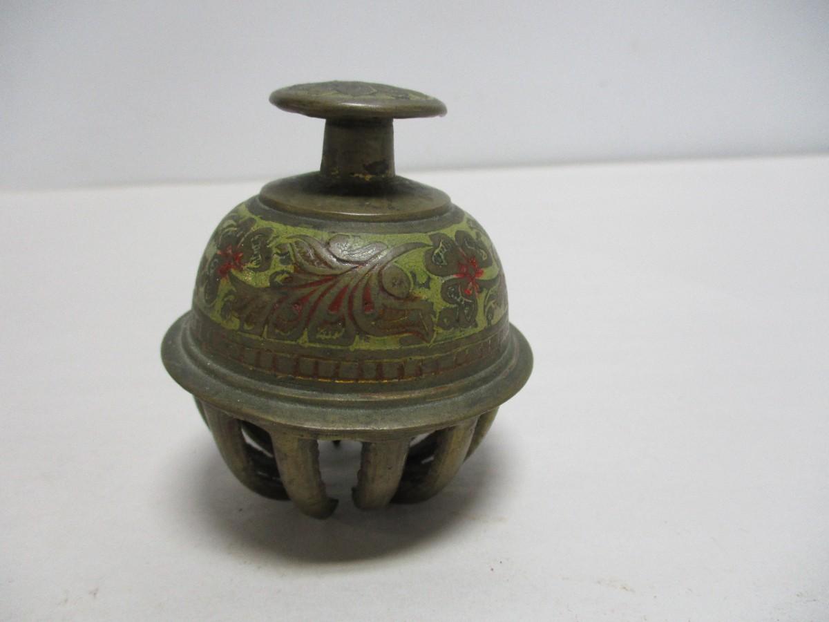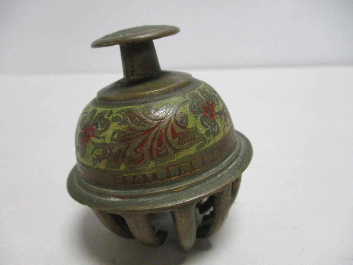 Vintage Indian Hand-Painted Brass/Enamel Elephant Claw Prayer Bell