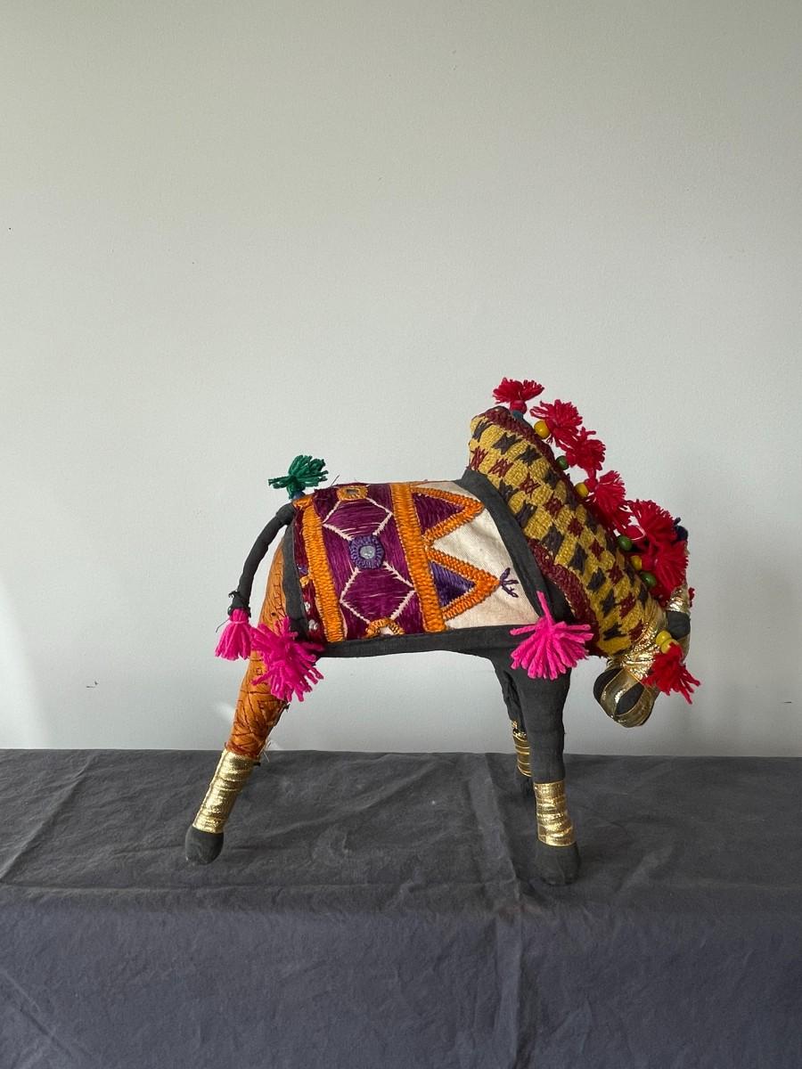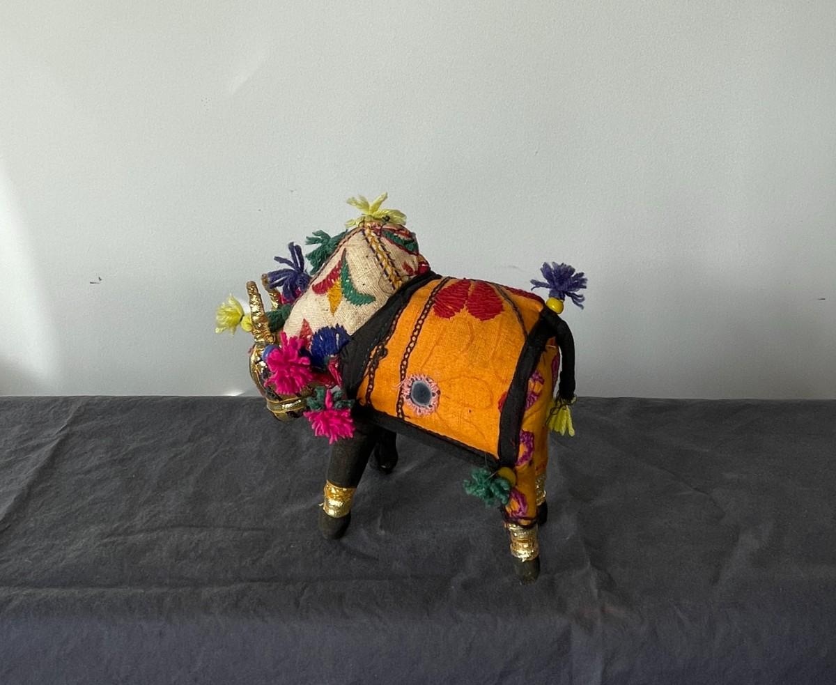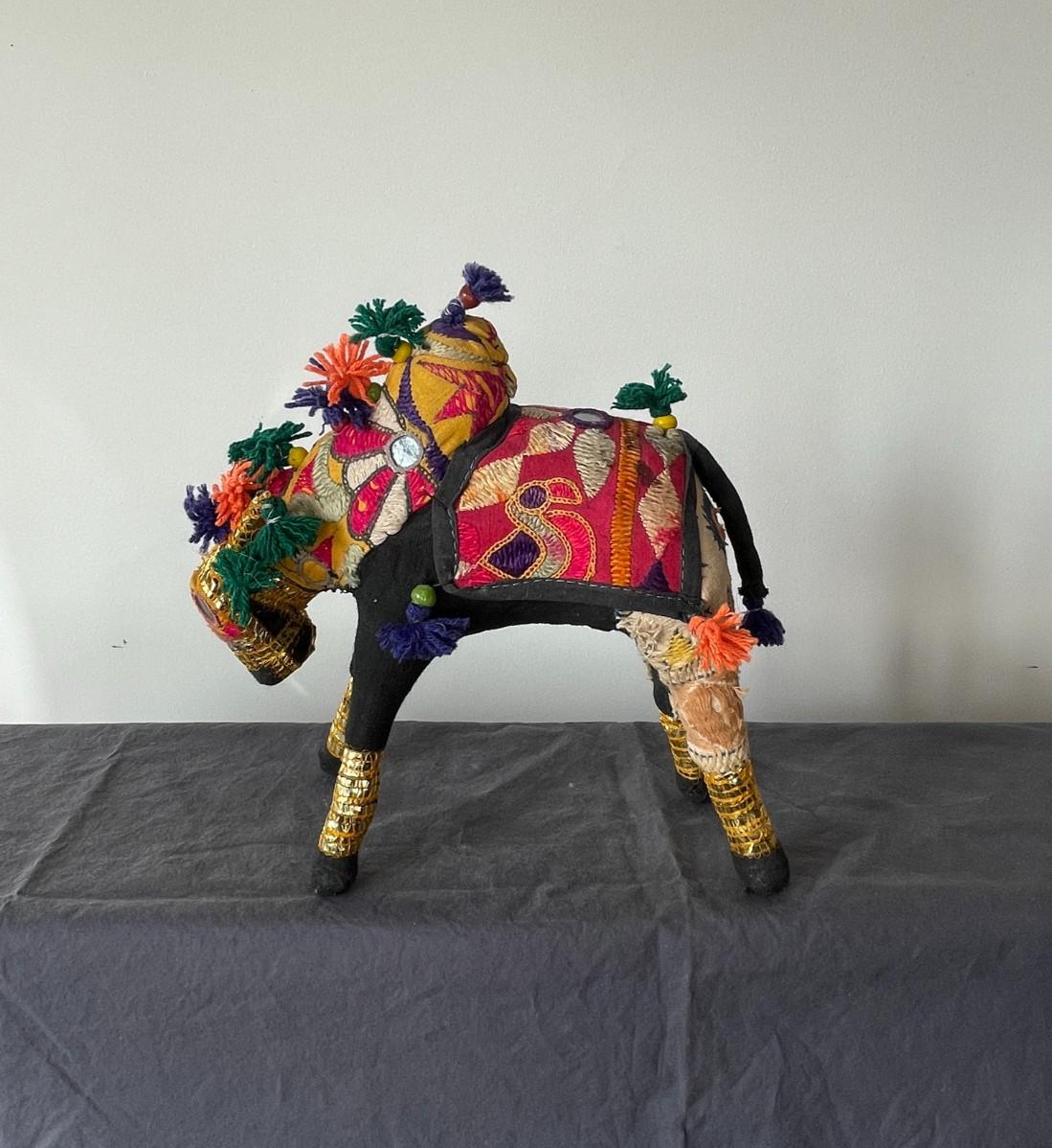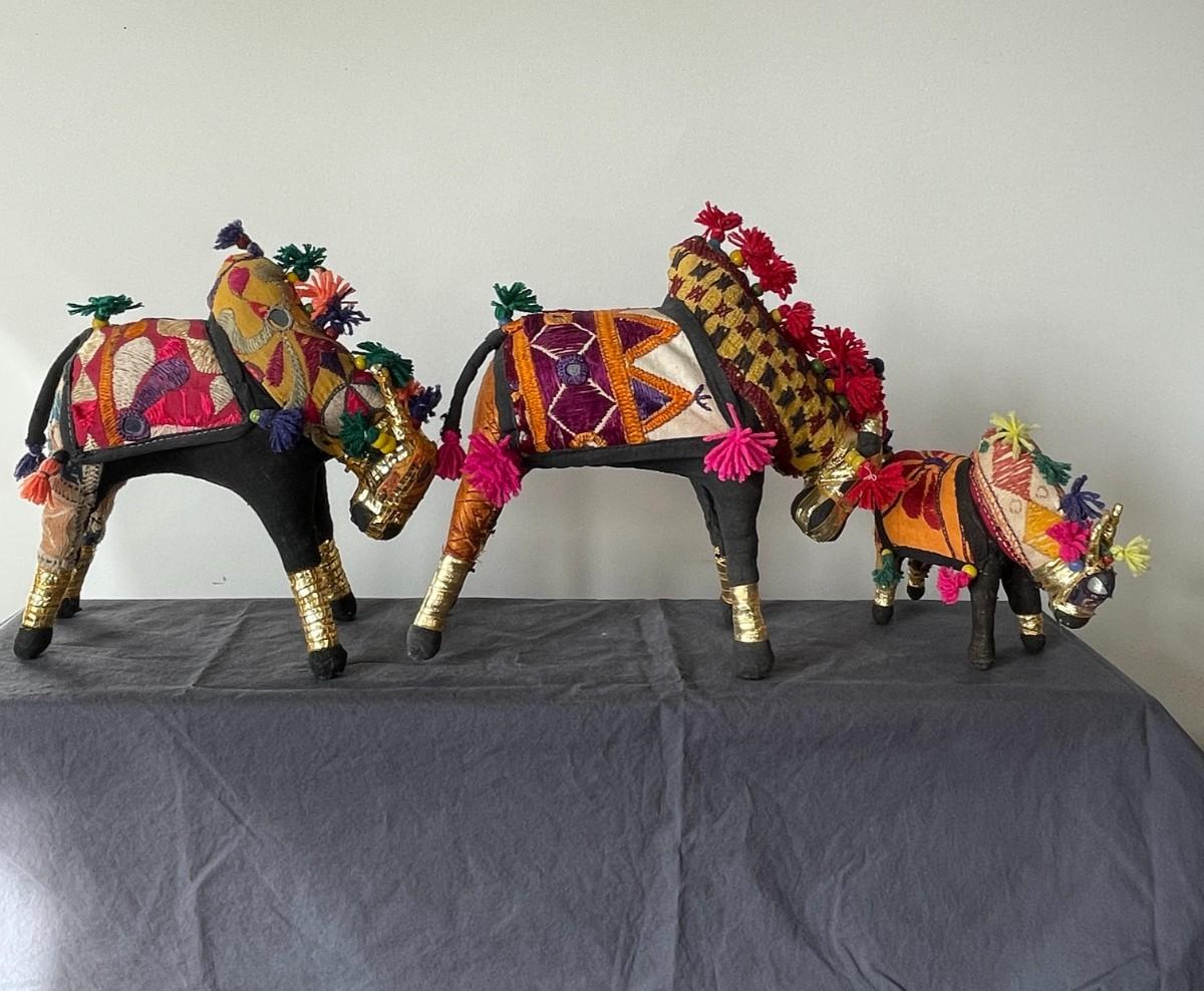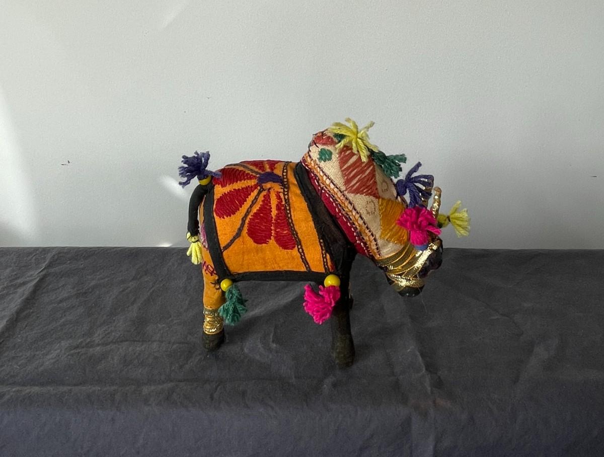 Vintage Indian Patchwork Embroidered Bull Sculptures