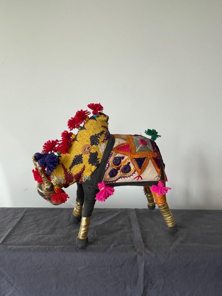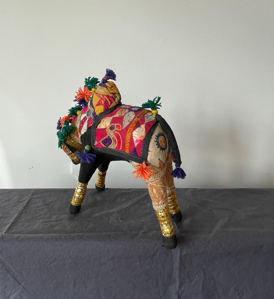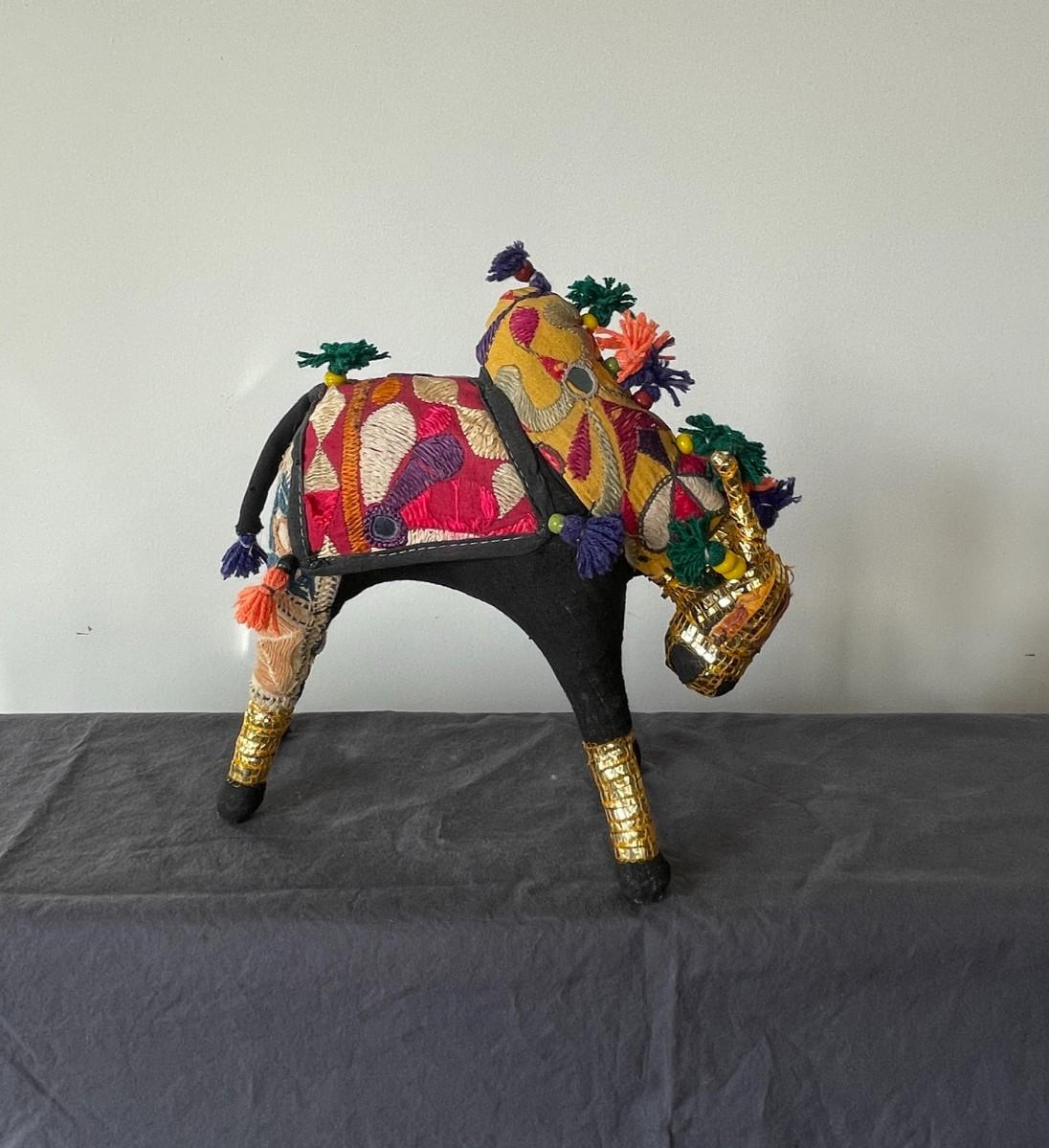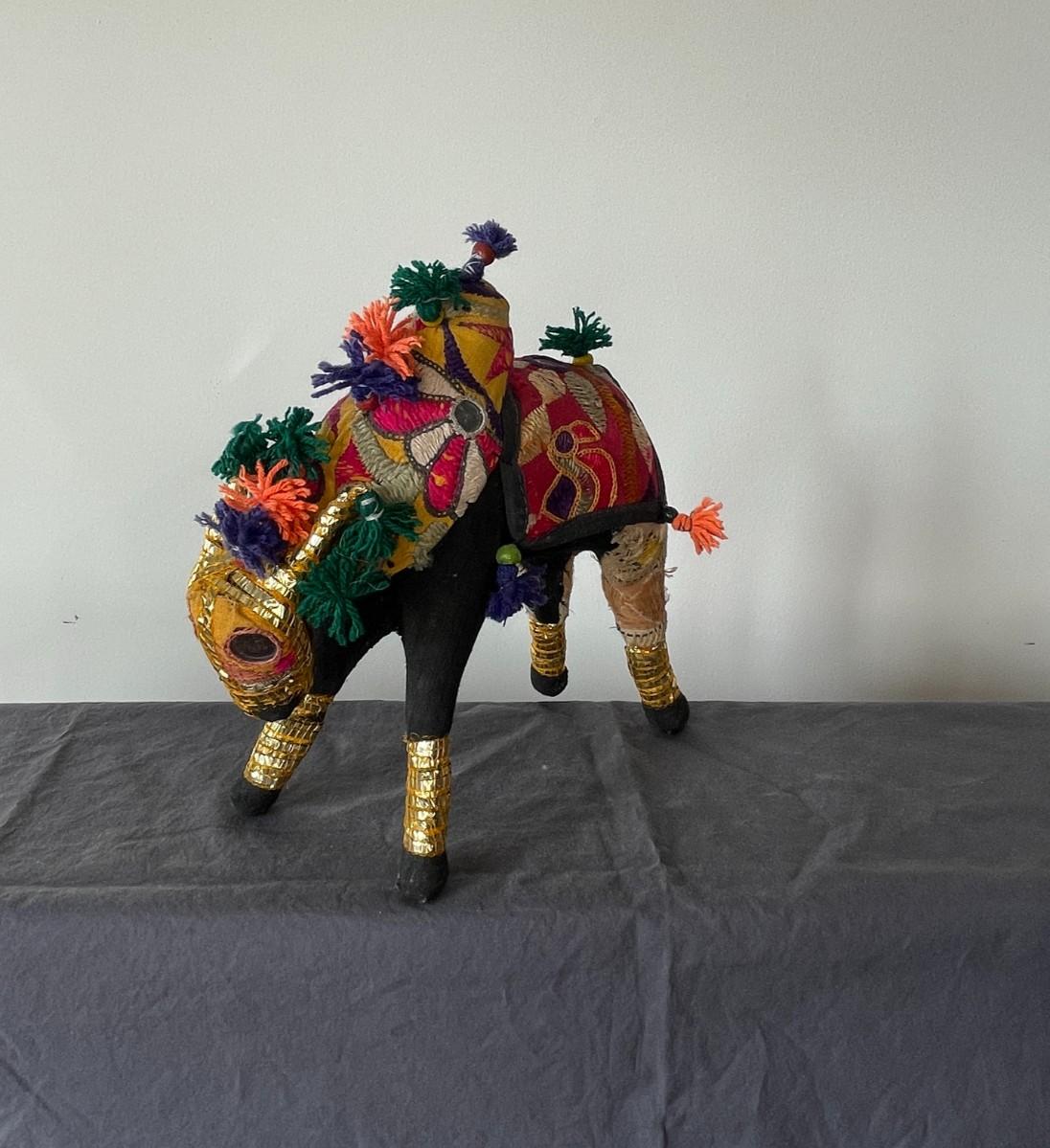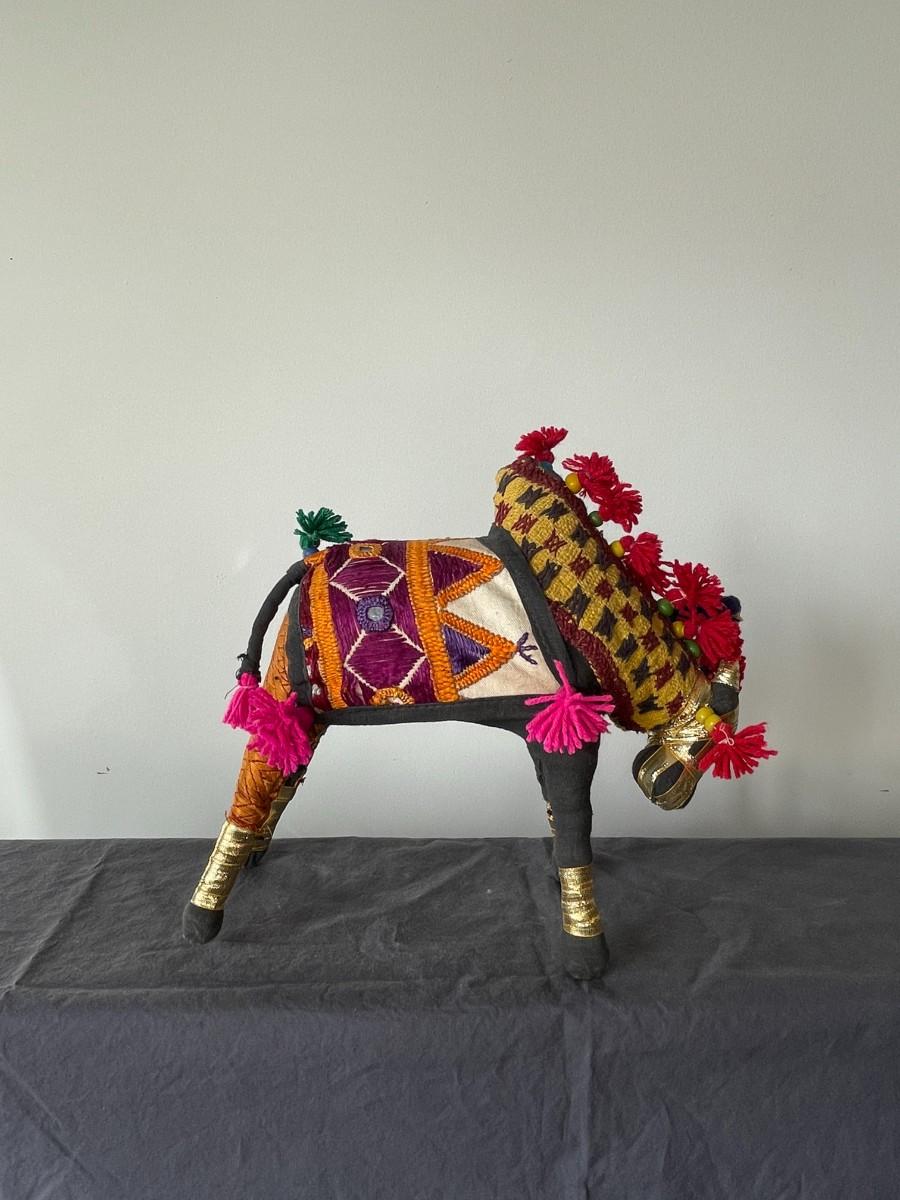 Vintage Indian Patchwork Embroidered Bull Sculptures