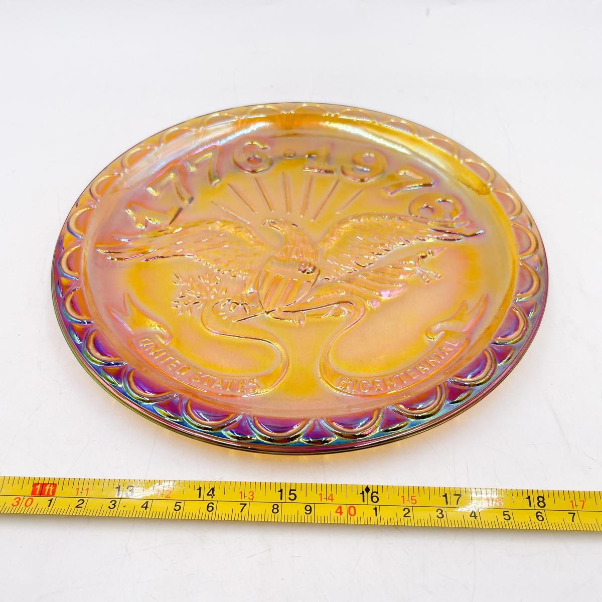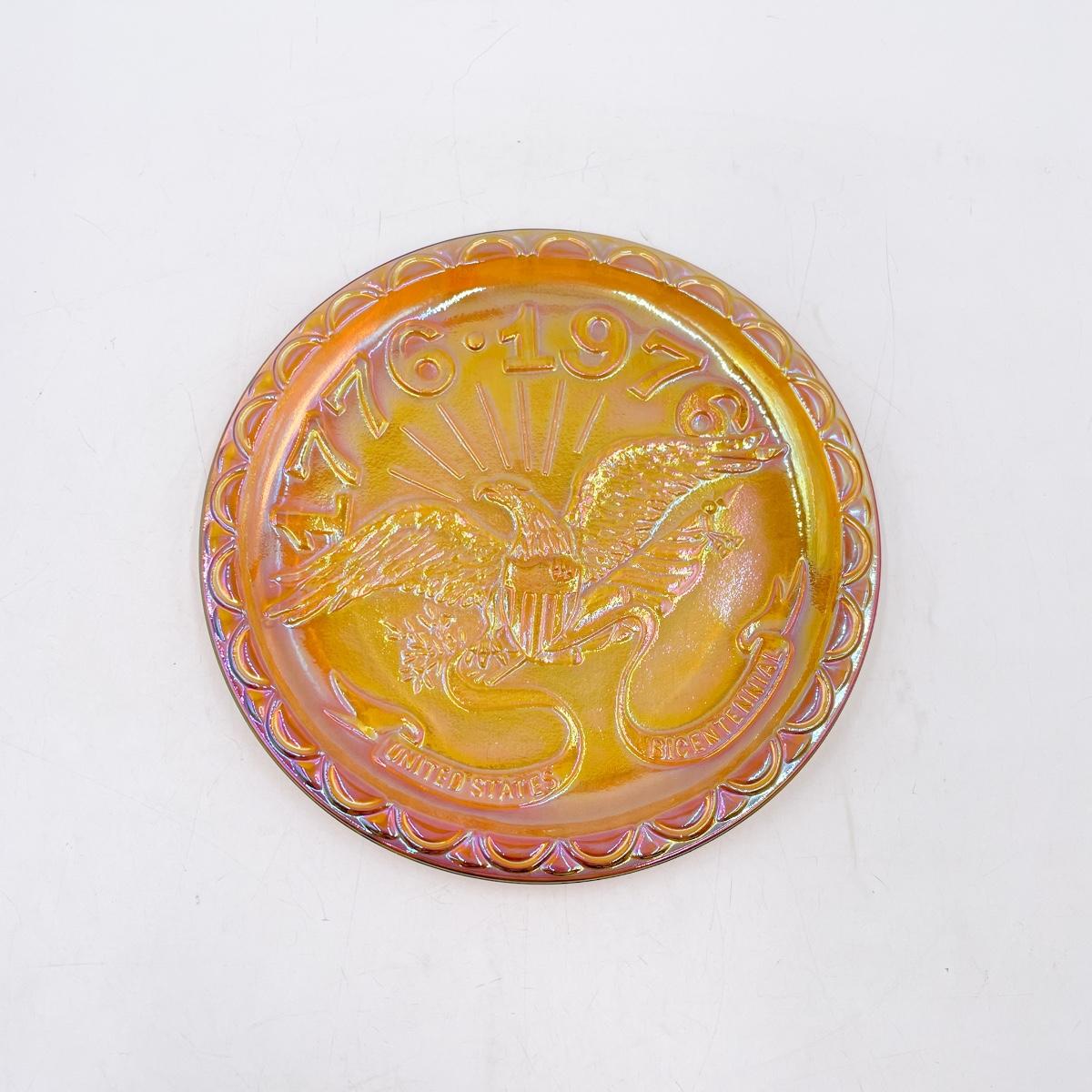 VINTAGE INDIANA AMBER CARNIVAL GLASS BICENTENNIAL 8” PLATE